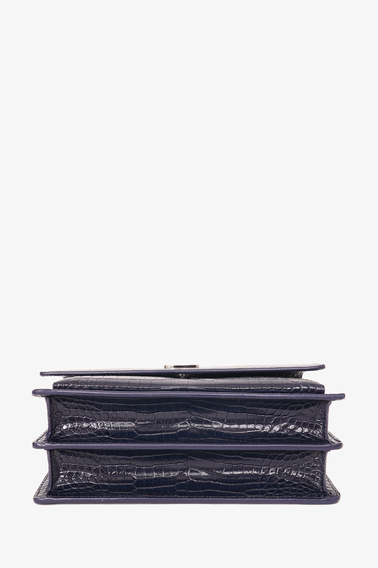 Saint Laurent Navy Croc Embossed Leather 'Sunset' Medium Crossbody Bag