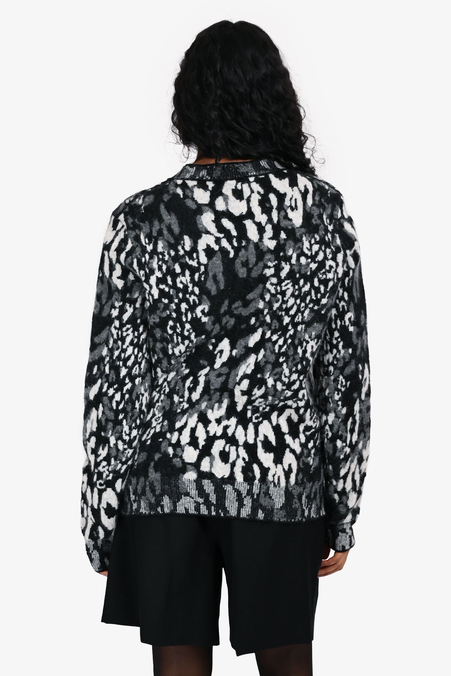 Saint Laurent Black/Grey Wool Blend Animal Print Crew Neck Sweater Size M