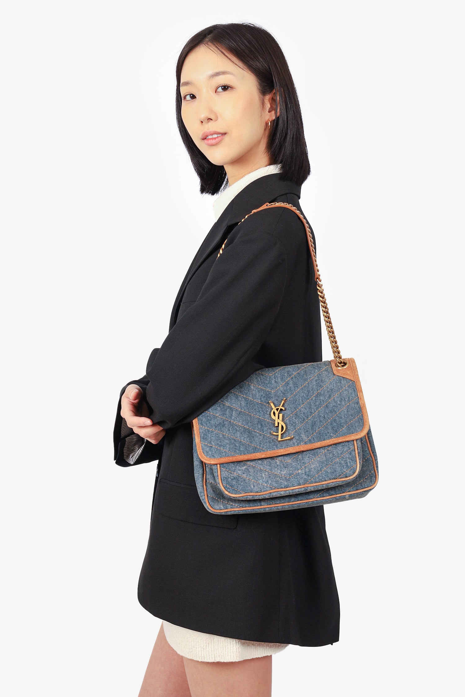 Saint Laurent Blue/Brown Denim/Suede Medium Monogram Matelasse Niki Shoulder Bag