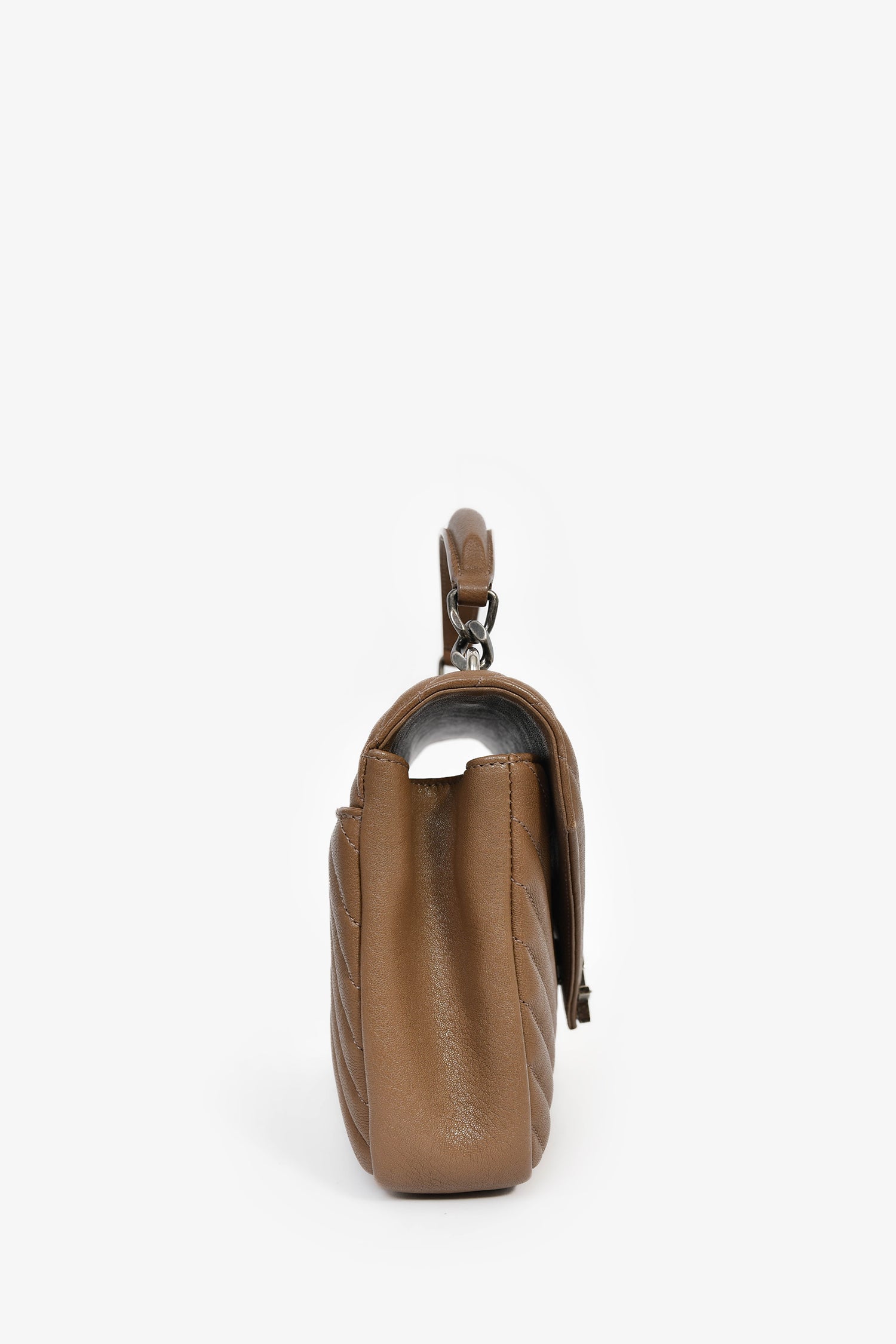 Saint Laurent Brown Chevron Leather Medium College Bag With Chain