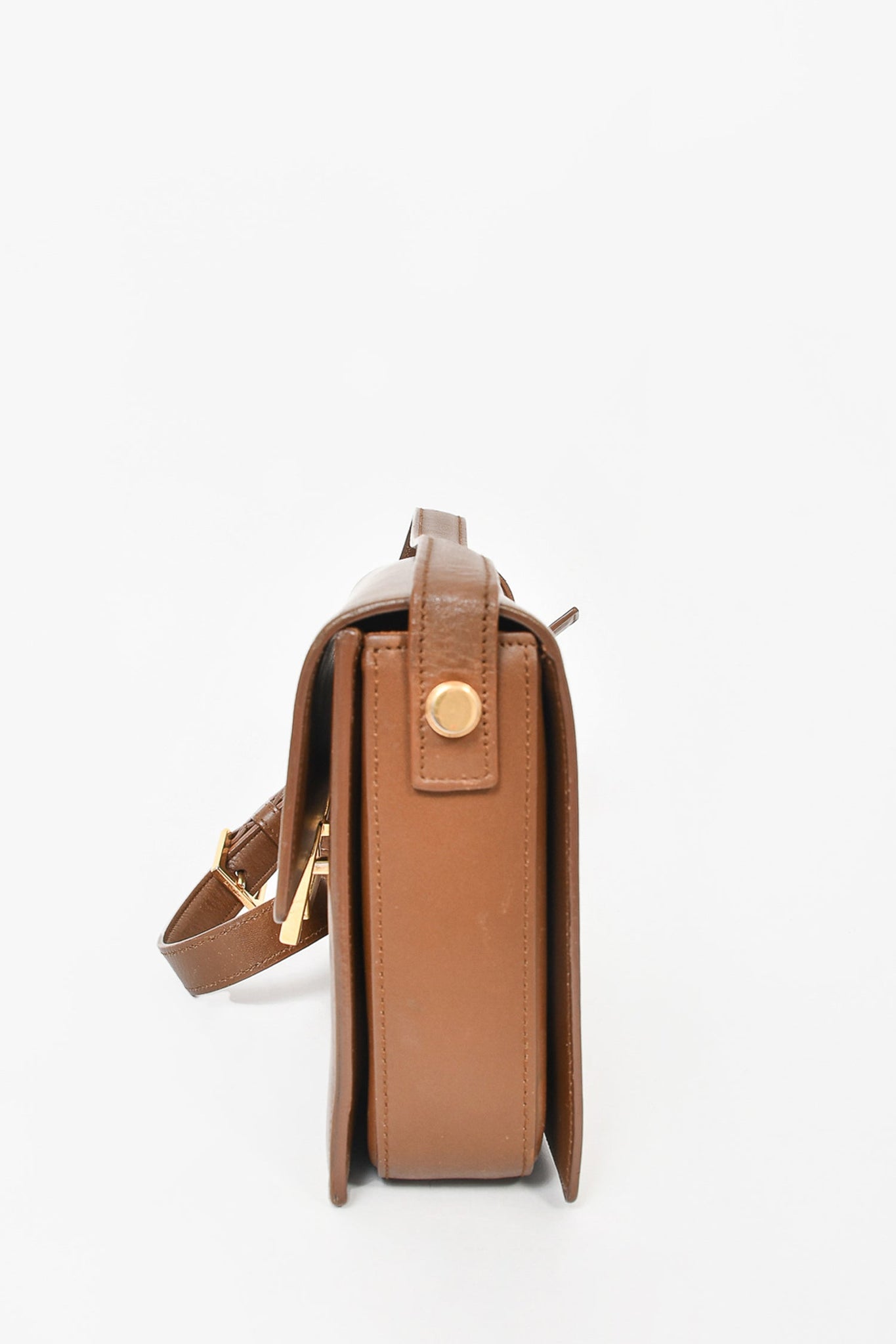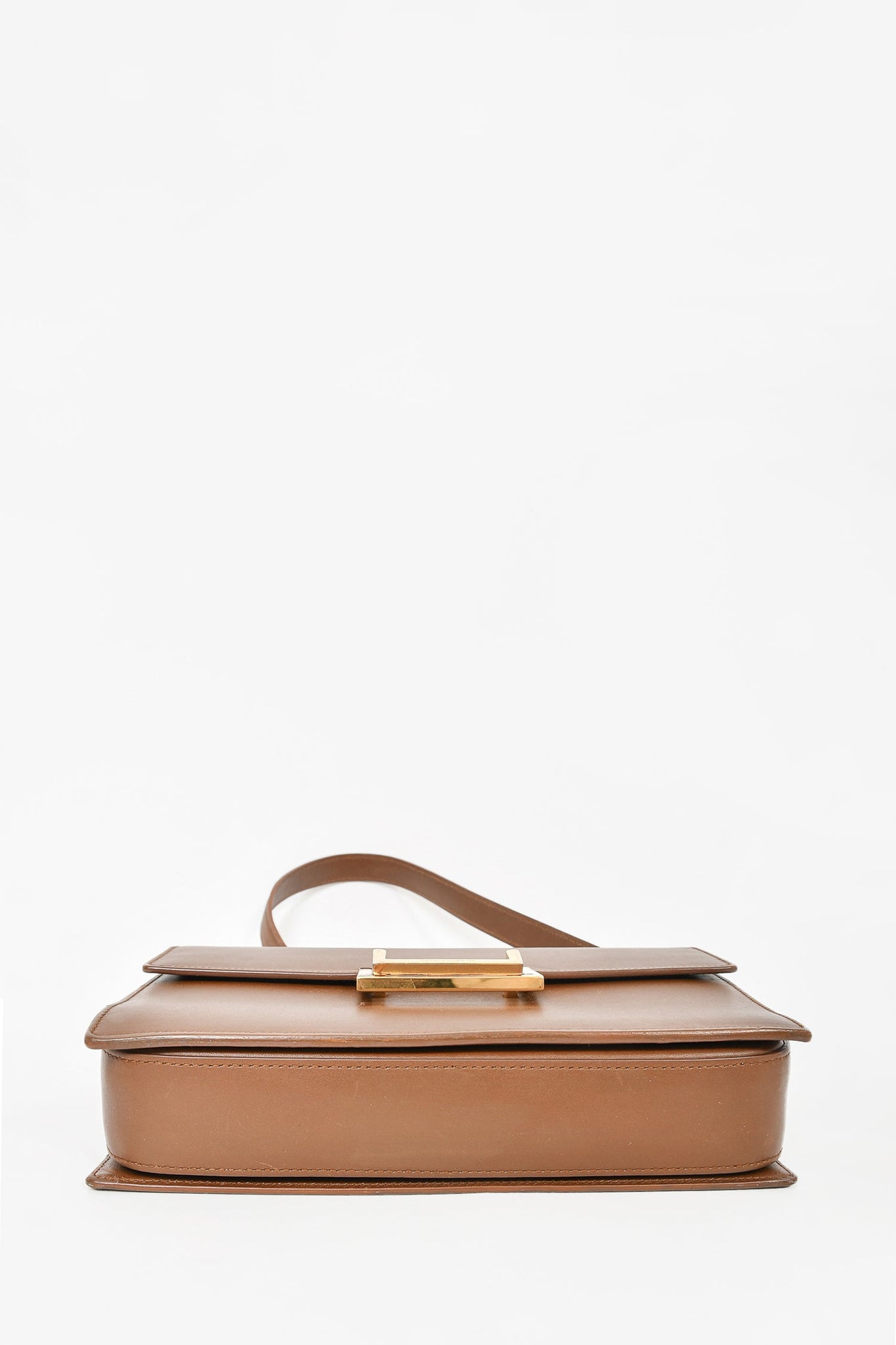 Refresh availabilitySaint Laurent Brown Smooth Leather Medium 'Lulu' Shoulder Bag. Top flap with hook closure. 2 interior slip pockets. Open interior compartment. Matching mirror included. Adjustable leather strap. Gold tone hardware. Tonal stitching.