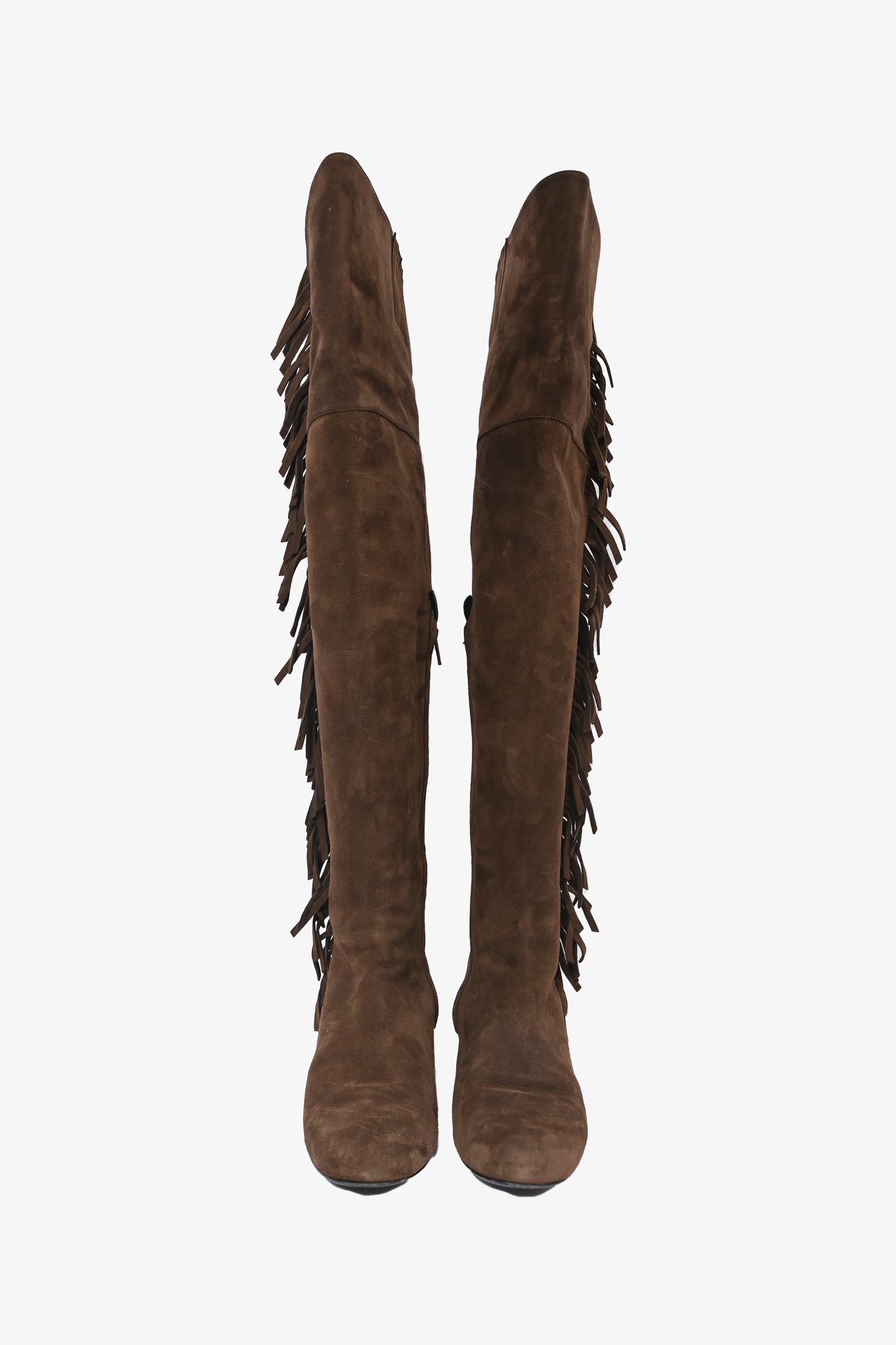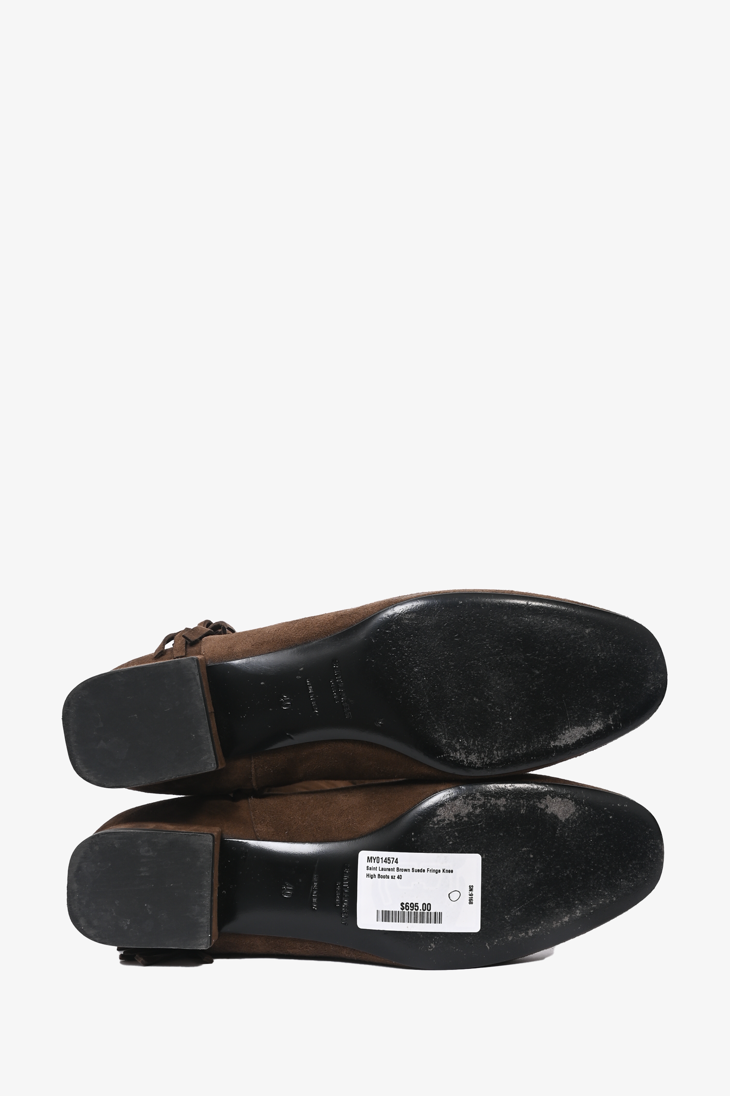 Saint Laurent Brown Suede Fringe Knee High Boots Size 40