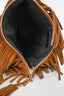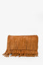 Saint Laurent Brown Suede Fringe Zip Pouch Clutch