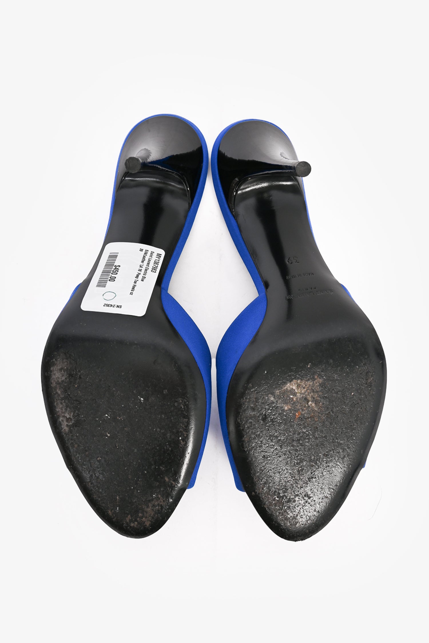 Saint Laurent Electric Blue Silk/Leather 'LA 16' Peep Toe Heels Size 39
