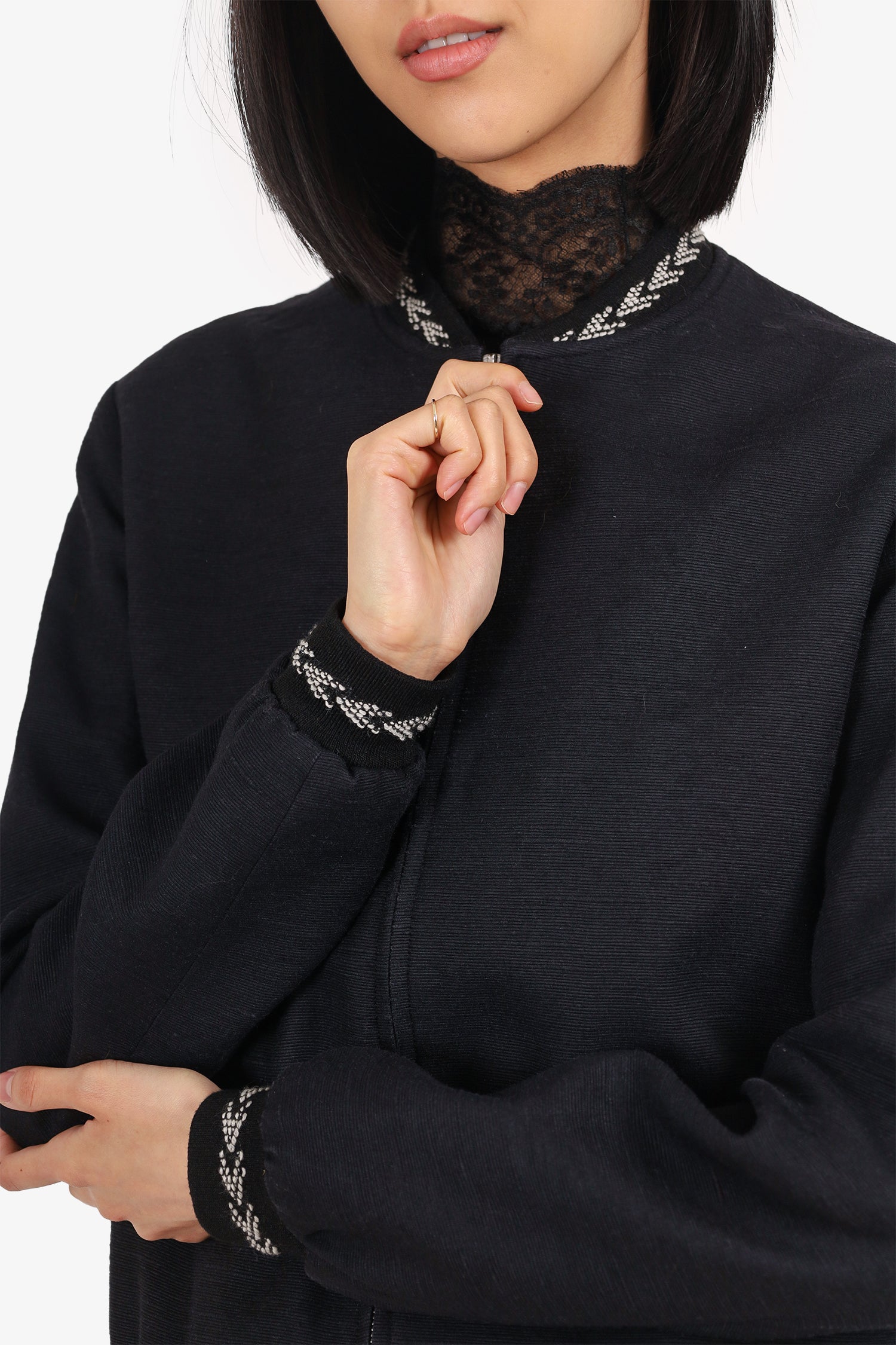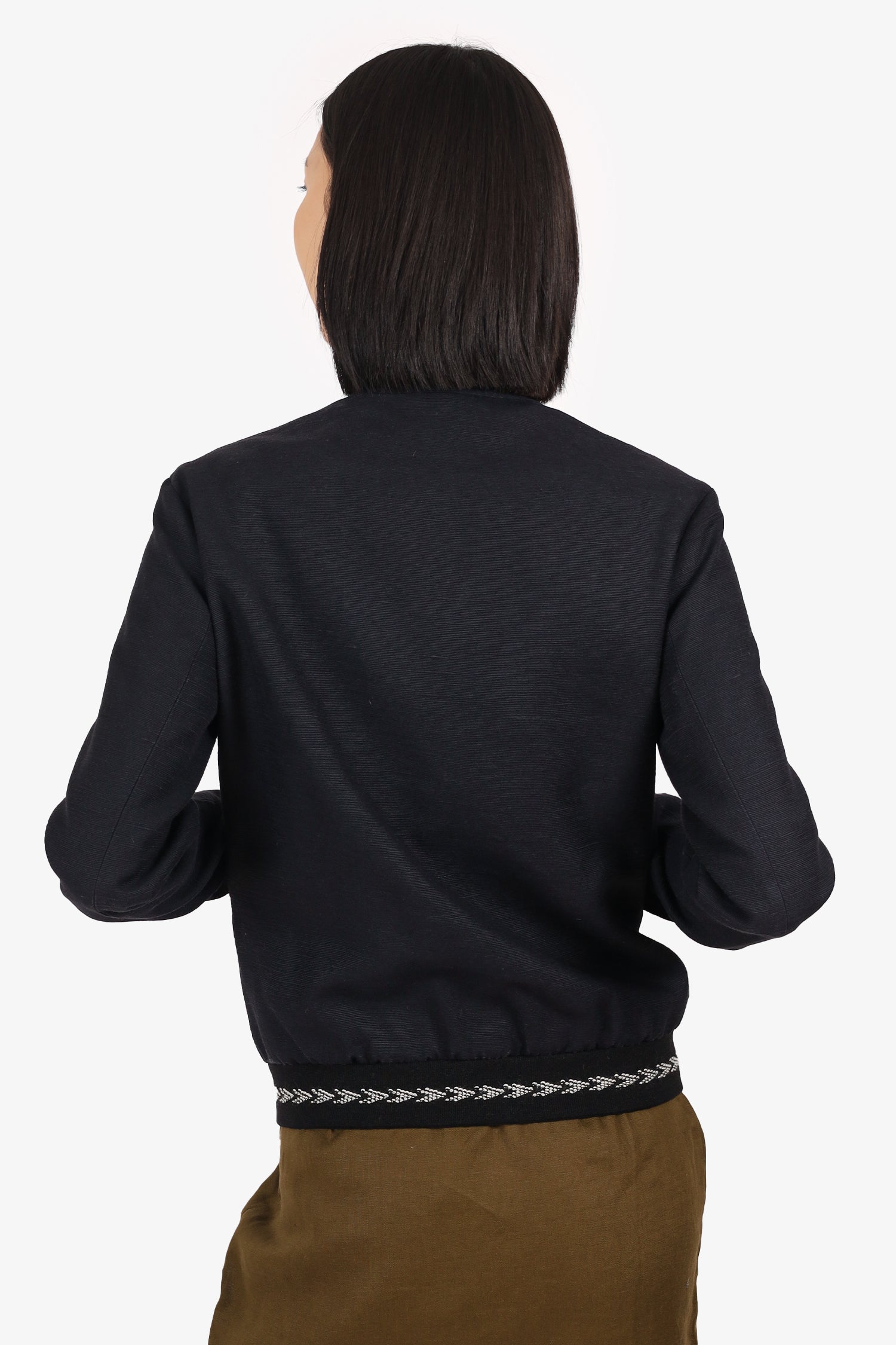 Refresh availabilitySaint Laurent Navy Embroidered Bomber Jacket. Pull-on. Round neckline. Front zip closure. Elasticated sleeve cuffs, neckline and bottom hem. 2 front exterior slip pockets. Lined interior. 2 interior slip pockets. Silver-tone hardware. Tonal stitching.