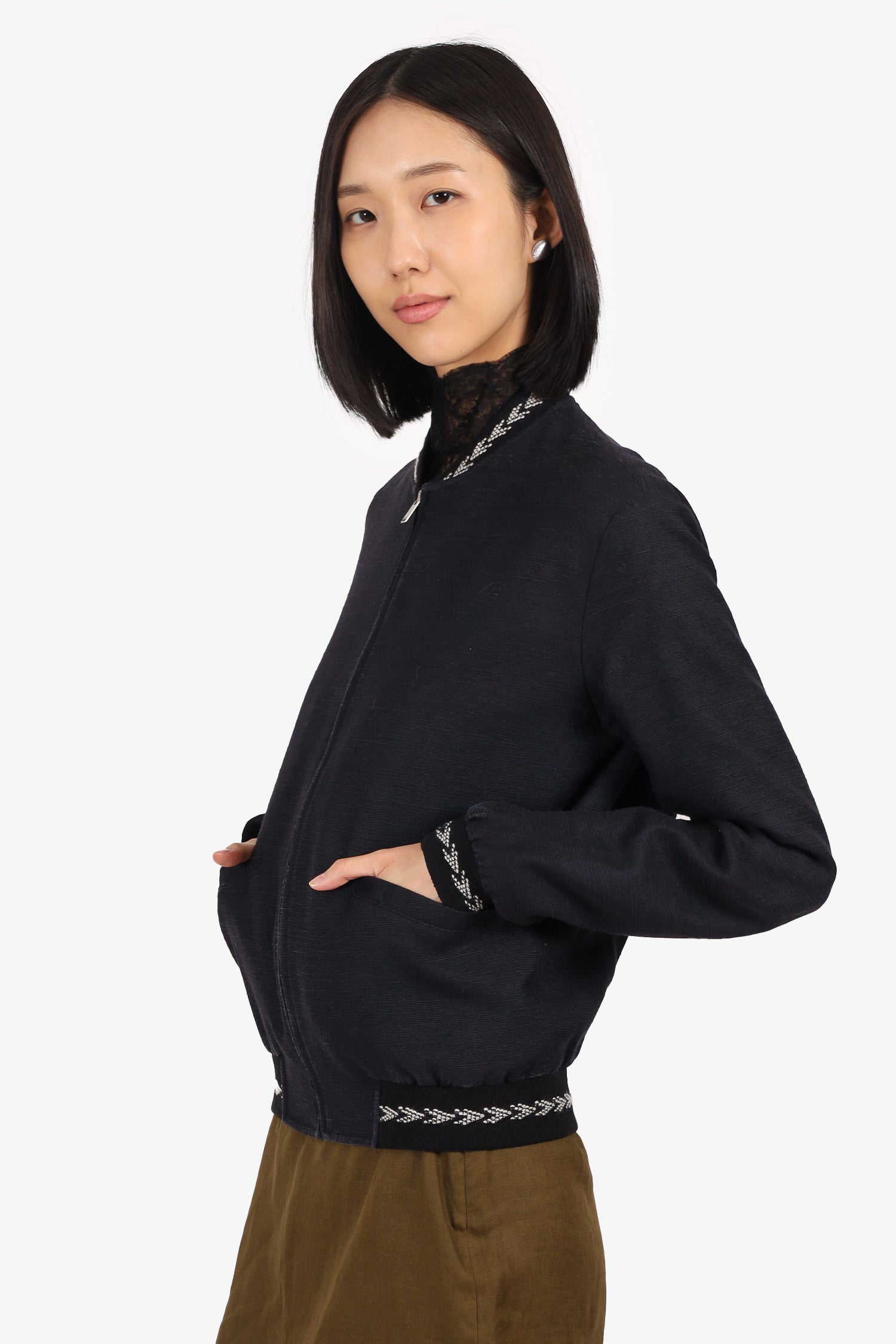 Saint Laurent Navy Embroidered Bomber Jacket Size 44 Mens