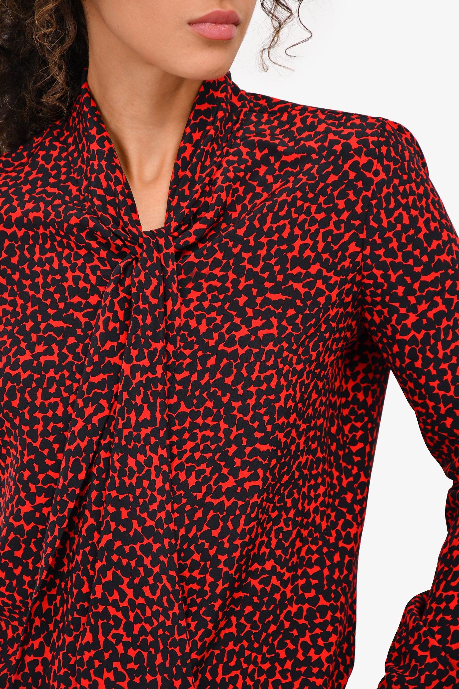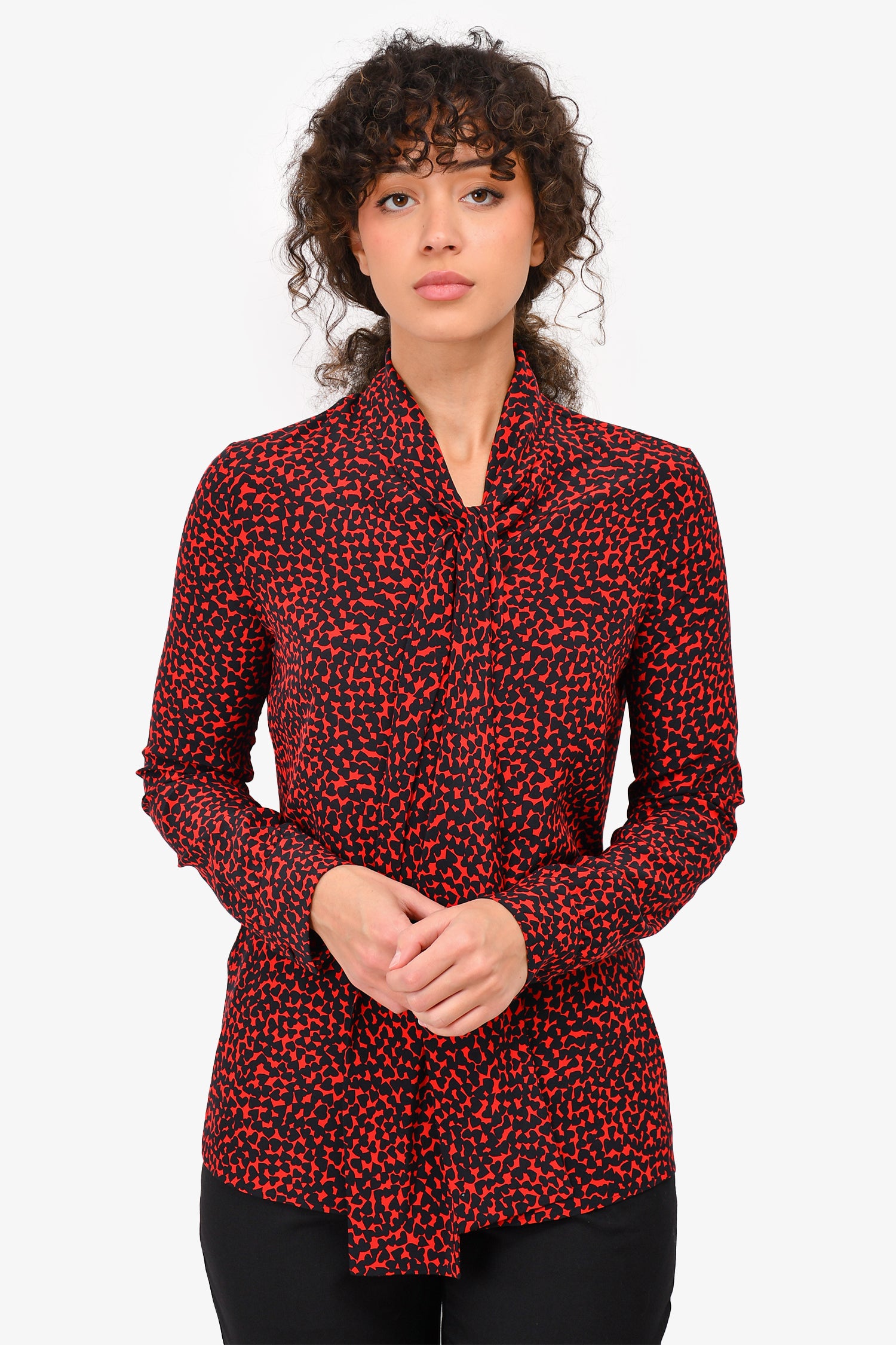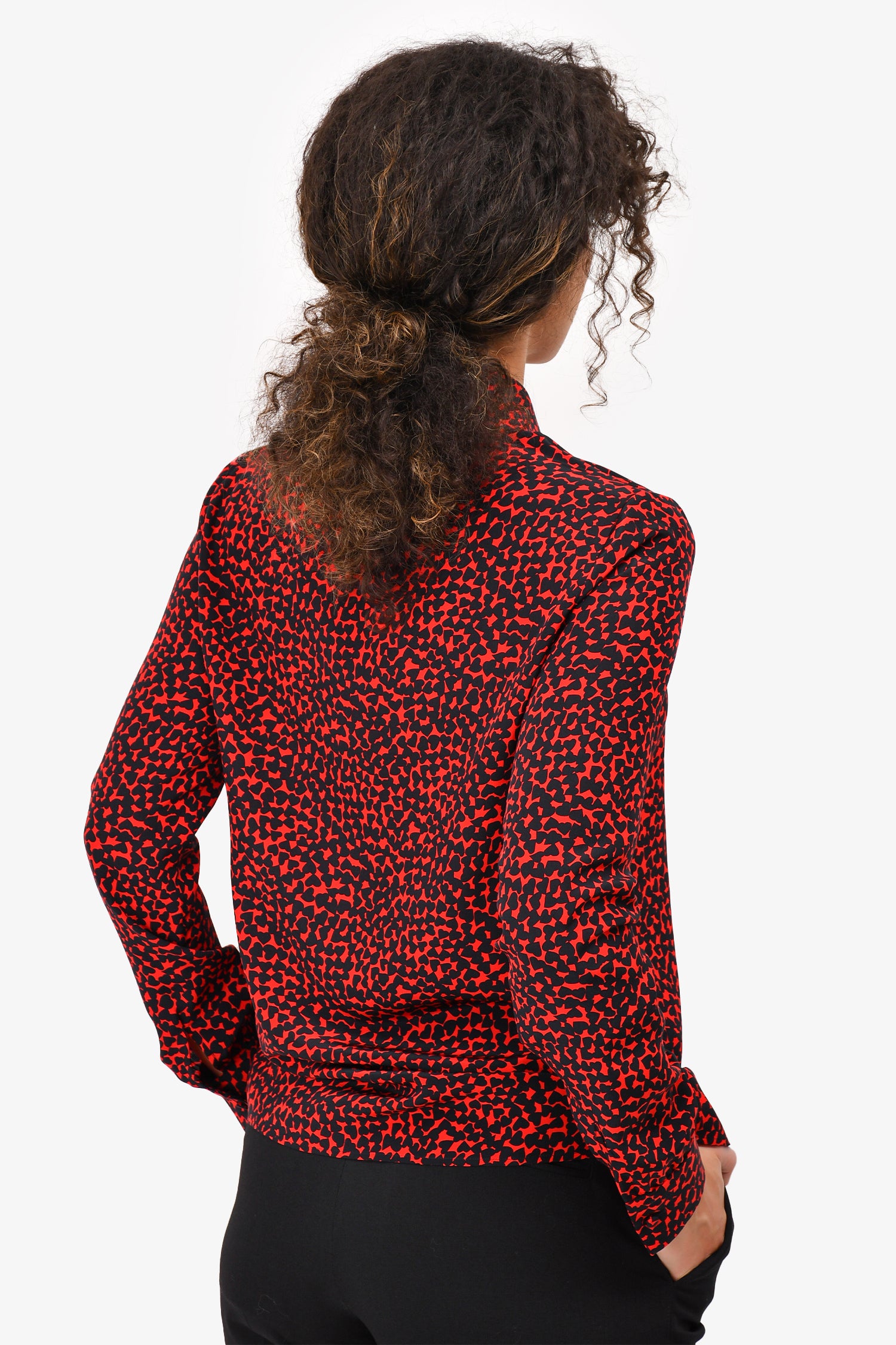 Refresh availabilitySaint Laurent 2014 Red Heart Patterned Silk Tie Detail Blouse. Front button-up closure. Tie at the collar. Tonal stitching.