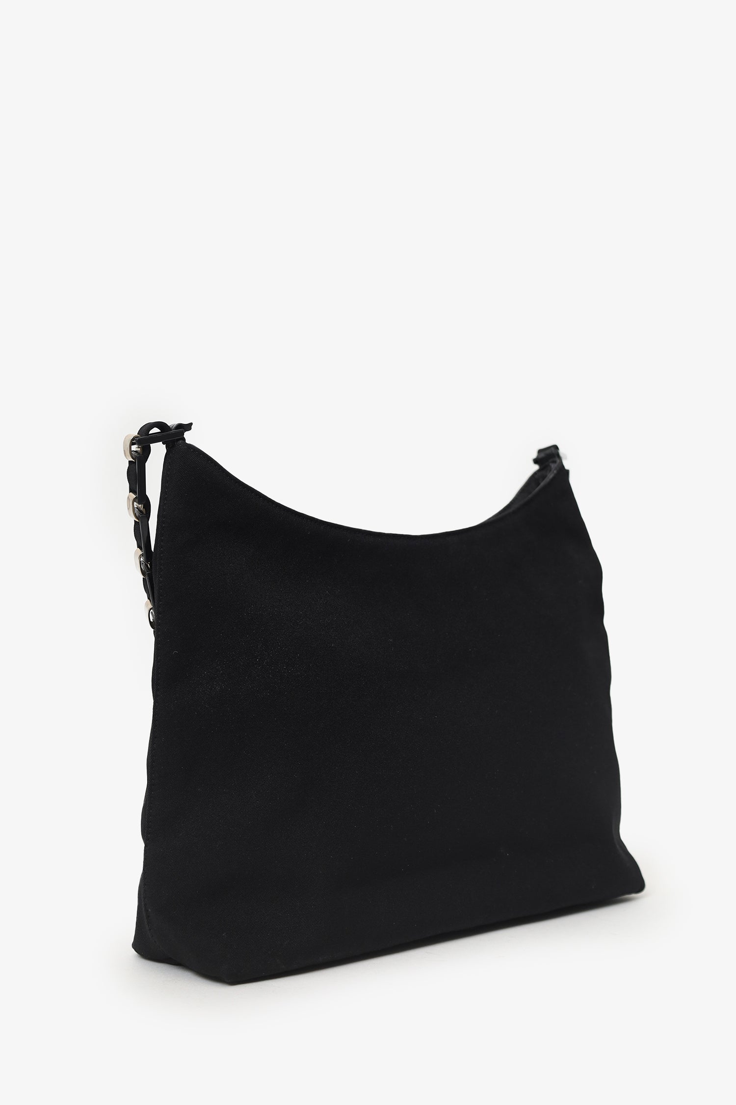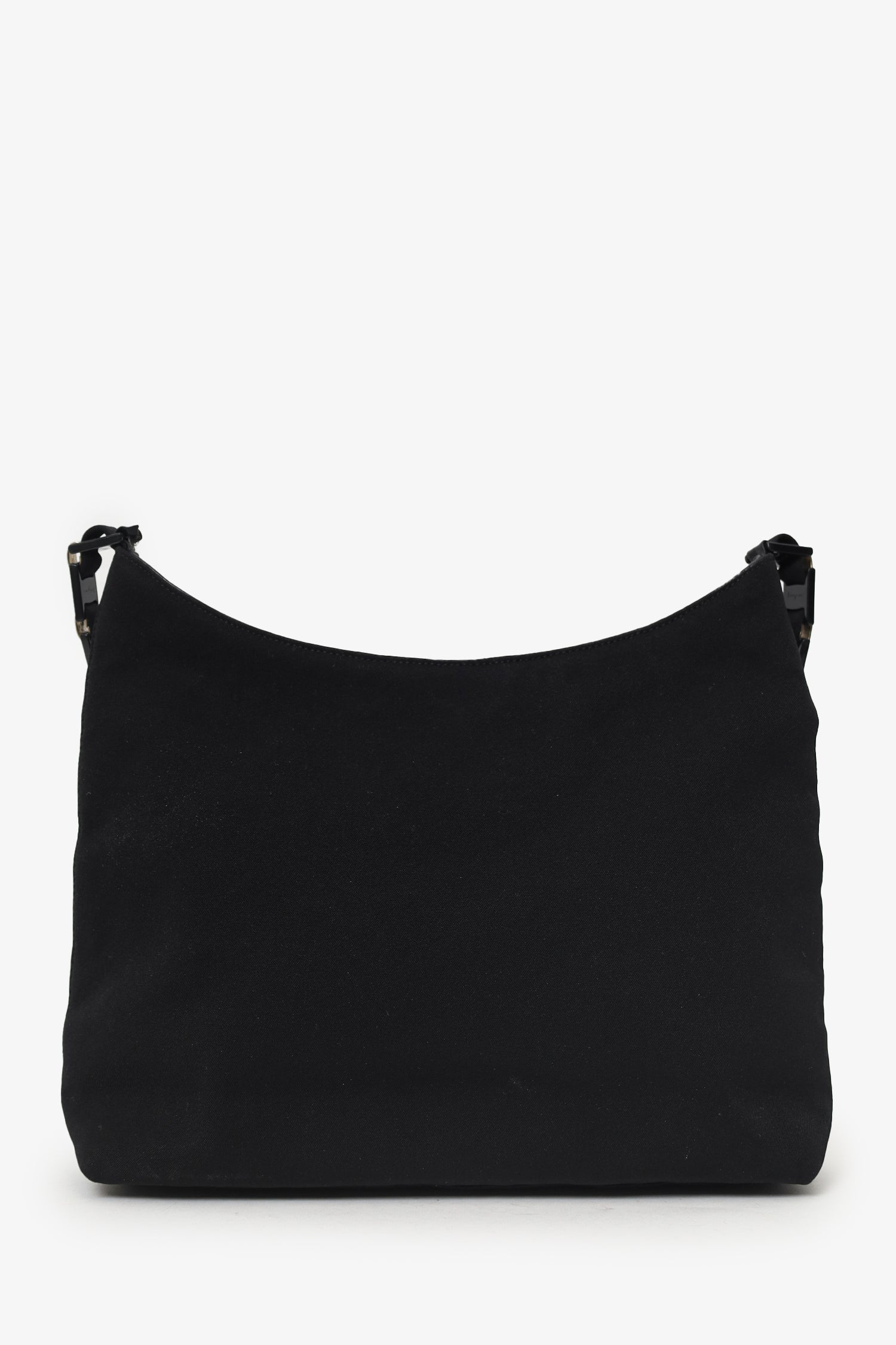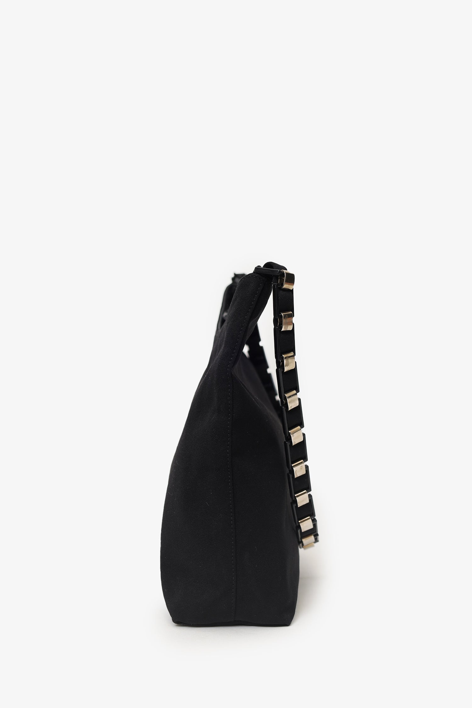 Refresh availabilitySalvatore Ferragamo Black Canvas Chain Link Shoulder Bag. Top zip closure. Top shoulder strap. Lined interior. Single interior zip pocket. Silver-tone hardware. Tonal stitching.