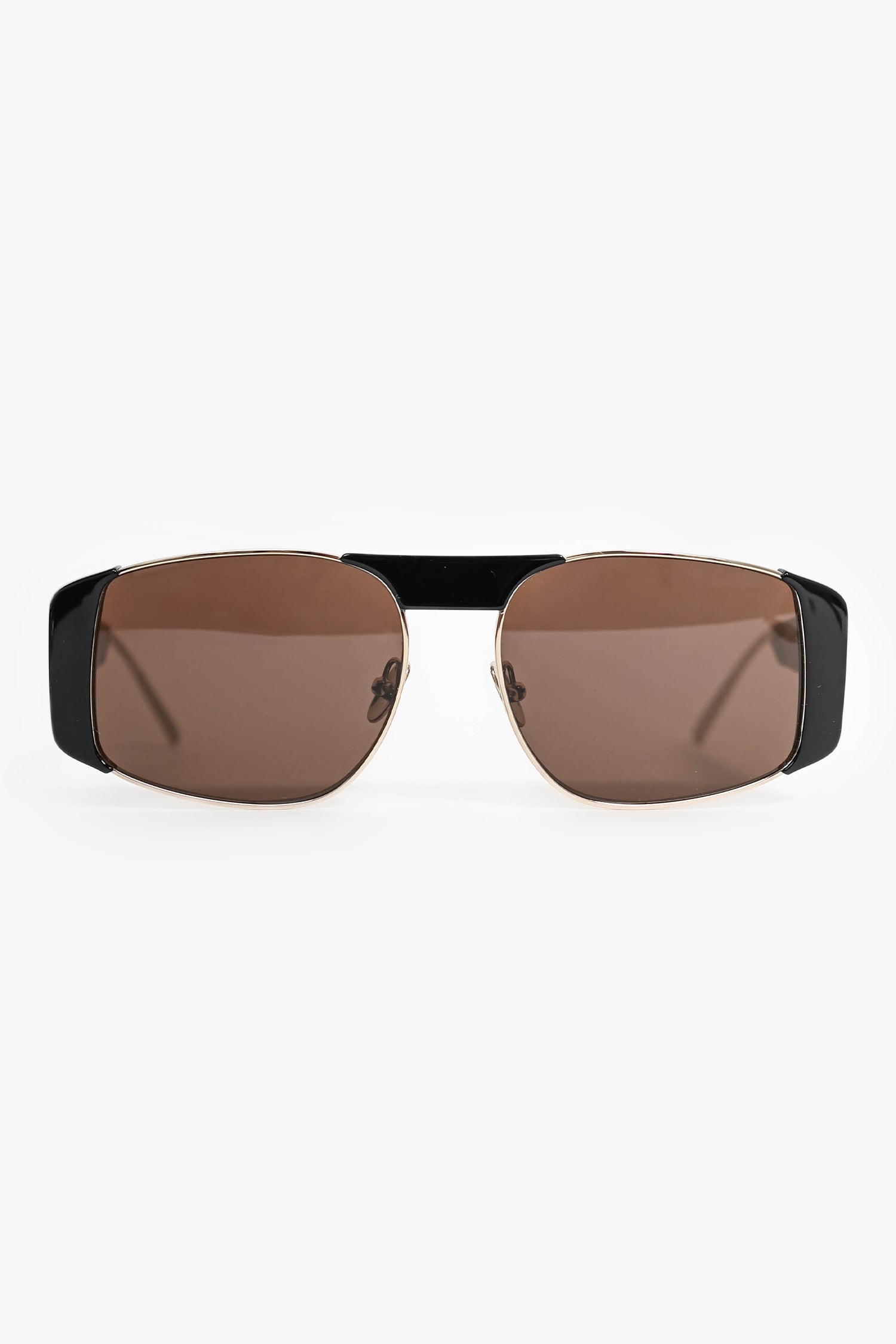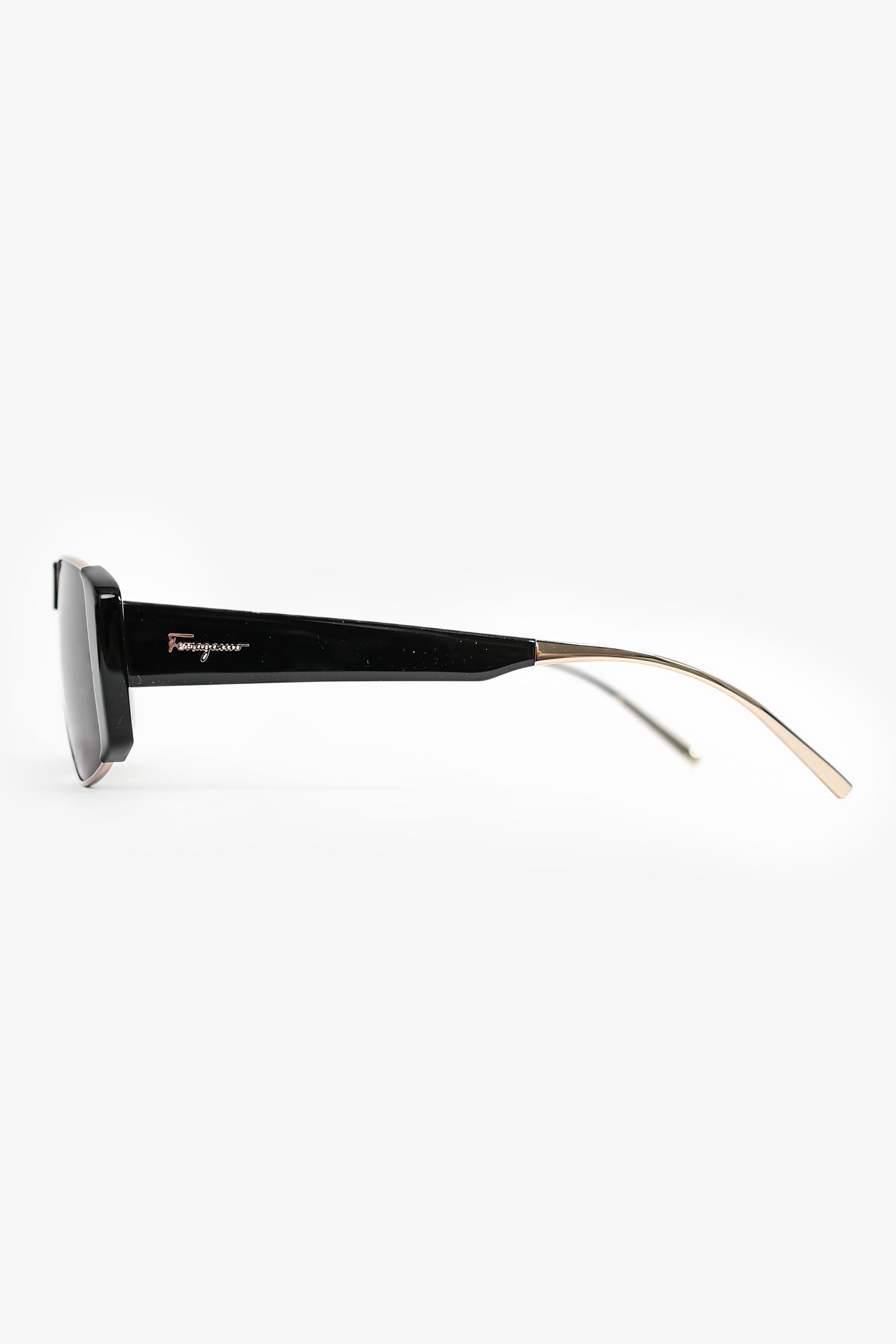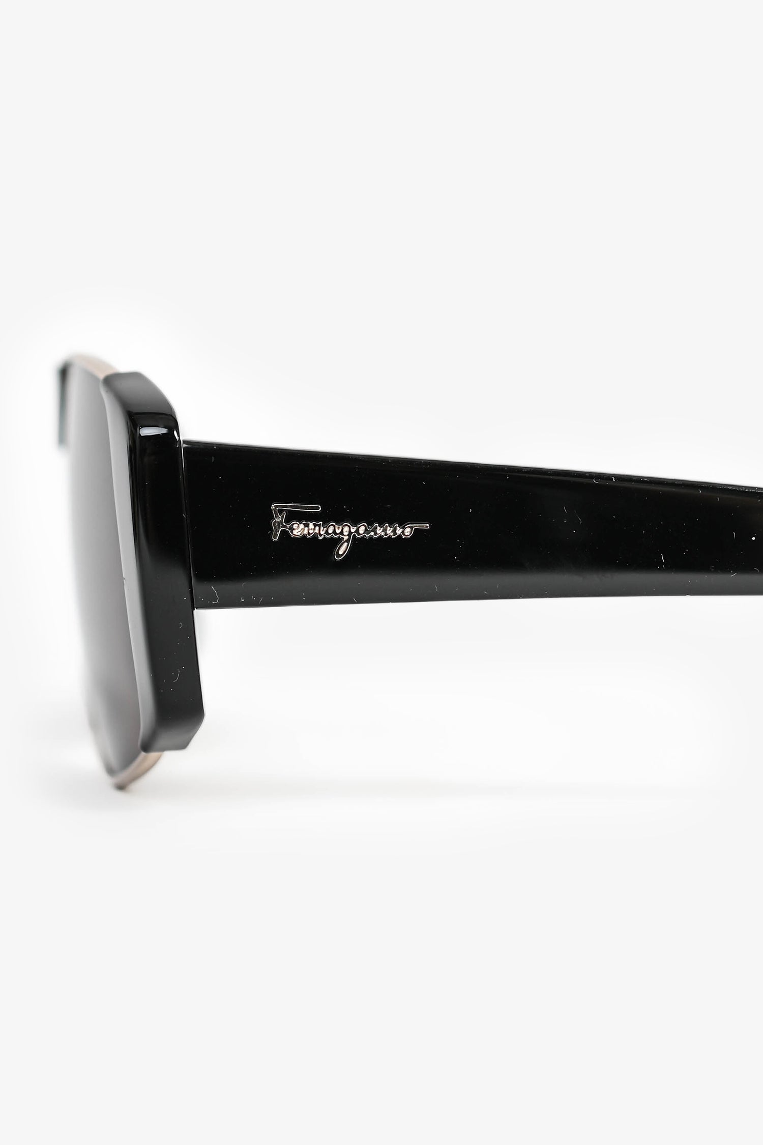 Refresh availabilitySalvatore Ferragamo Black Slim Sunglasses. Gold-tone and black combined frame. Adjustable nose pads.