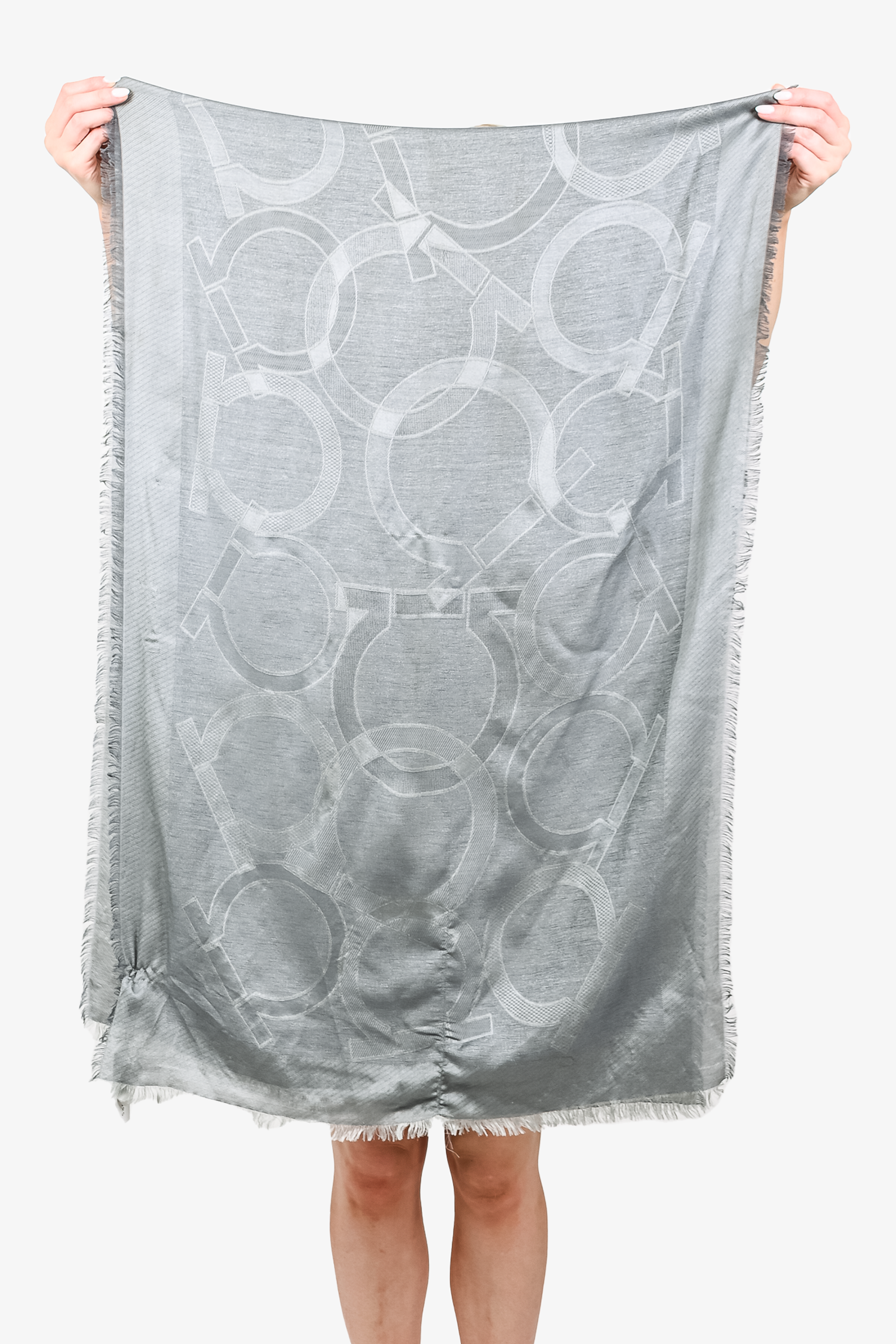 Salvatore Ferragamo Grey Gancini Printed Silk/Cashmere Thin Scarf