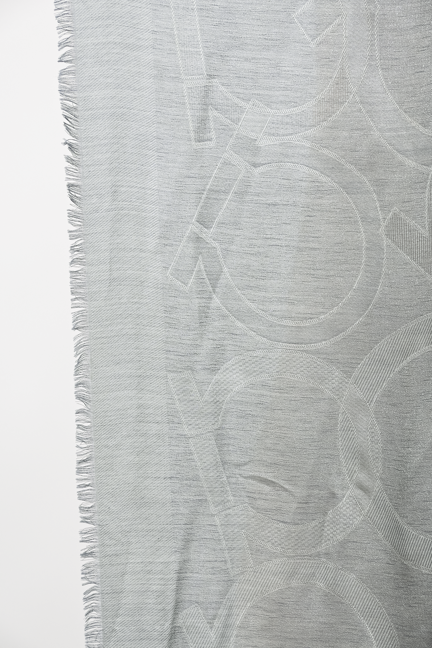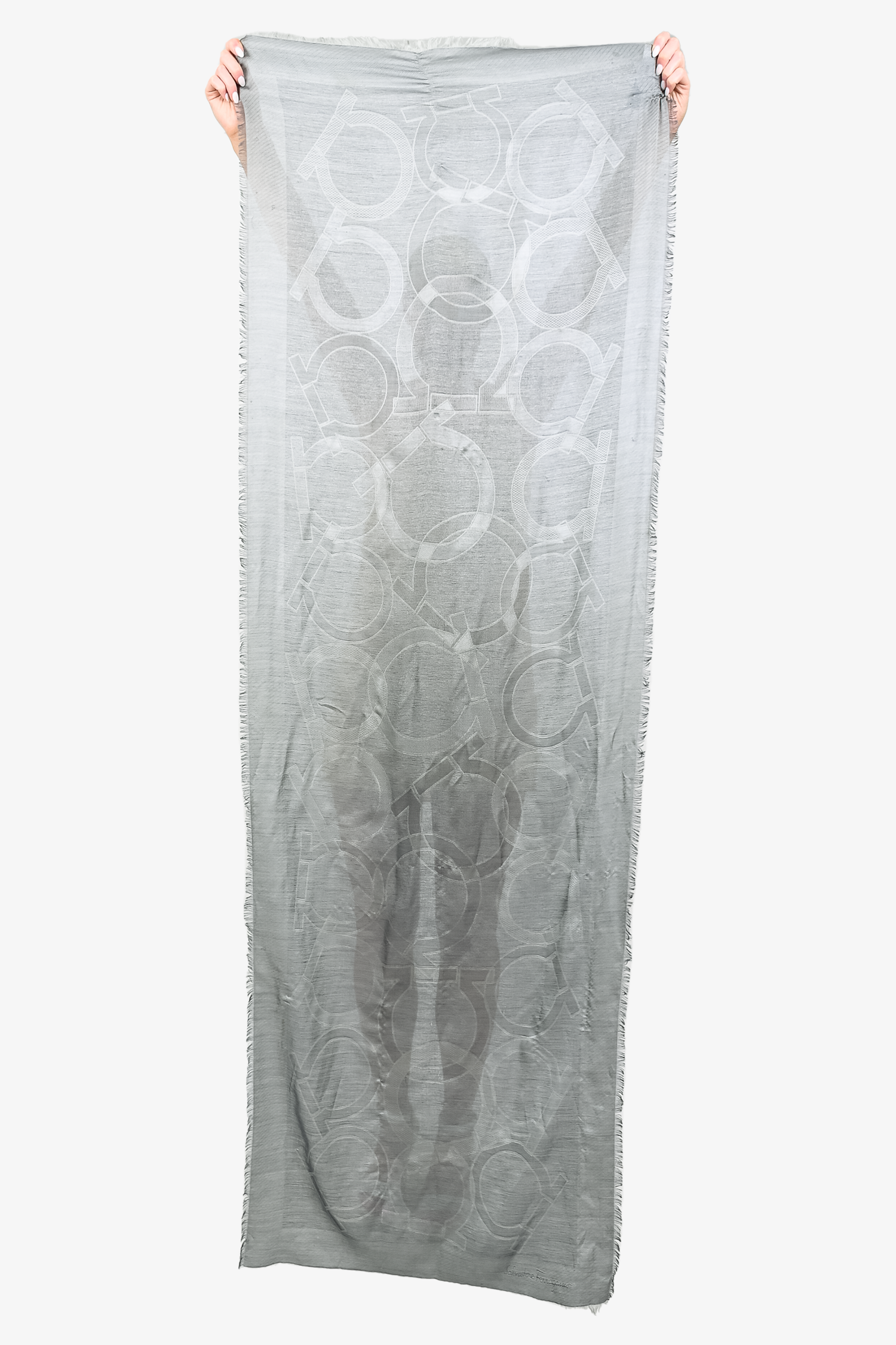 Refresh availabilitySalvatore Ferragamo Grey Gancini Printed Silk/Cashmere Thin Scarf. Tonal stitching.