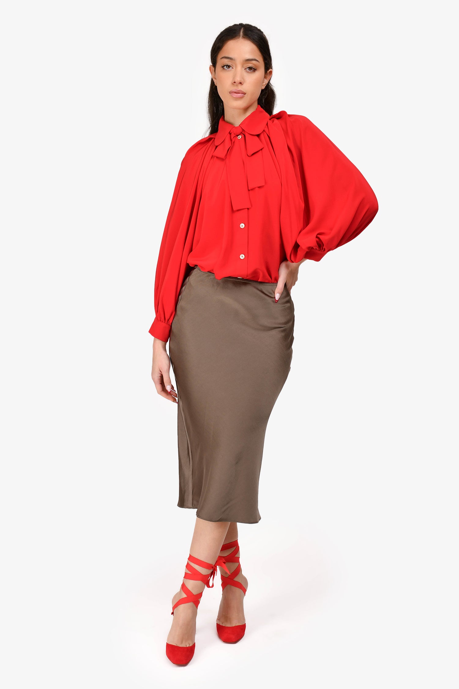 Samsoe Samsoe Olive Green Satin 'Agneta' Midi Skirt Size XS