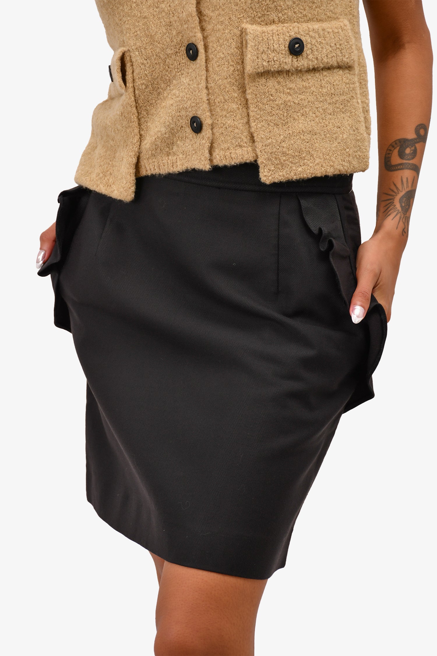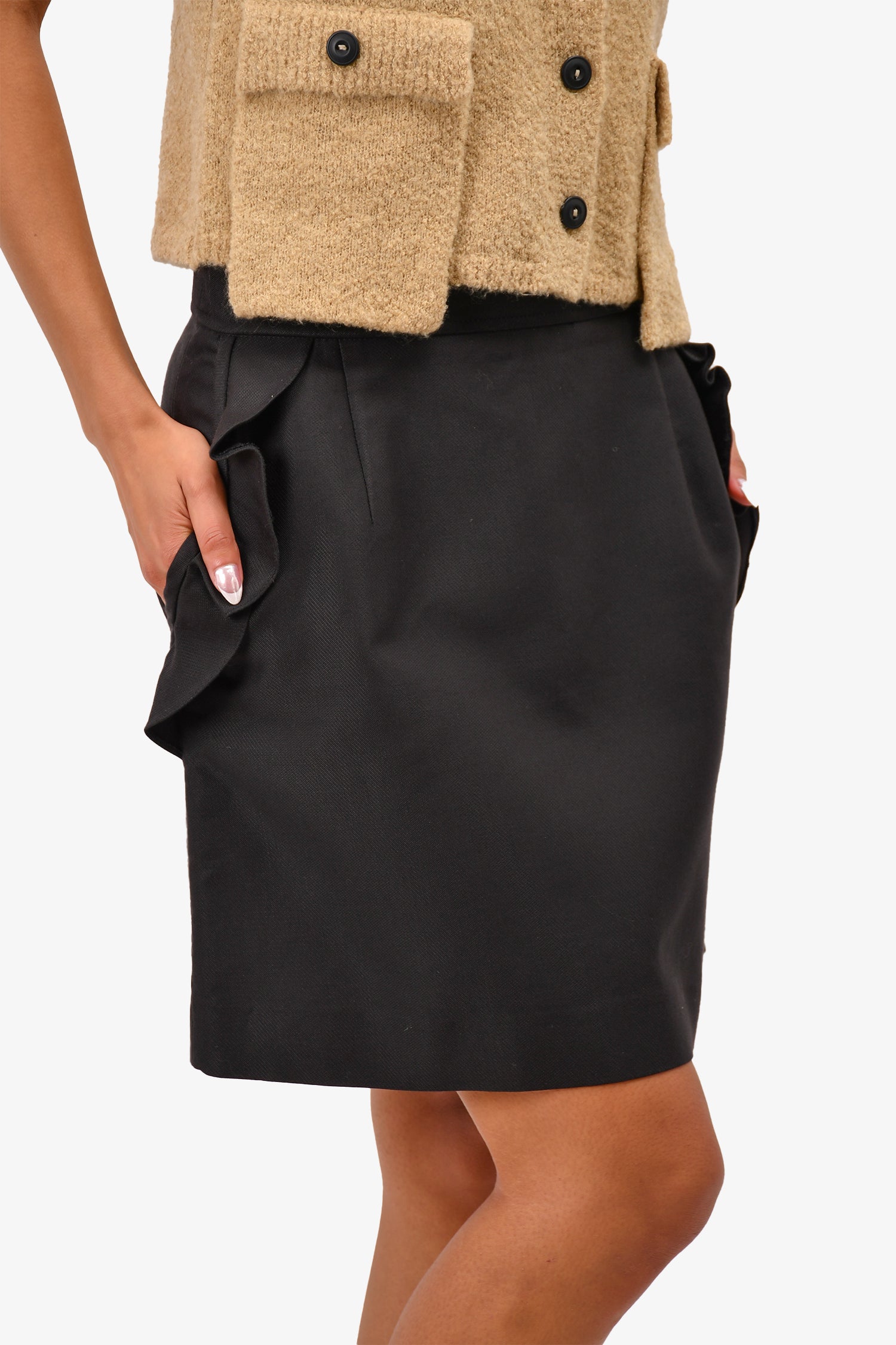 Refresh availabilitySandro Back Ruffle Pocket Mini Skirt. Back zipper closure. Two side pockets. Tonal stitching.