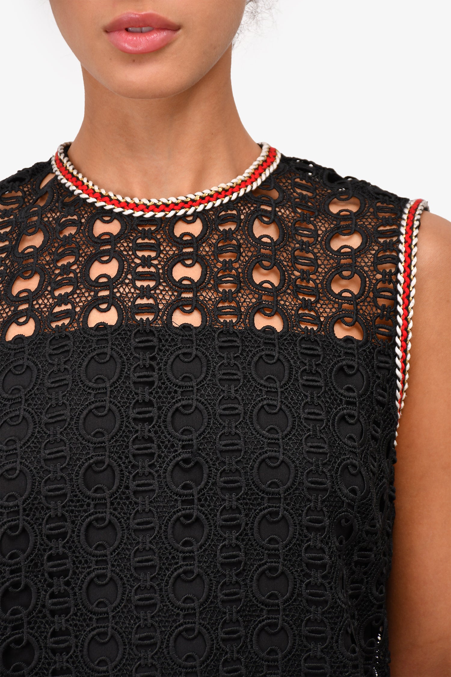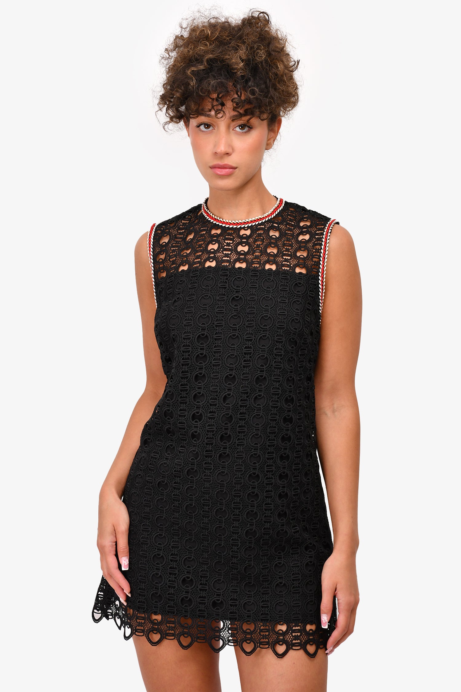 Refresh availabilitySandro Black Eyelet Overlay Sleeveless Shift Dress. Rear zip closure. Lined.