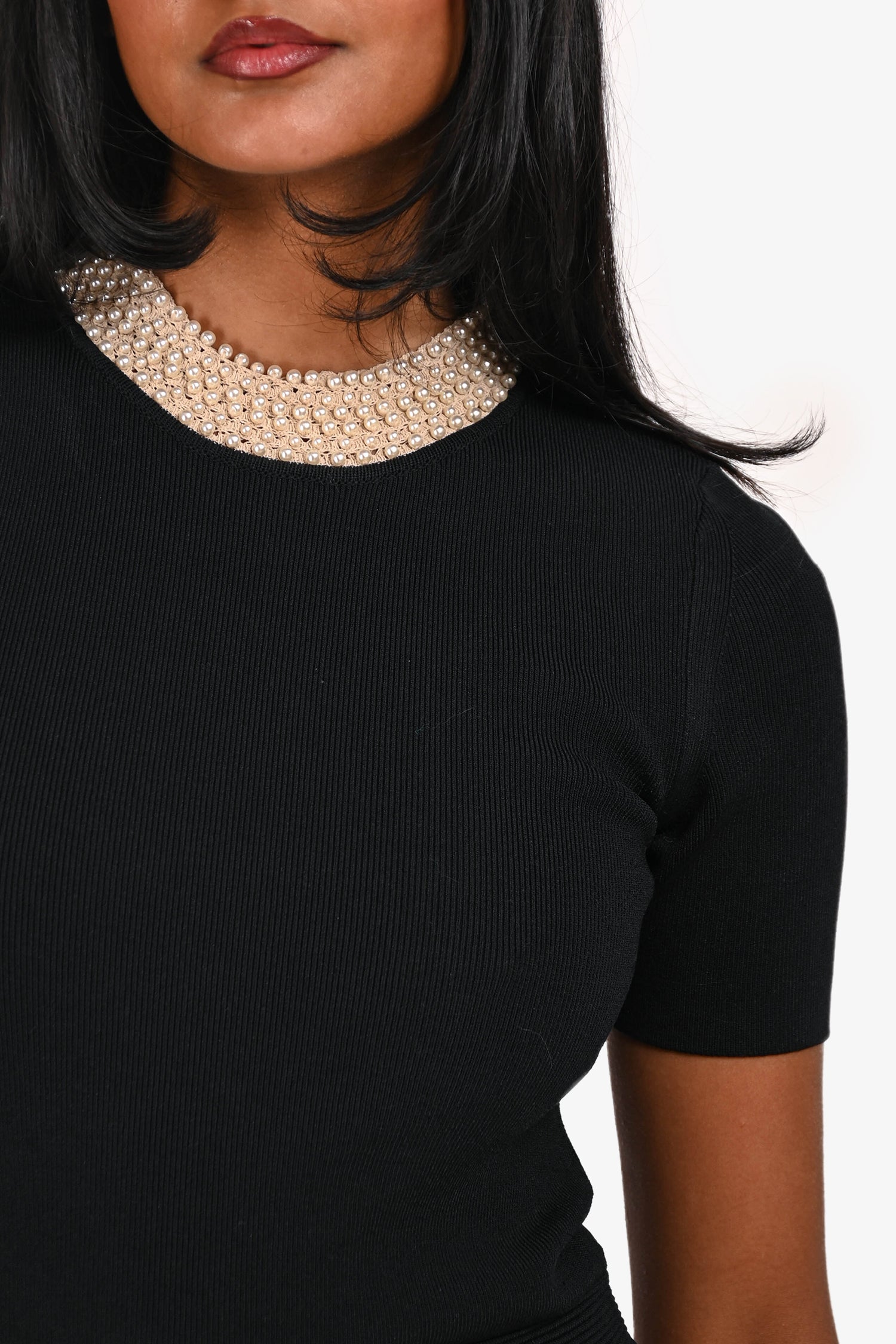 Sandro Black Faux Pearl Neckline Mini Dress Size 36 FR