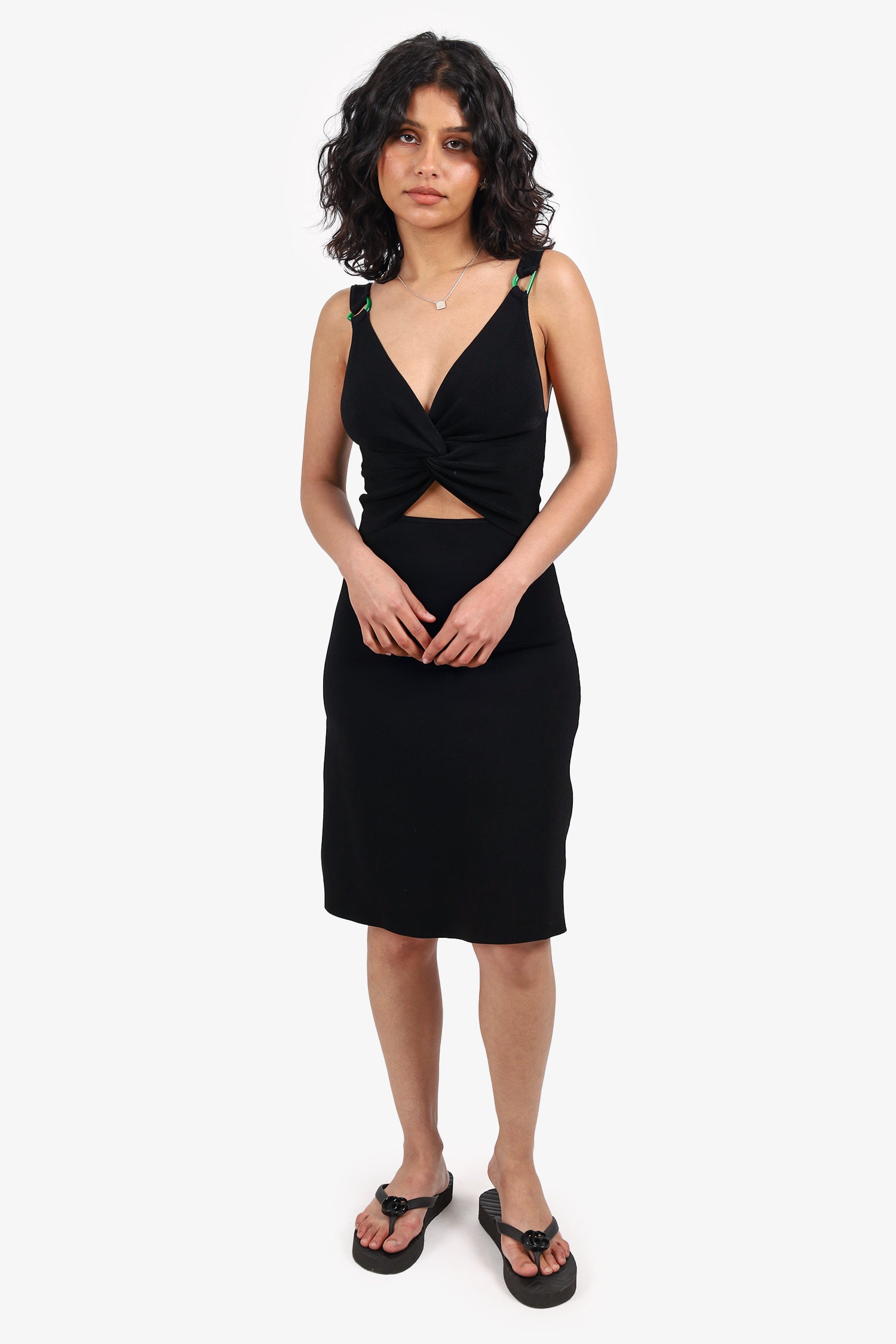 Refresh availabilitySandro Black/Green Ring Cut-Out Dress. Pull-on. V-neckline. Front knotted design with cut out at waistline. Tonal stitching.