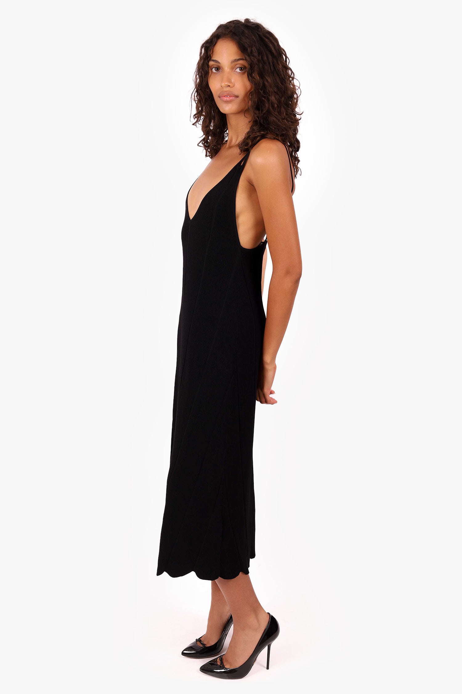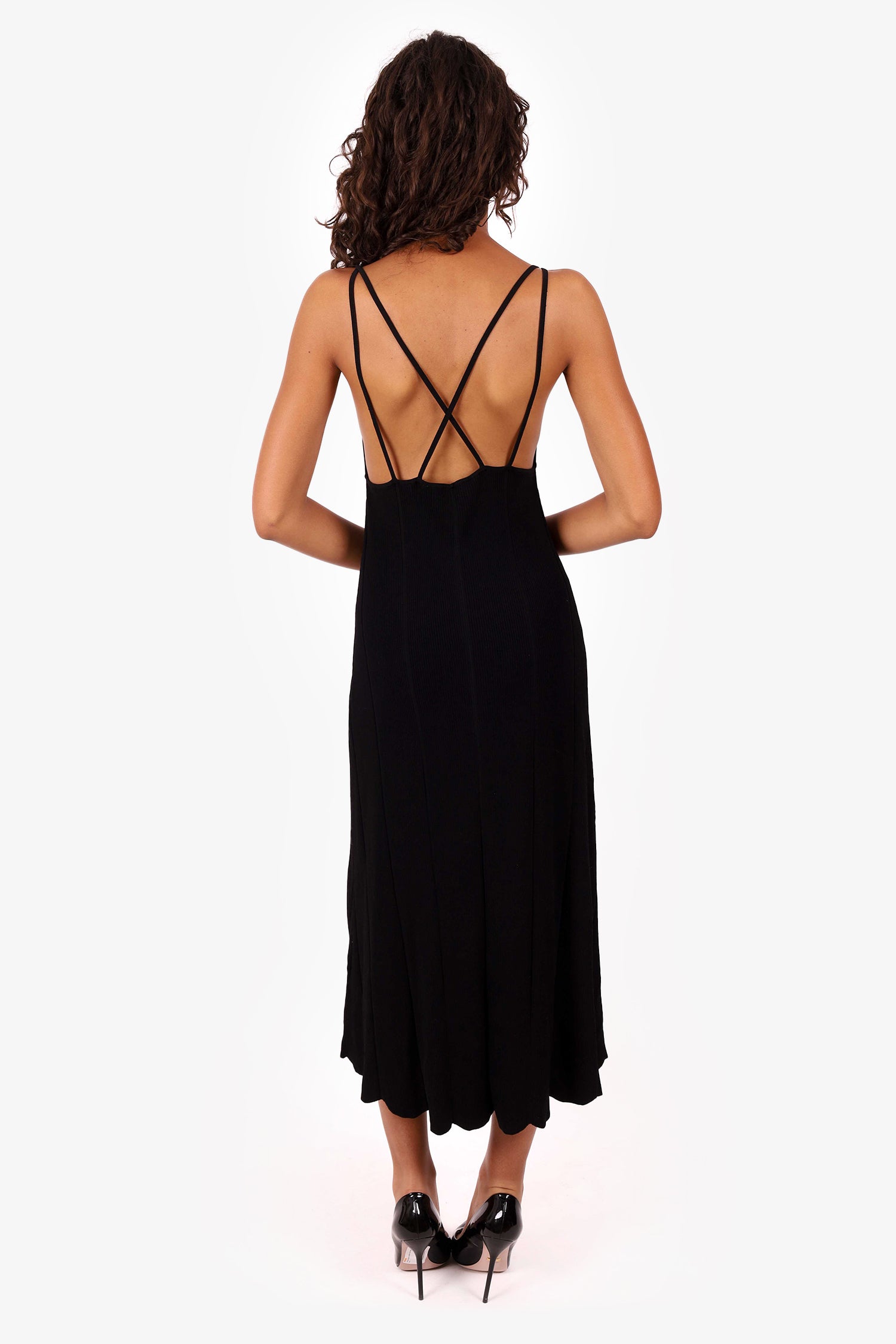 Refresh availabilitySandro Black Knit Strappy Midi Dress. Slip-on. V-neckline. Rear criss-cross straps. Tonal stitching.