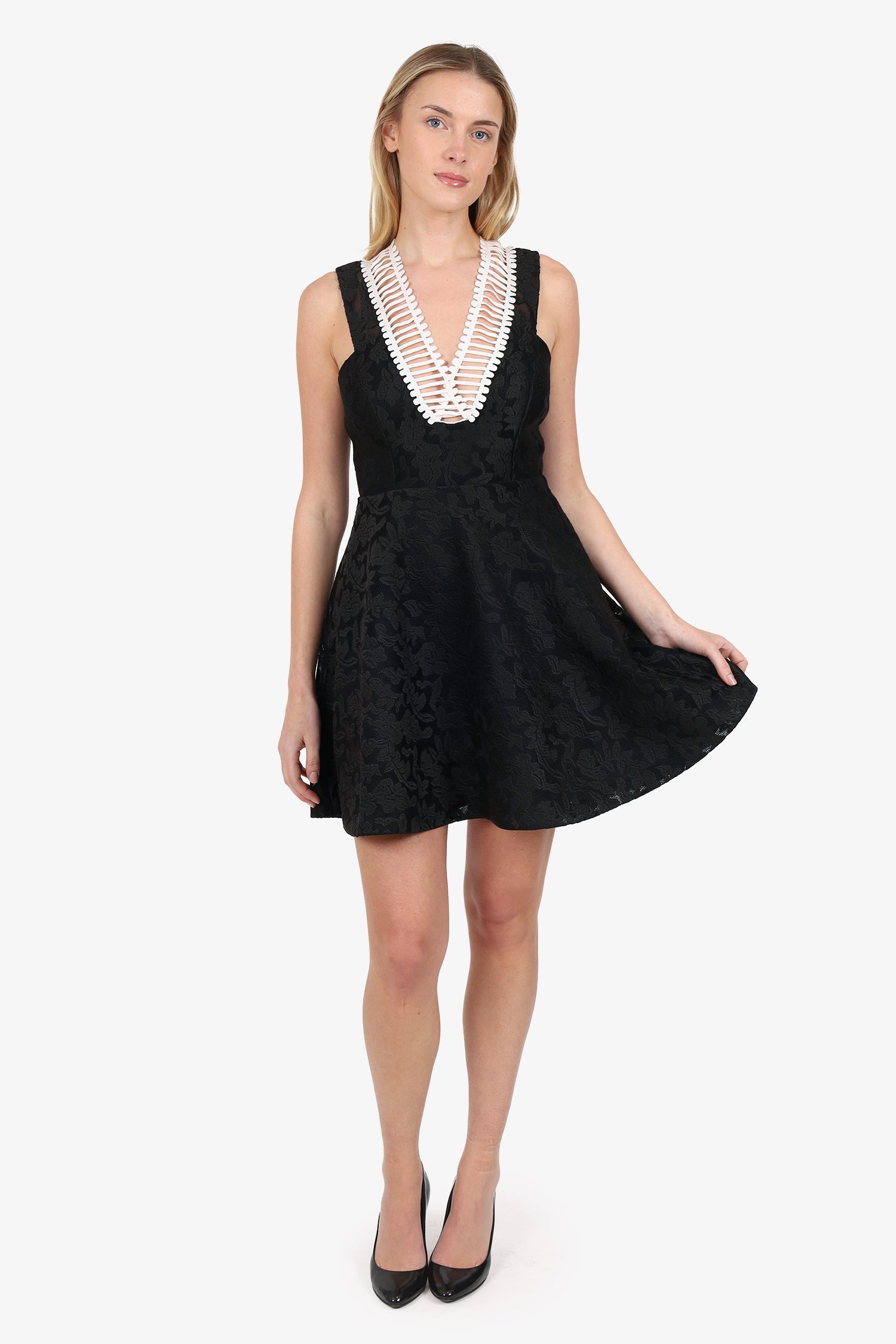Refresh availabilitySandro Black Rhythm Embroidered Mesh Mini Dress. Slip-on. V-neckline. Rear zip closure. Lined interior. Tonal stitching.