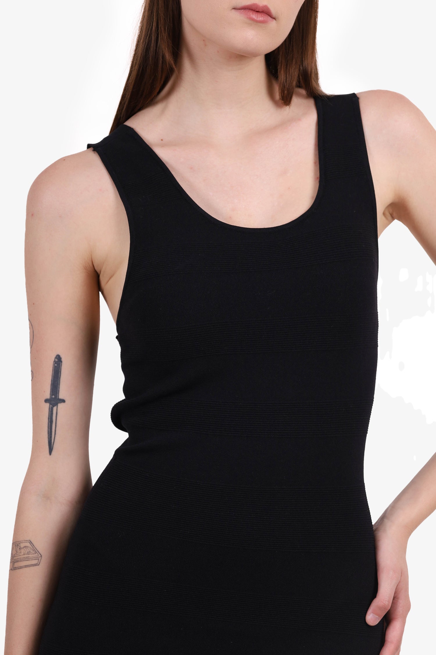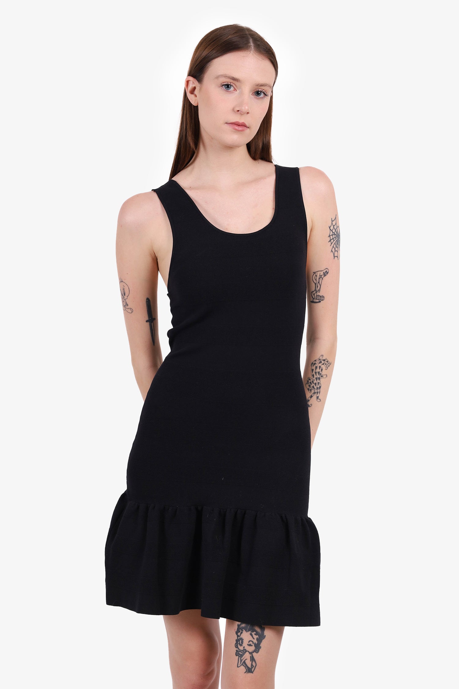Refresh availabilitySandro Black Ribbed Ruffle Hem Sleeveless Mini Dress. Slip-on. Round neckline. Tonal stitching. Unlined.
