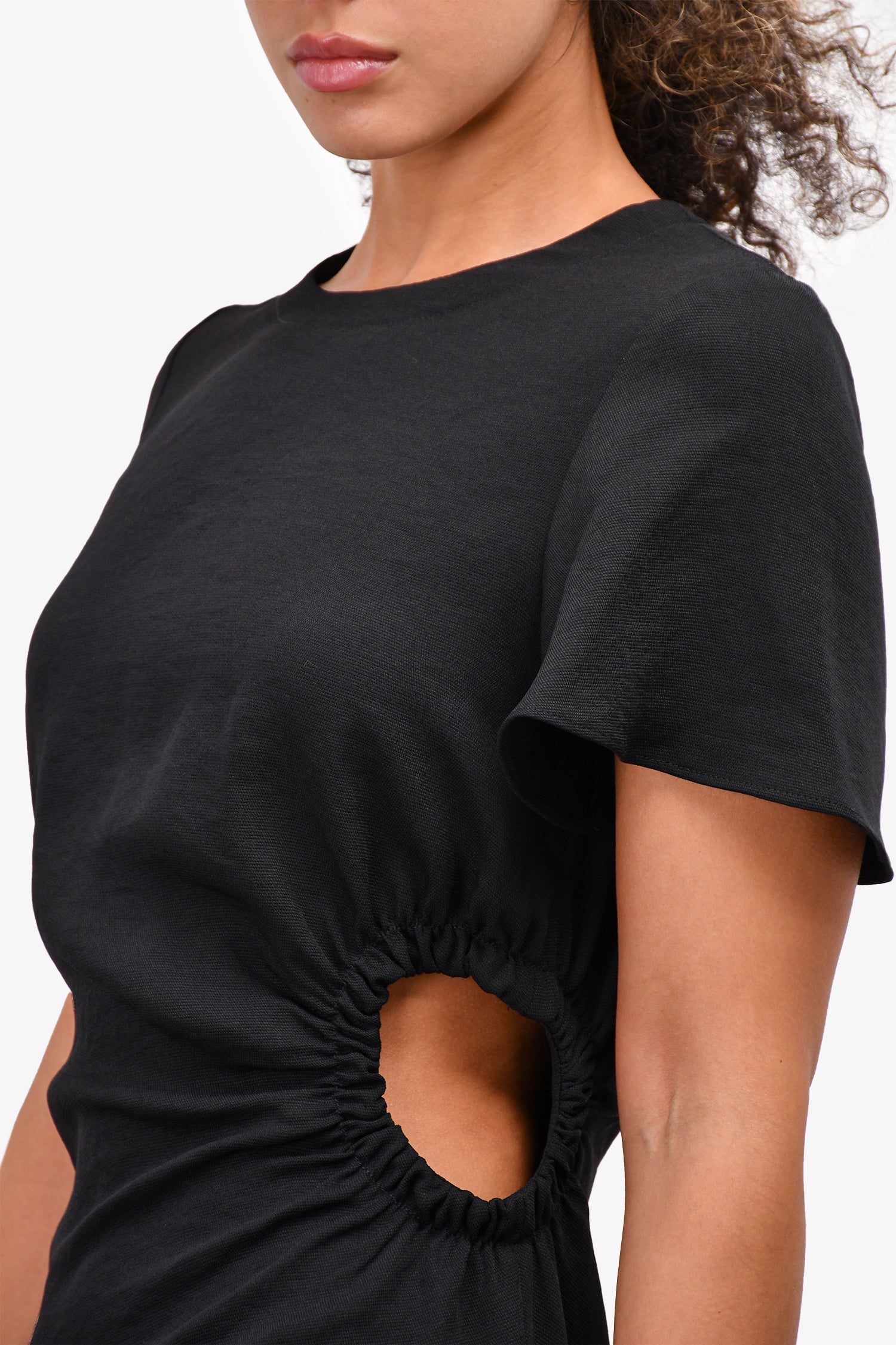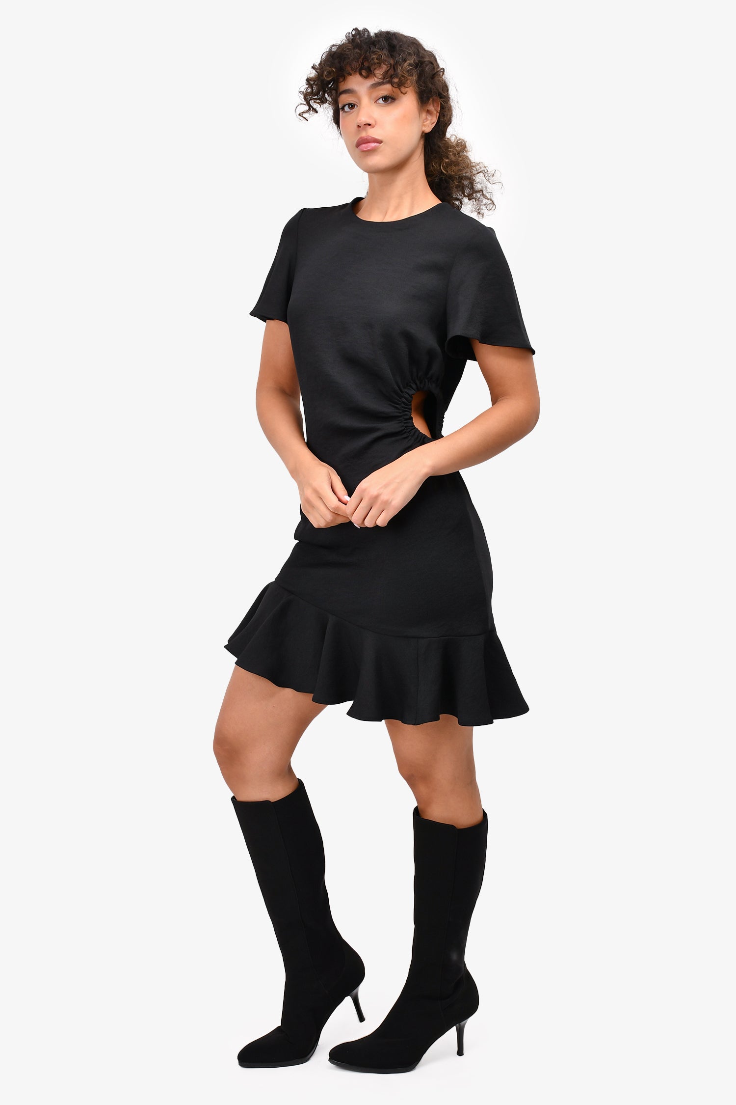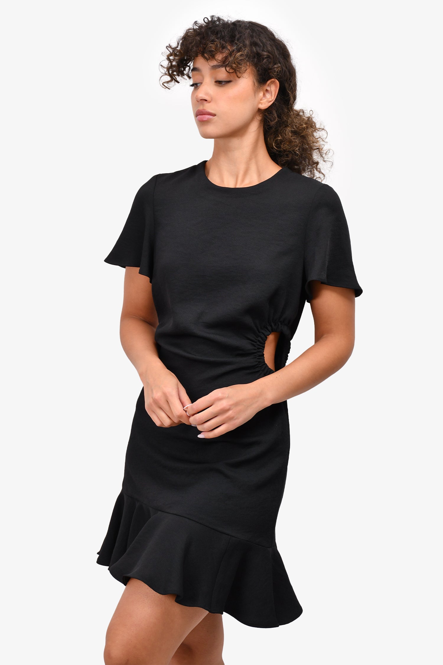 Refresh availabilitySandro Black Side Cutout Mini Dress. Rear zip closure. Round neck. Unlined.