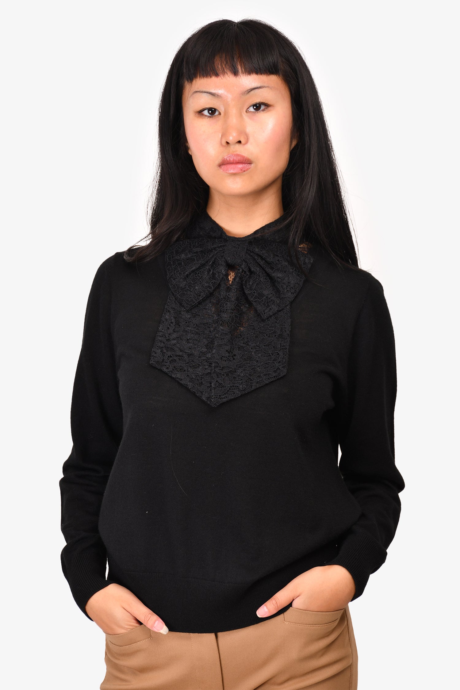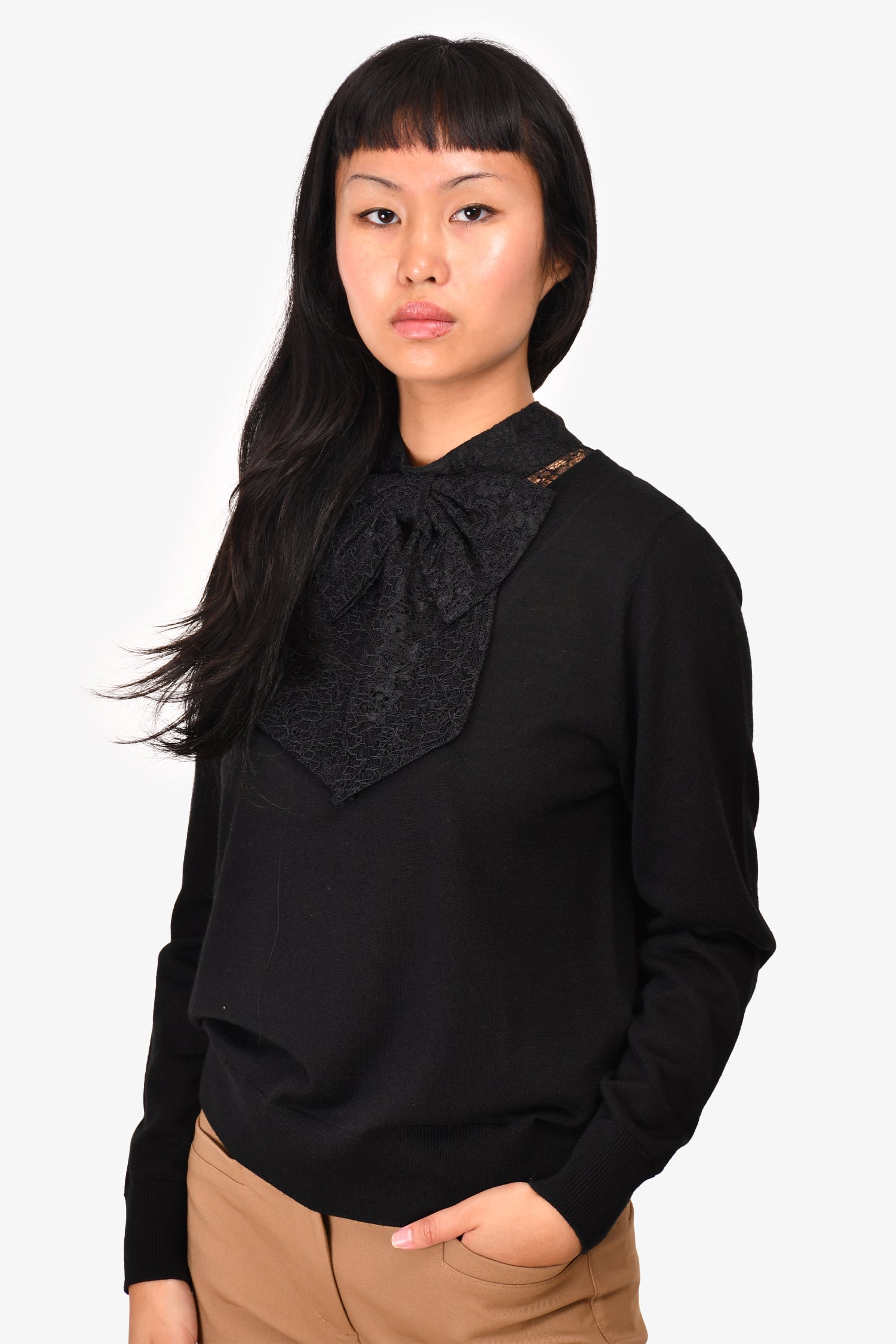 Refresh availabilitySandro Black Wool Lace Bow Detail Long Sleeve Sweater.