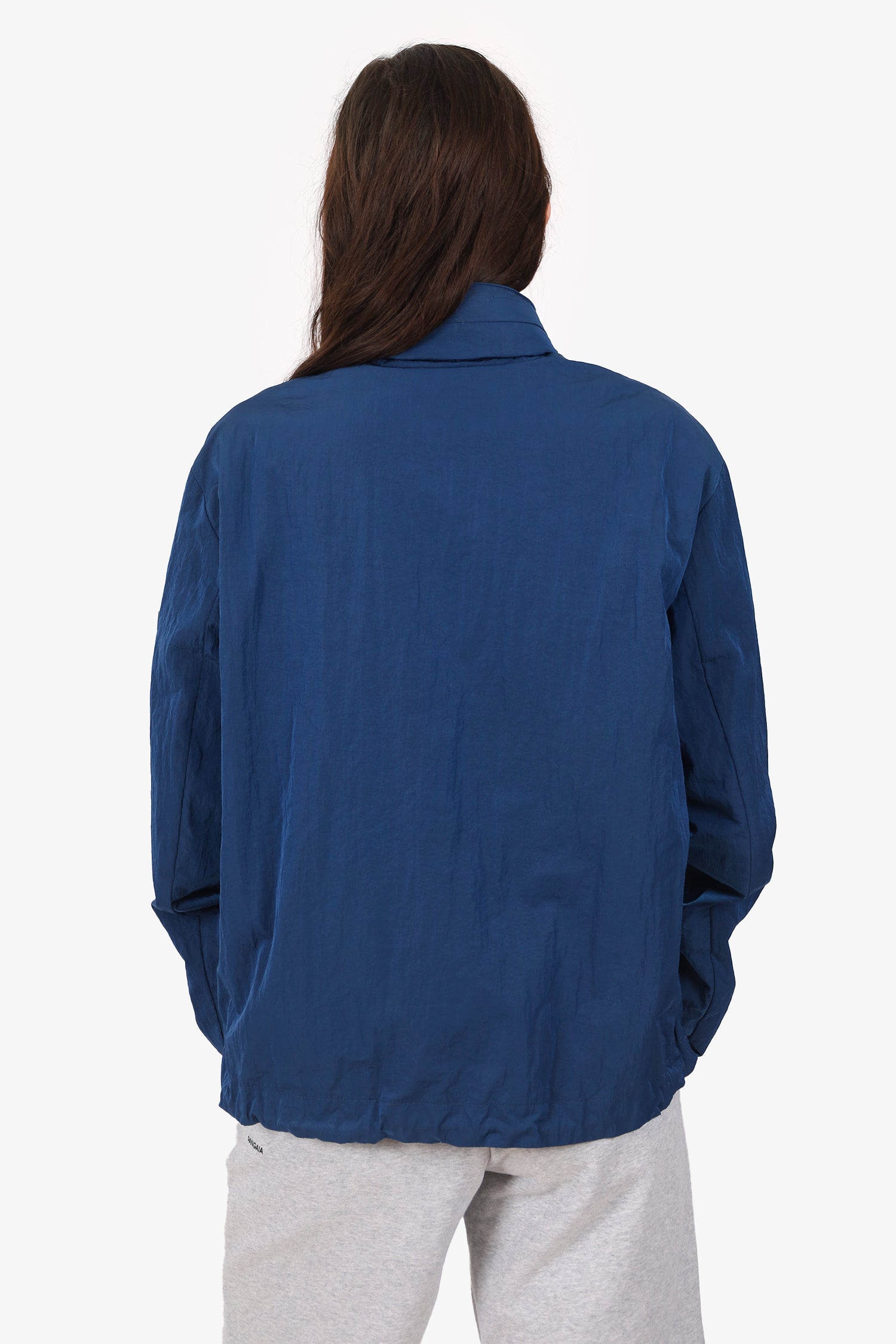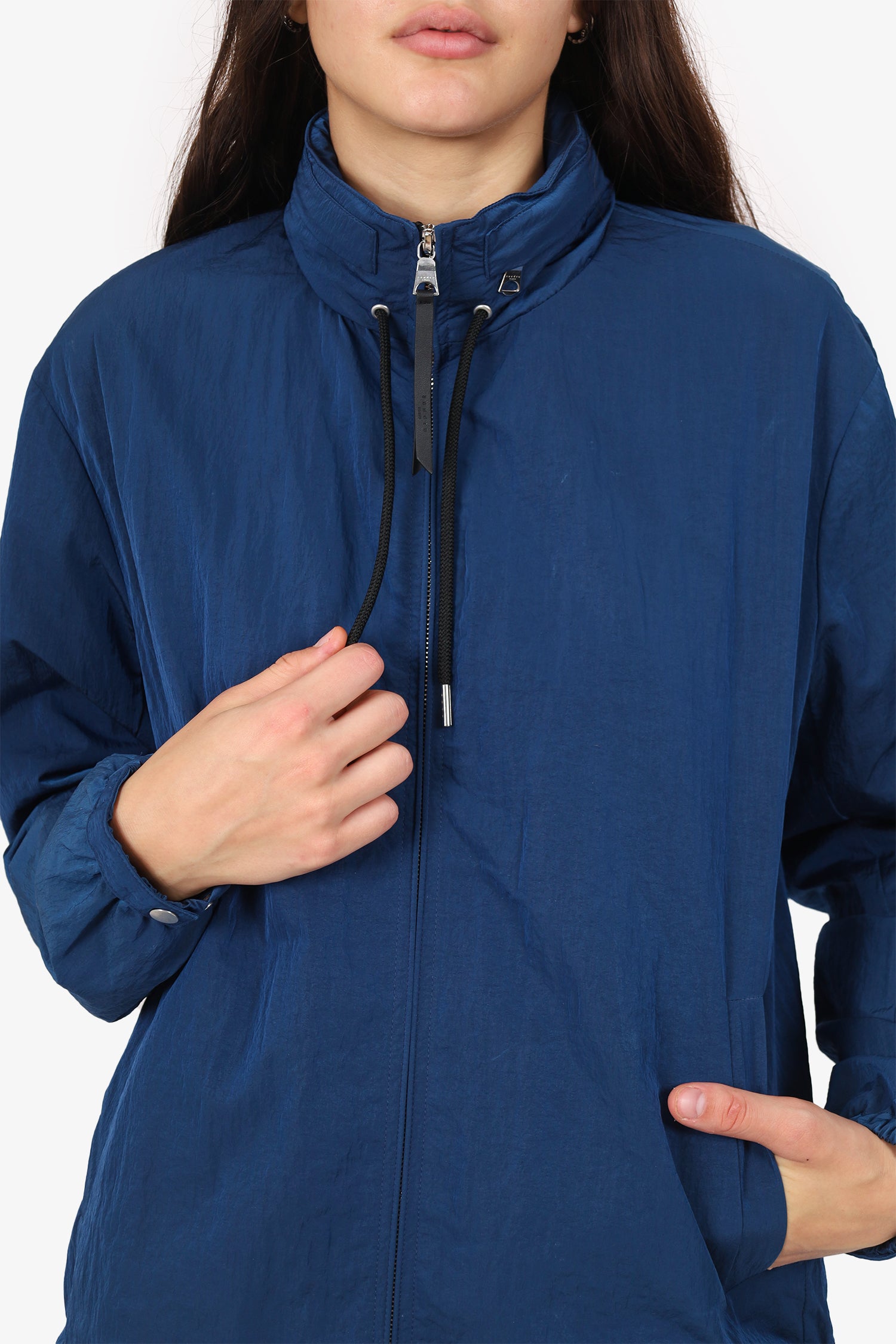 Refresh availabilitySandro Blue Hooded Rain Jacket. Pull-on. Round-neckline. Front zip closure. Retractable hood with adjustable drawstring closure. Elasticated sleeve cuffs with snap-button closure. Adjustable cinching drawcords at interior bottom hem. 2 exterior side slip pockets. Mesh-lined interior. Silver-tone hardware. Tonal stitching.