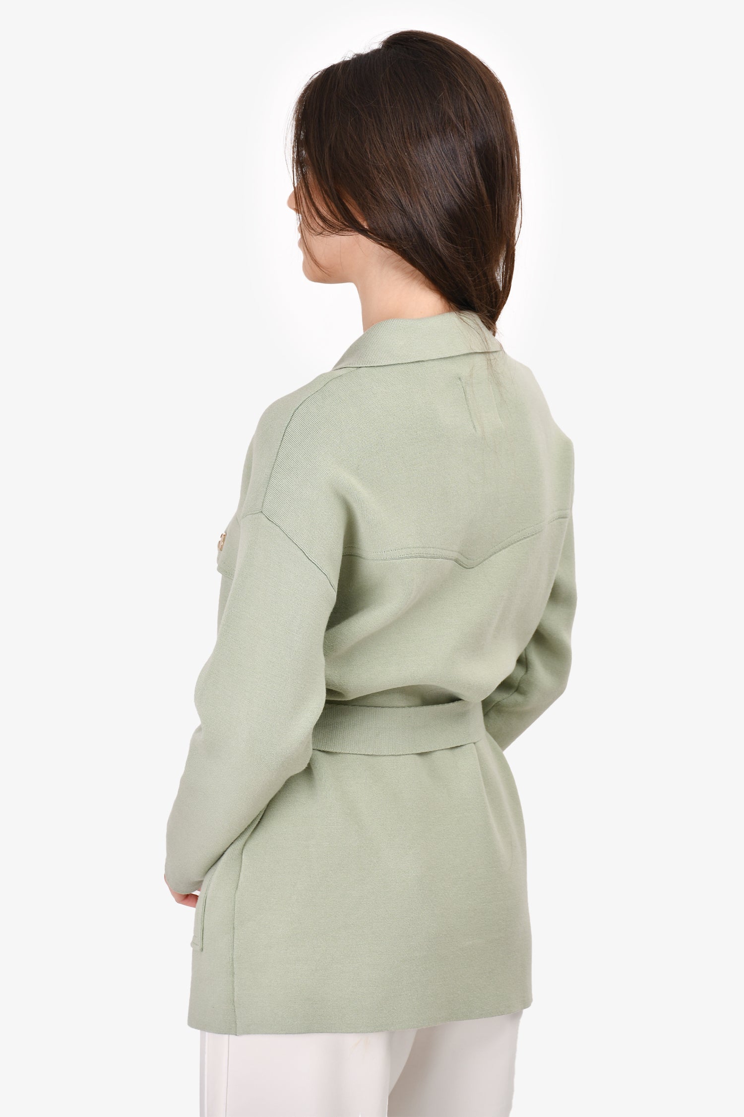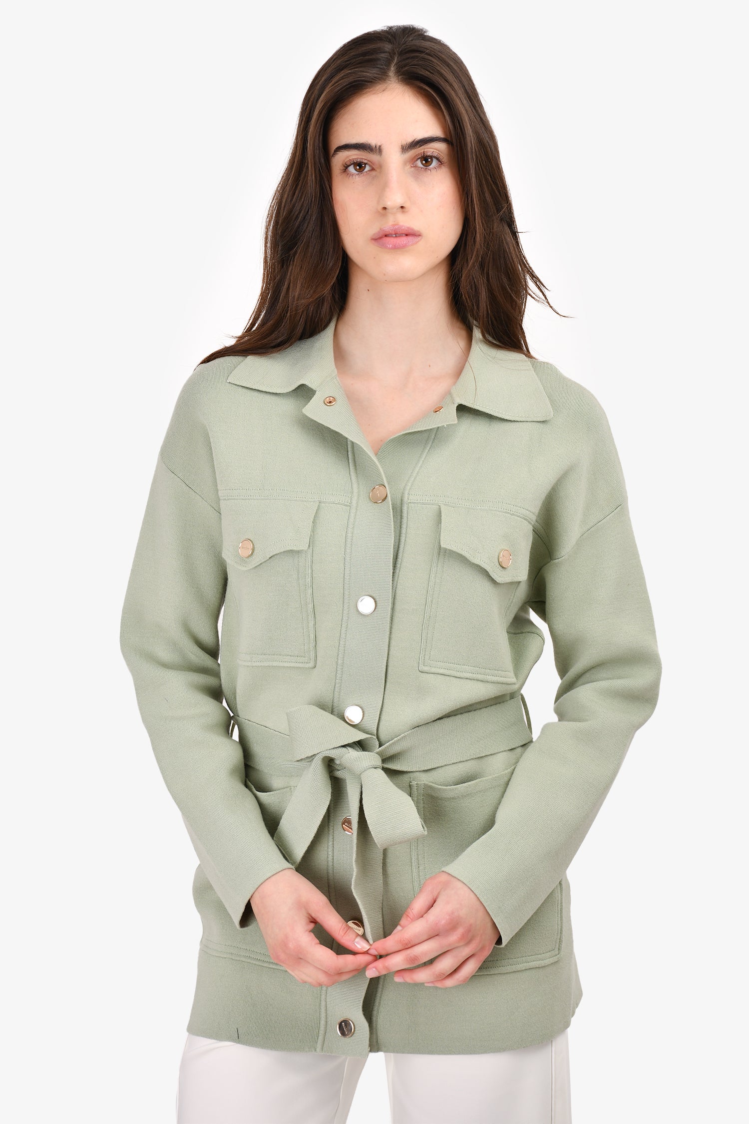 Refresh availabilitySandro Green Knit Button Belted Cardigan. Front snap button-up closure. Front pockets.