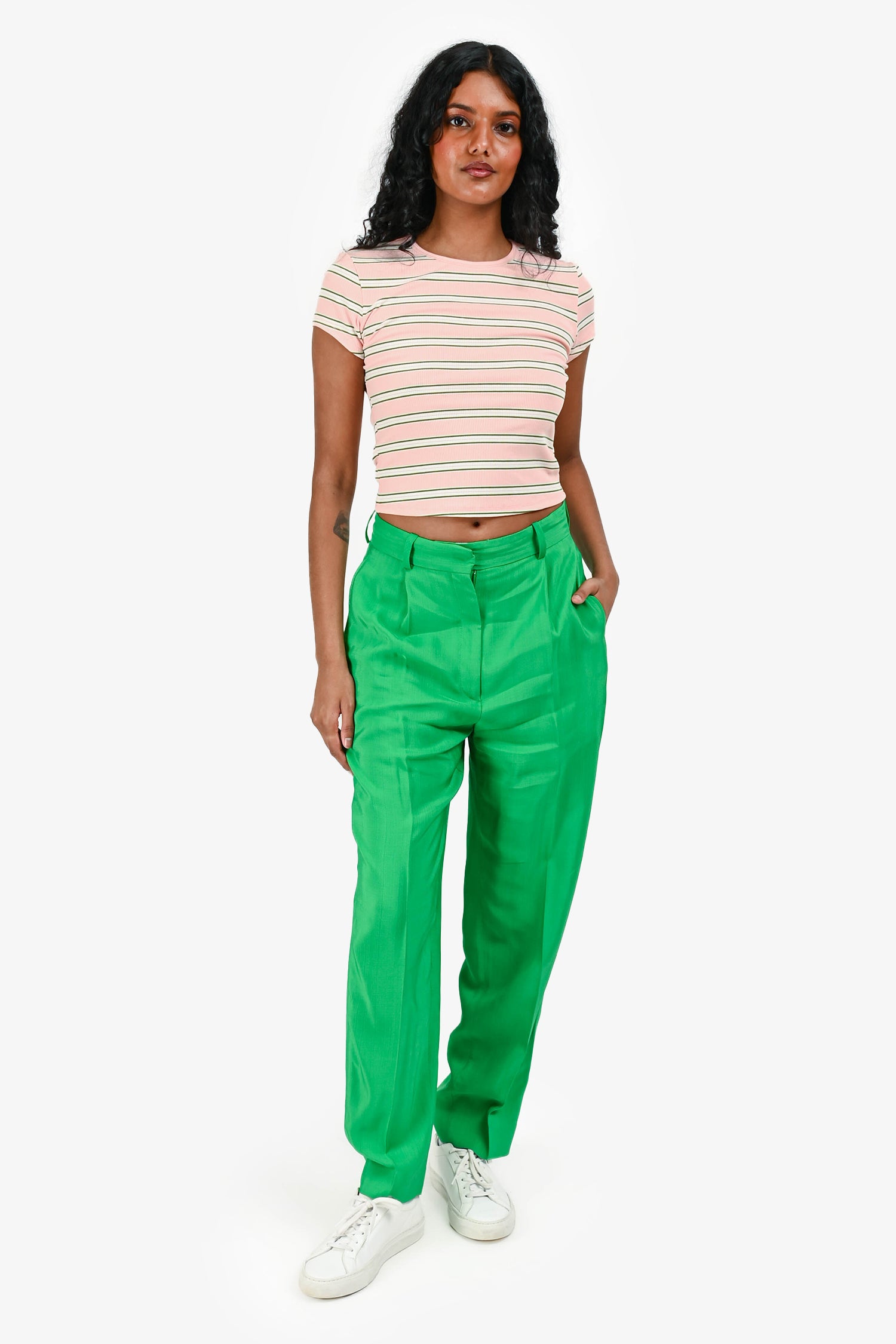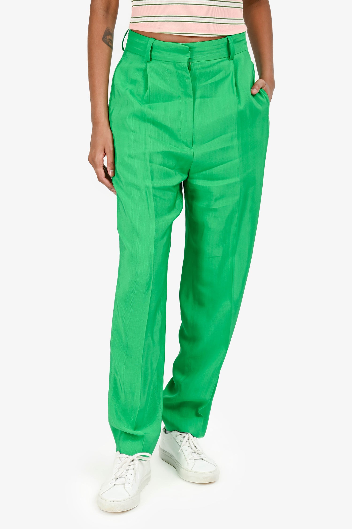 Refresh availabilitySandro Green Pleated Tapered Pants. Front pleats. Zip fly with hook-and-bar closure. Side pockets. Tonal stitching.