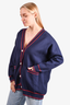 Sandro Navy/Red Heart Print Cardigan Size 1