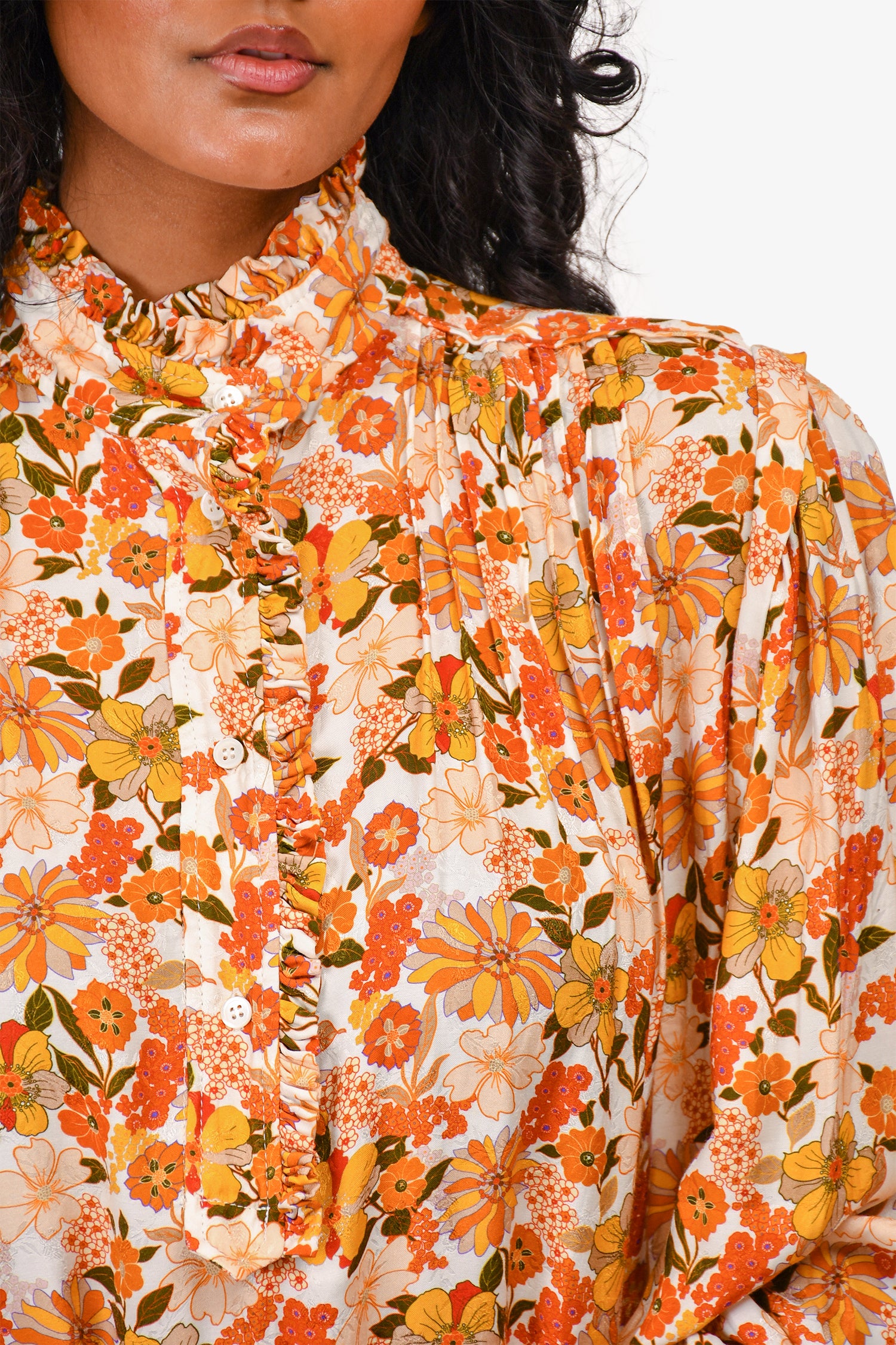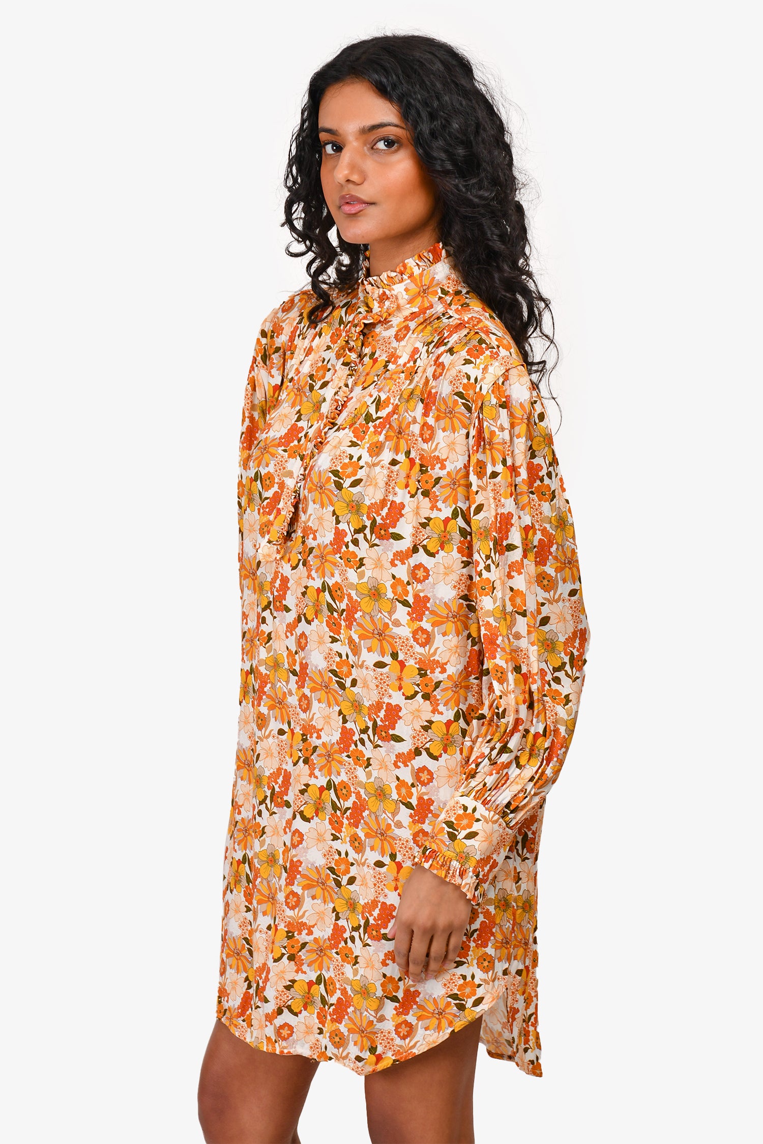 Refresh availabilitySandro Orange Floral Tunic Dress. Tonal stitching.