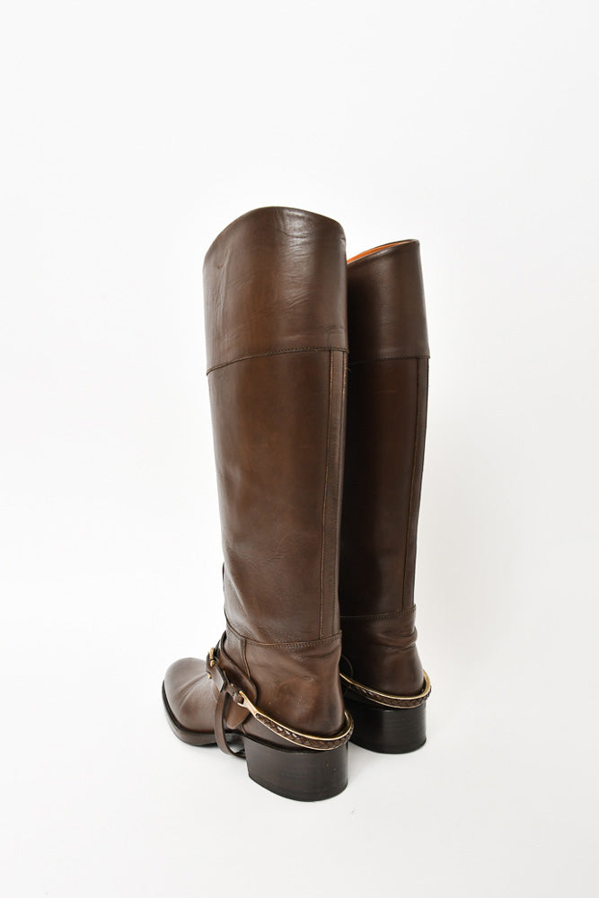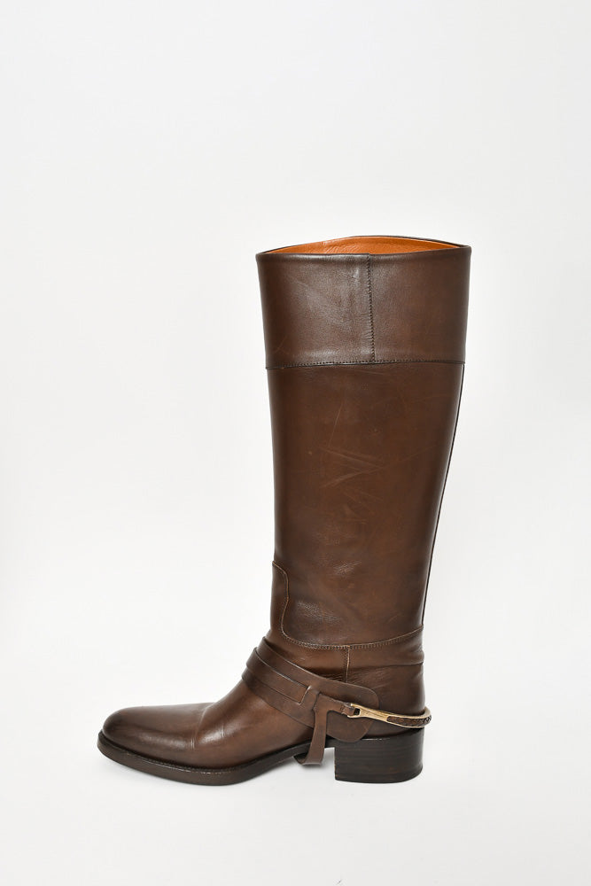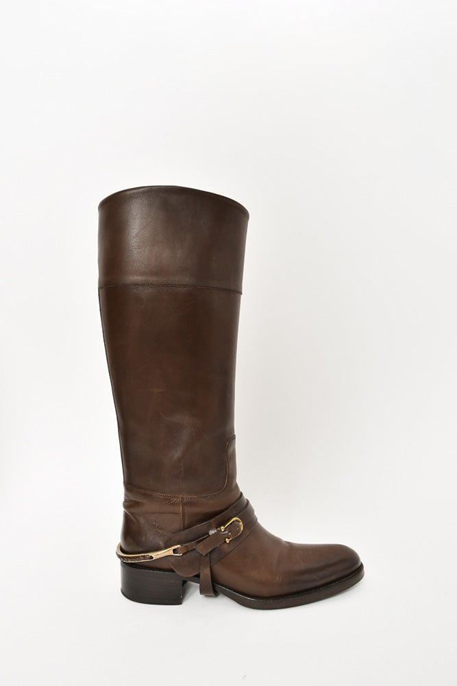 Sartore Brown Leather Knee Boots with Buckle Size 36