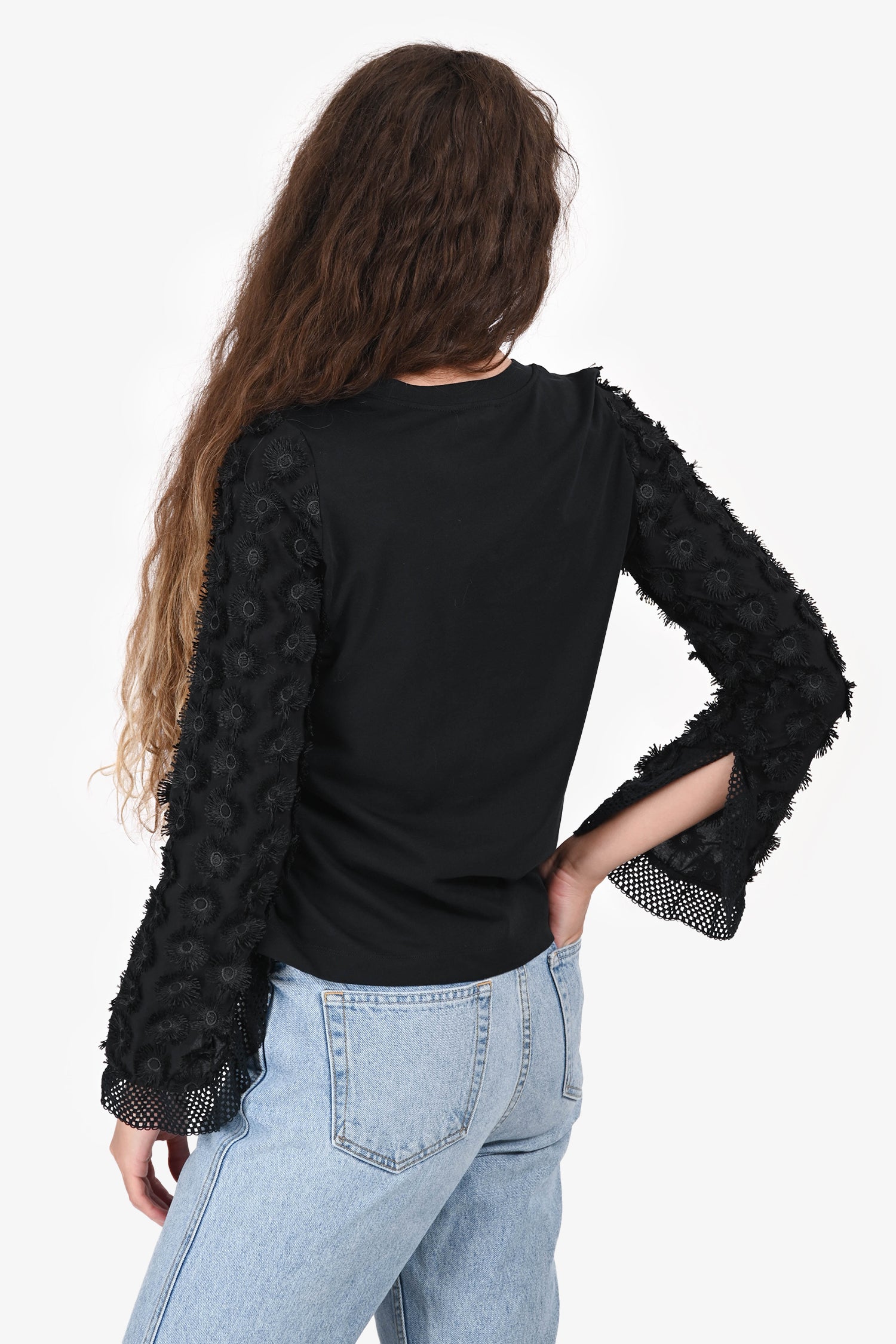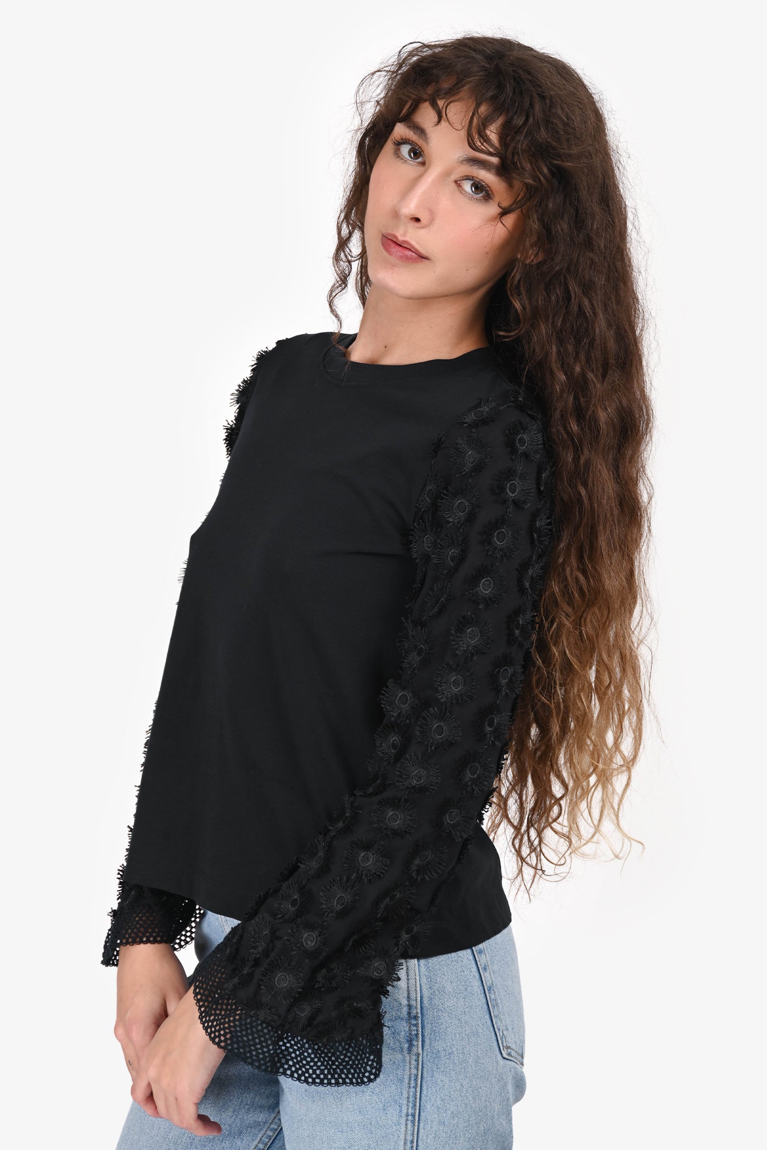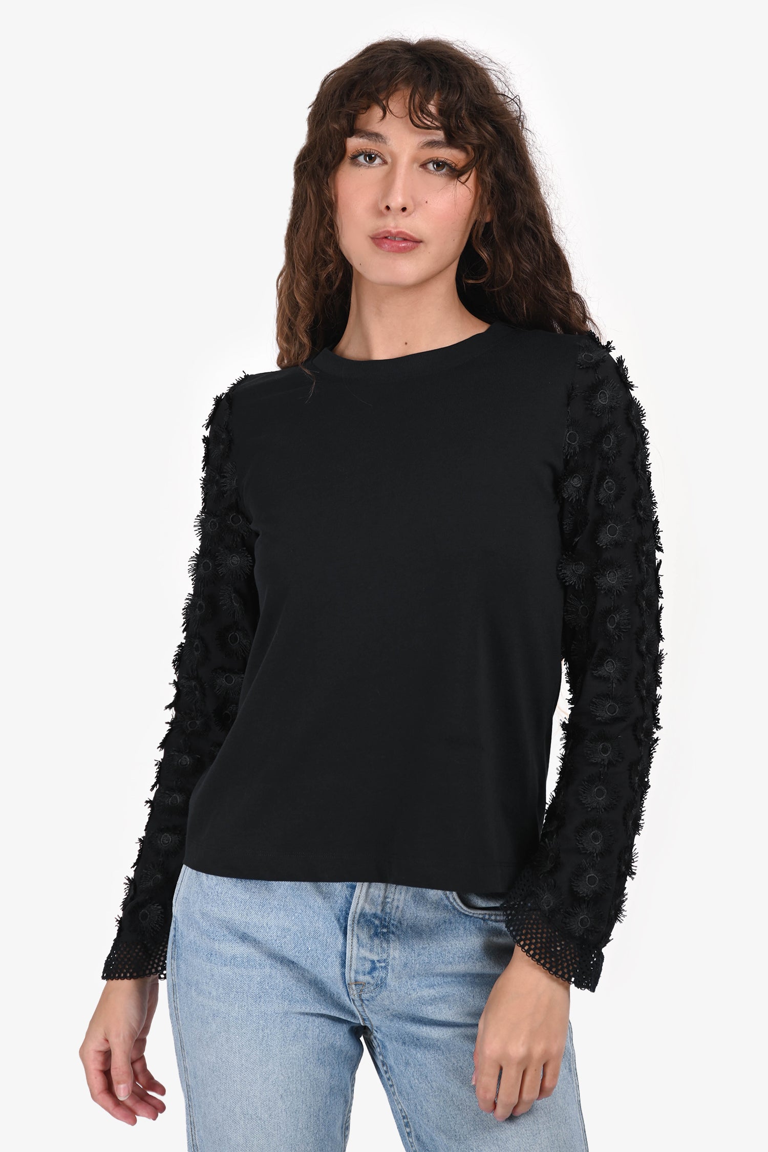 Refresh availabilitySee by Chloe Black Floral Lace Top. Pull-on. Round neckline. Tonal stitching.