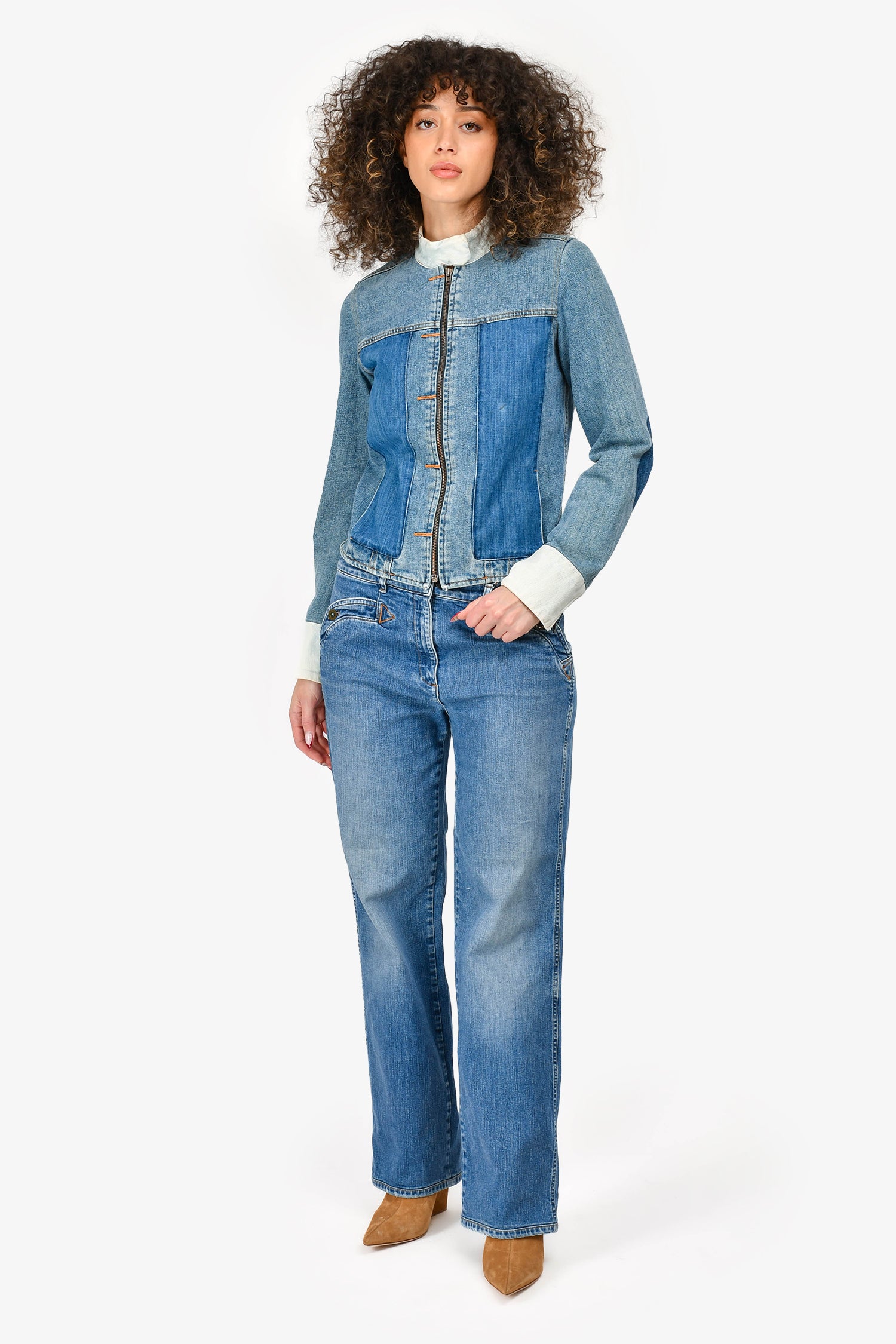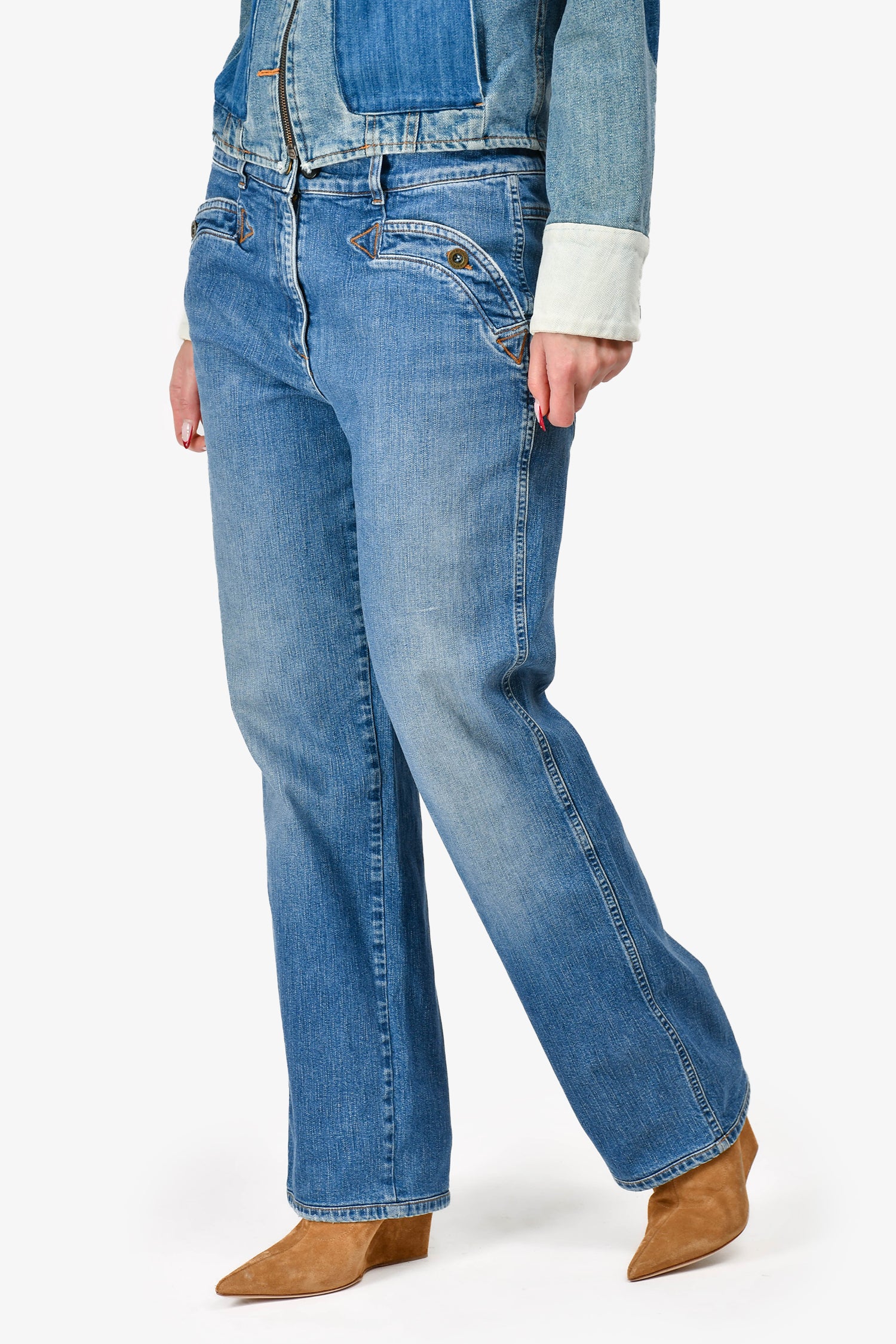 Condition: This item is in good pre-loved condition with wear throughout. The exterior brand label on the jeans is slightly loose