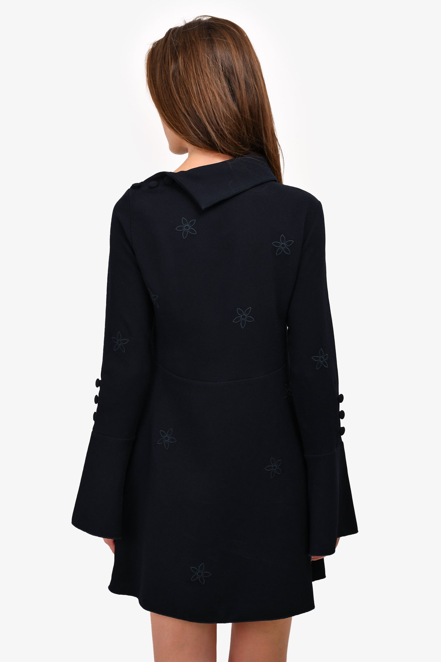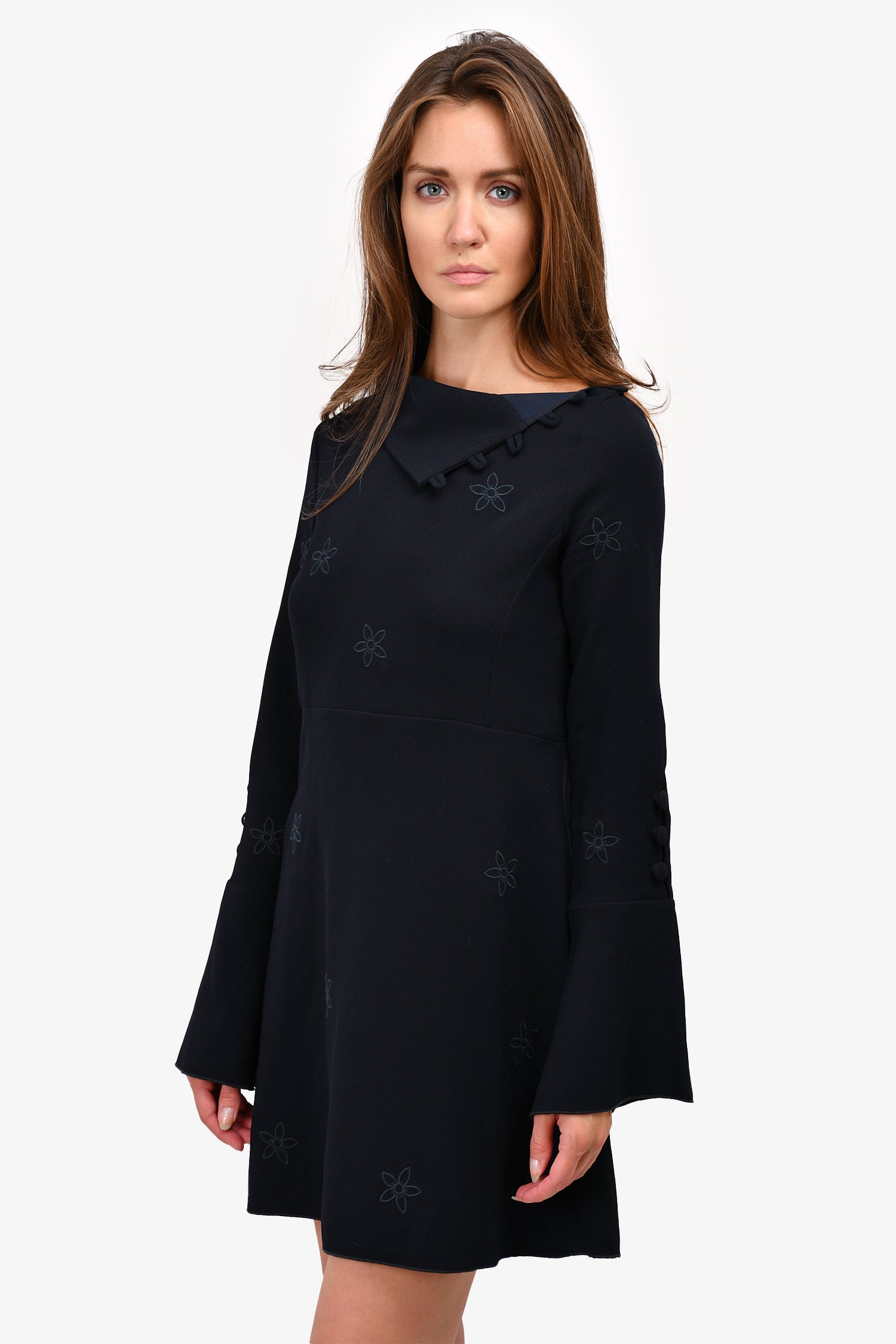 See by Chloe Navy Blue Floral Embroidered Flared Sleeve Dress Size 36