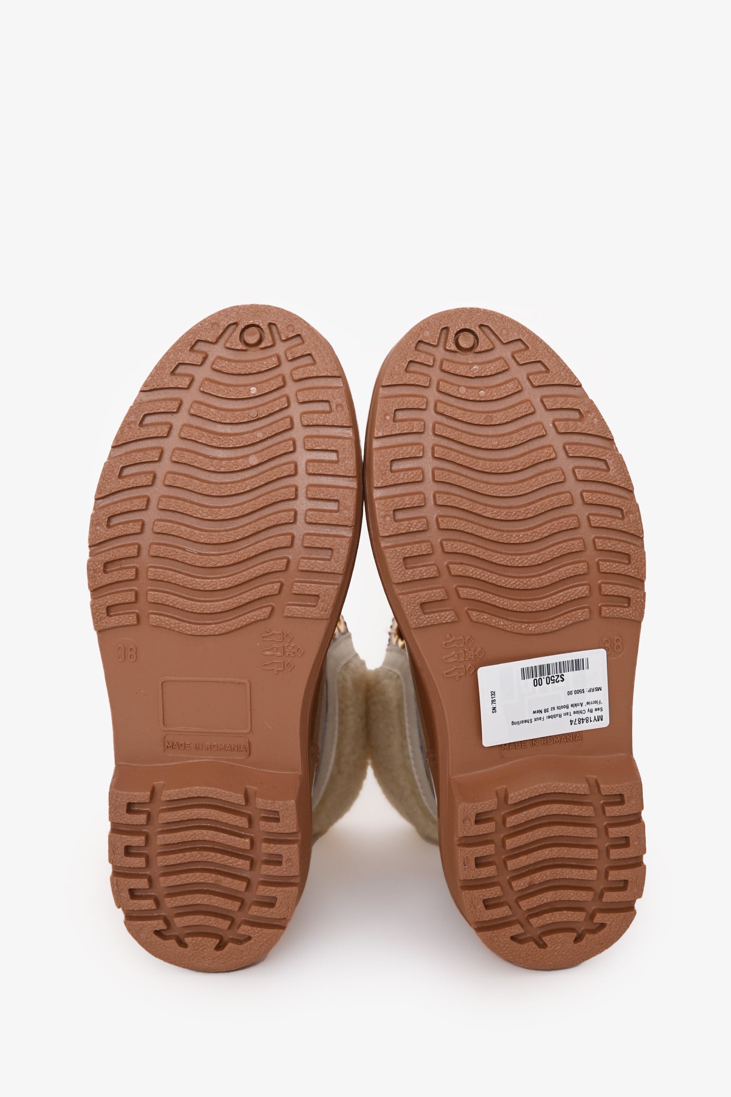 See By Chloe Tan Rubber Faux Shearling 'Florrie' Ankle Boots Size 38