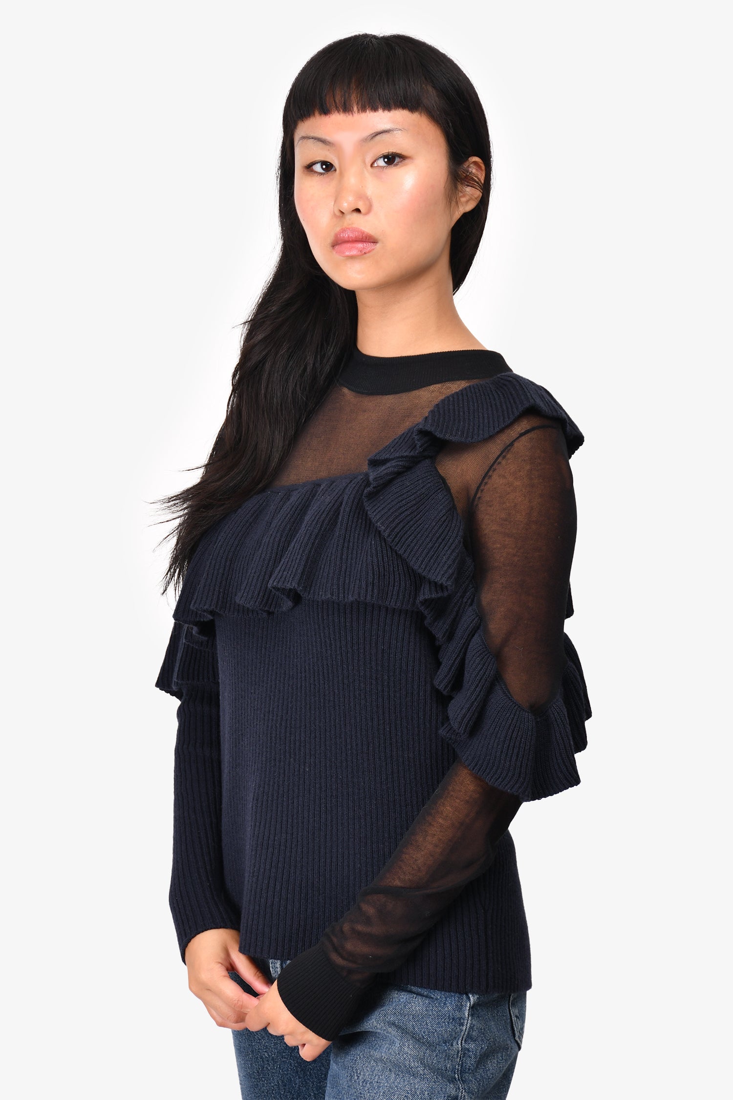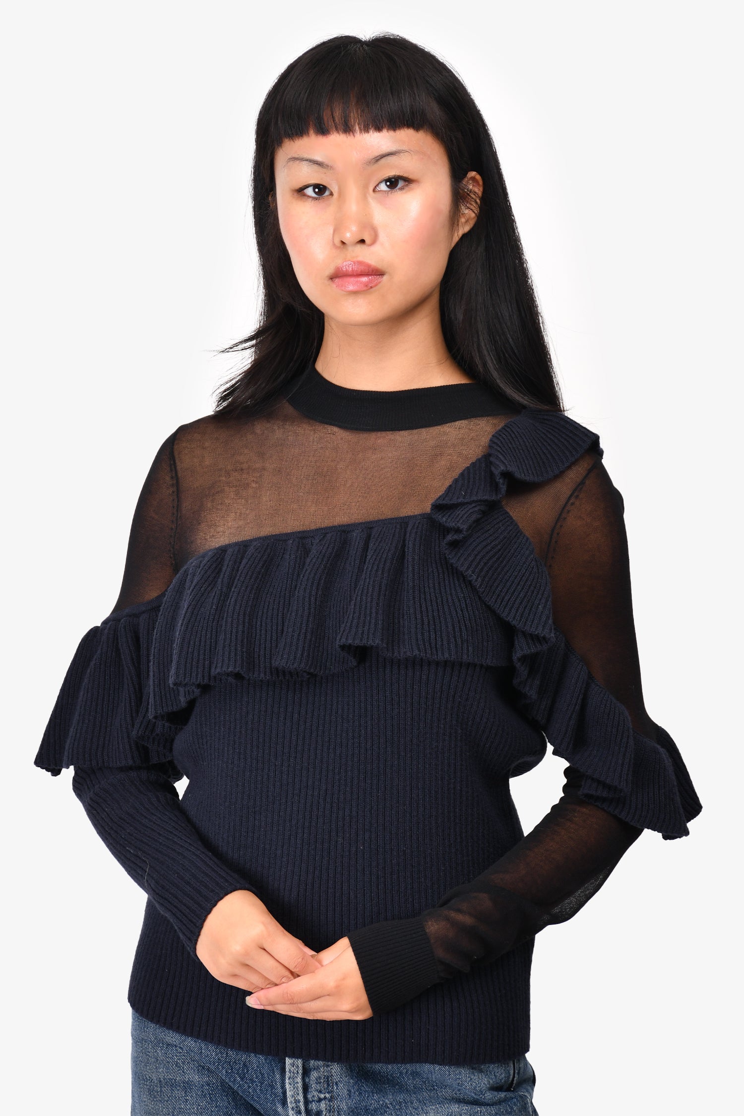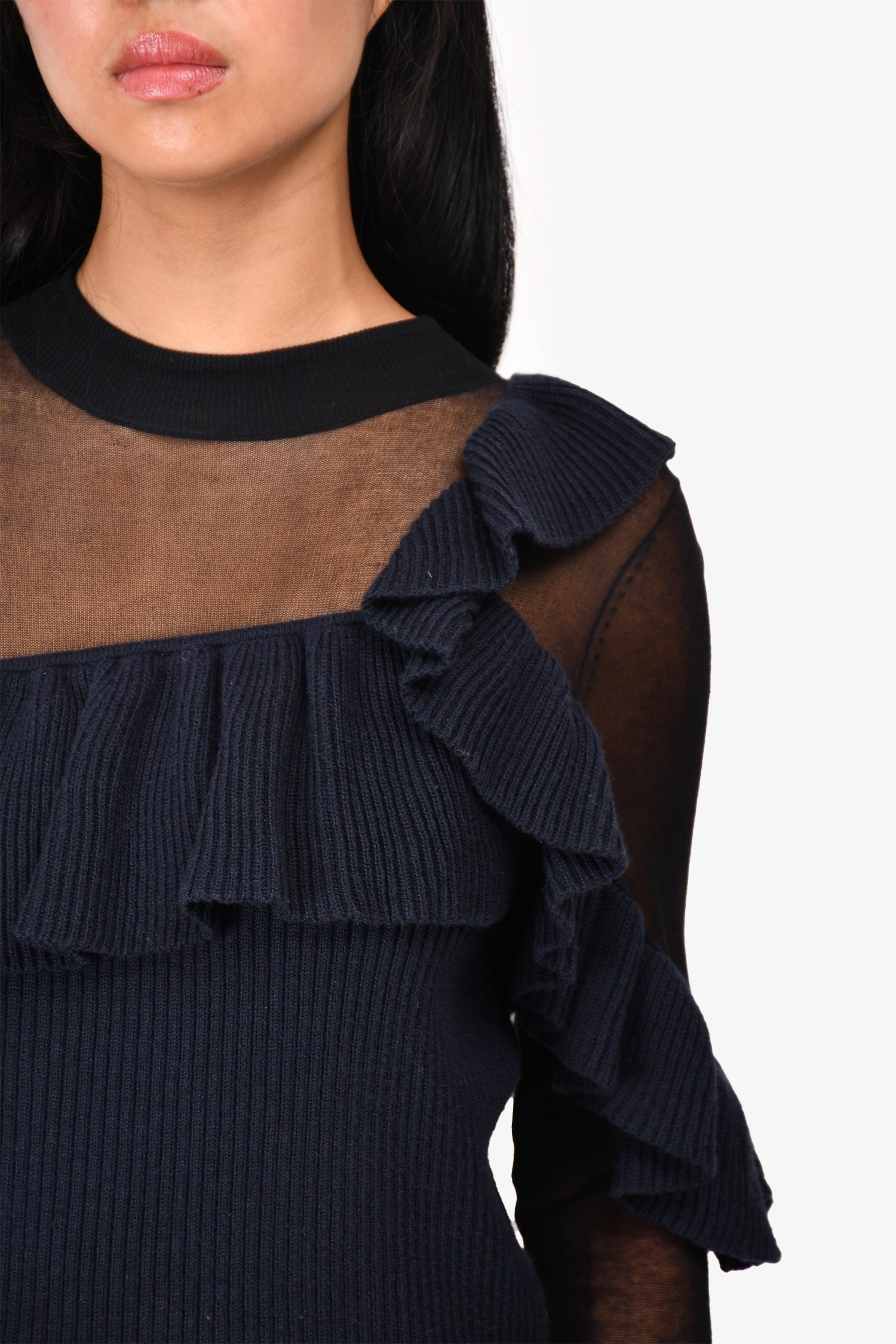 Self-Portrait Navy/Black Wool Ruffle Detailed Top Size L