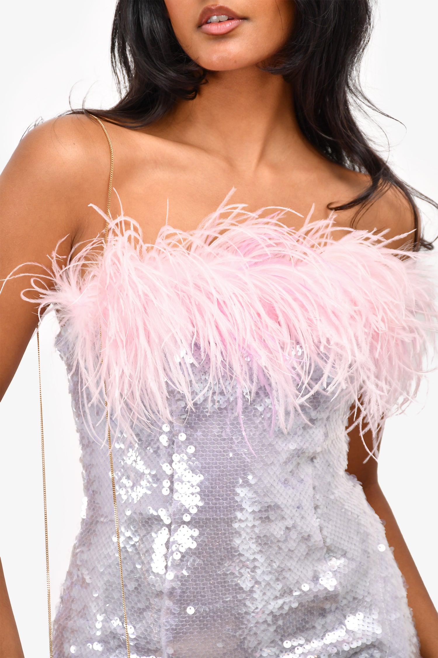Refresh availabilitySelf Portrait Purple Sequin/Feather Sleeveless Mini Dress. Rear zip with clasp closure. Built in corset top. Lined. Tonal stitching.