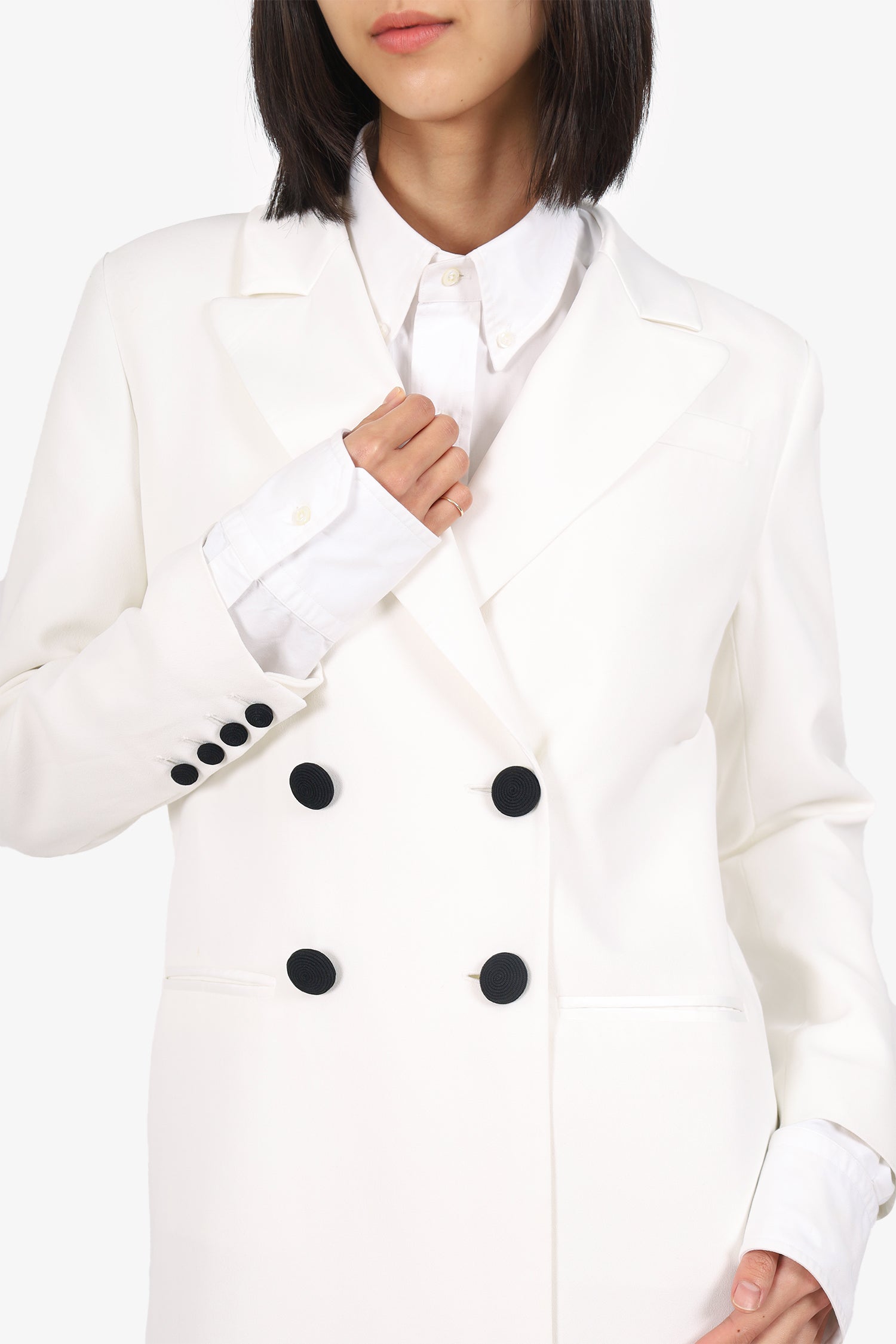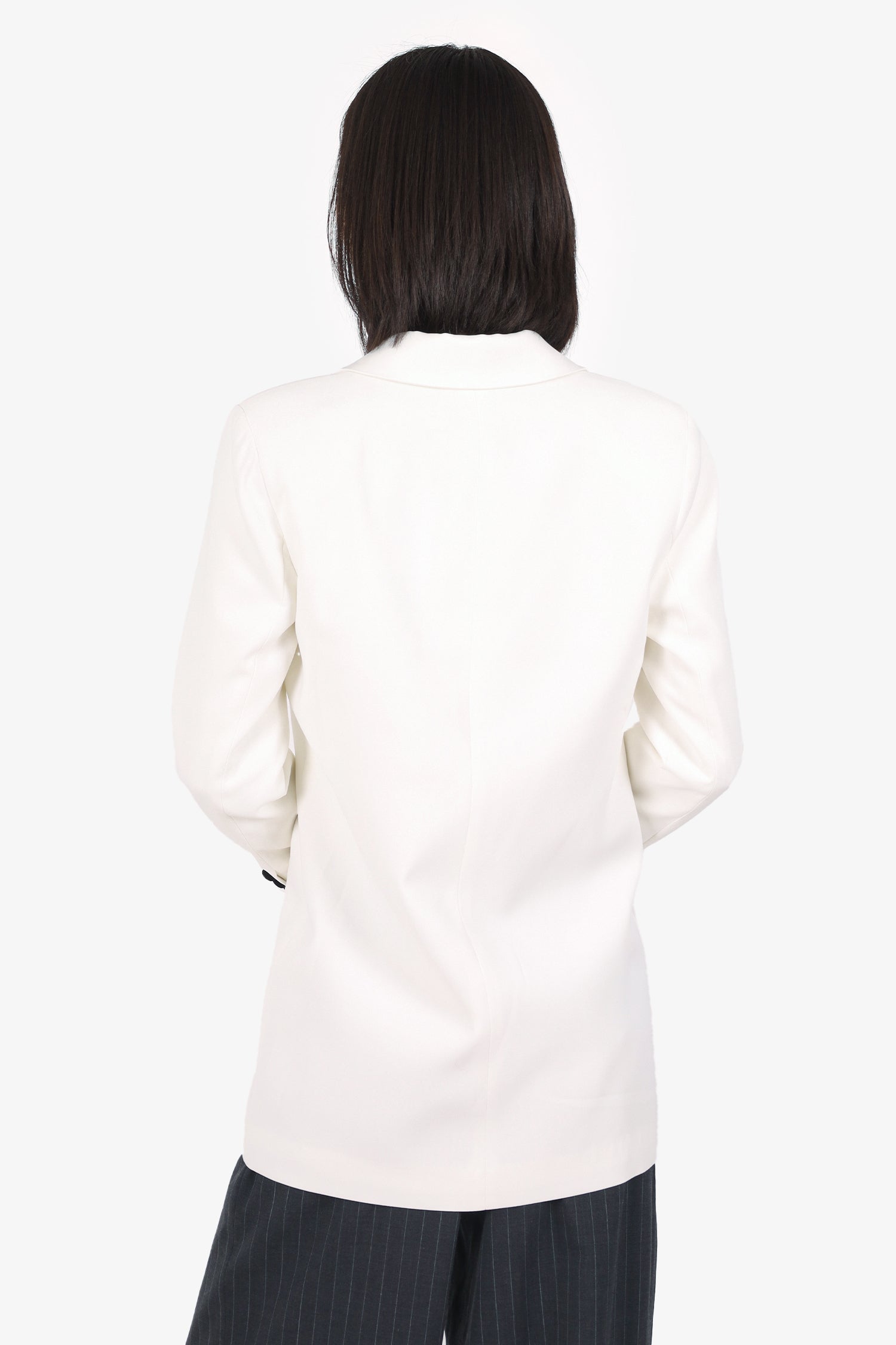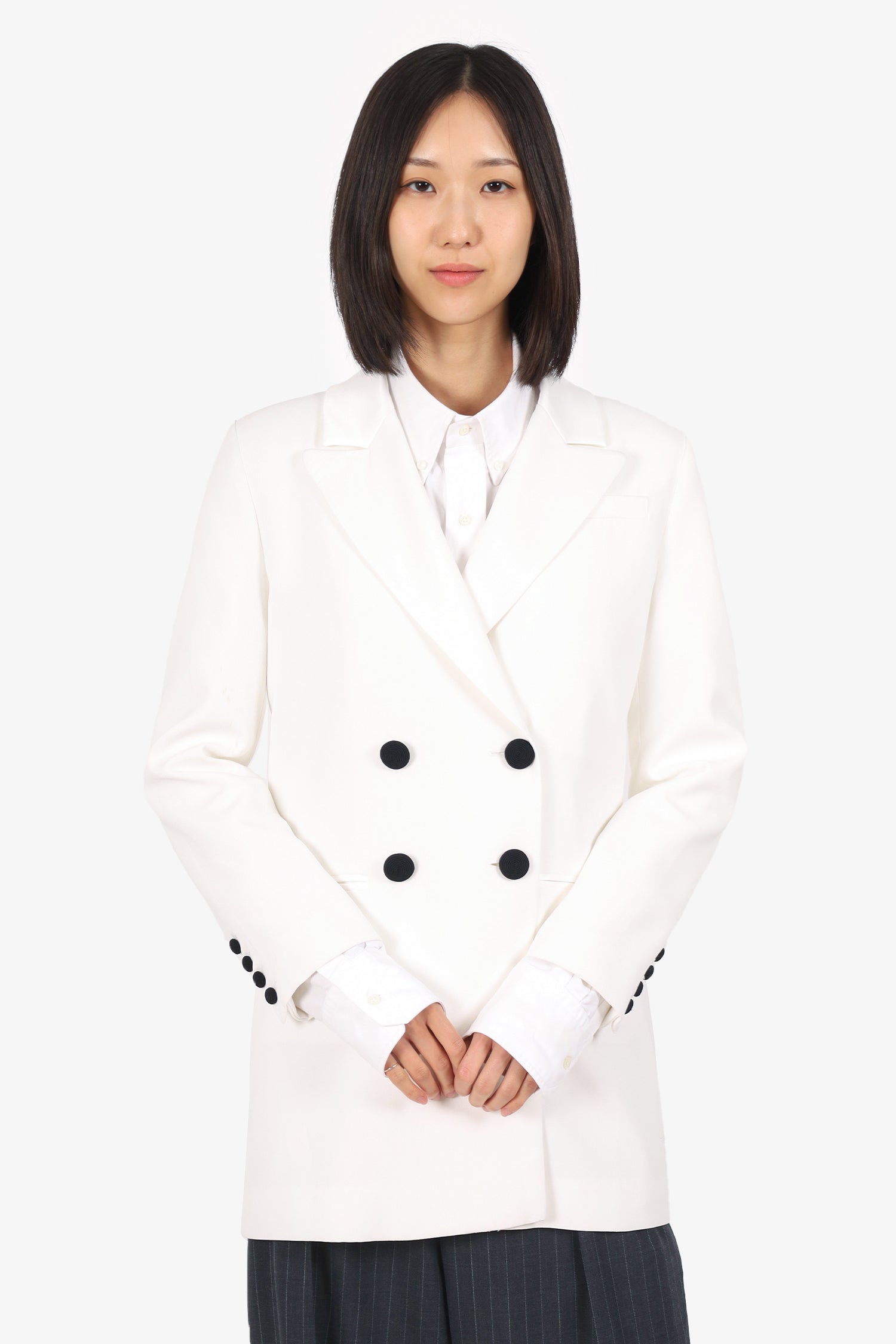 Self-Portrait White/Black Button Detail Satin Double Breasted Blazer Size 4