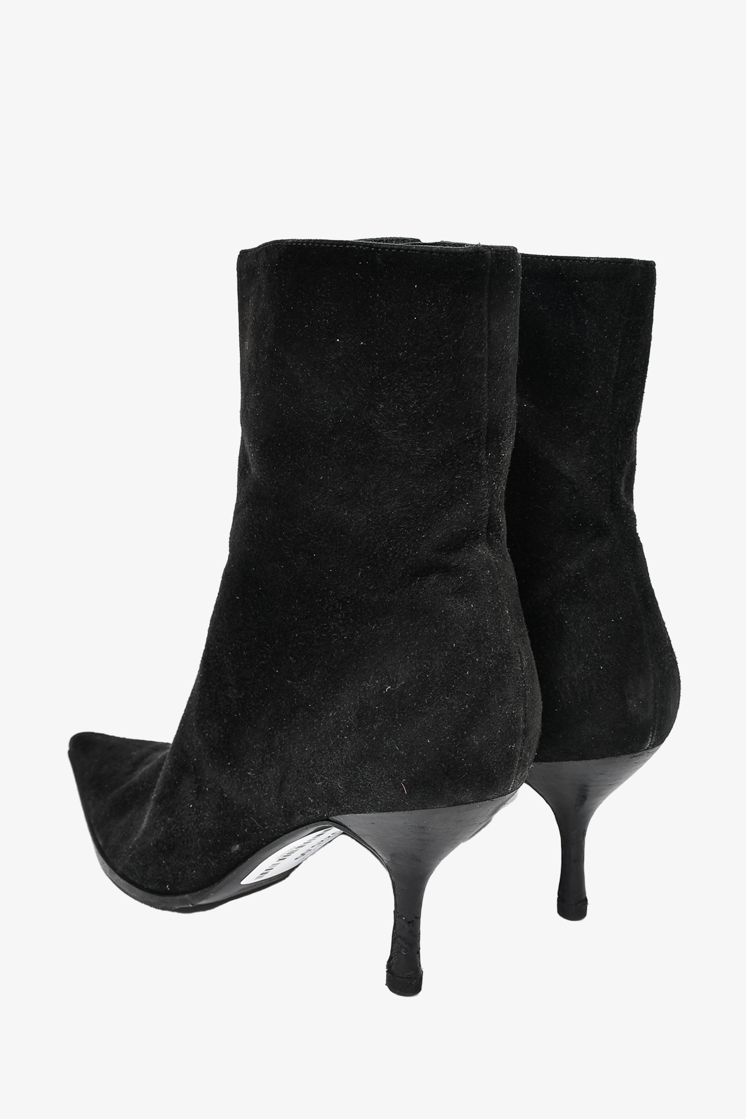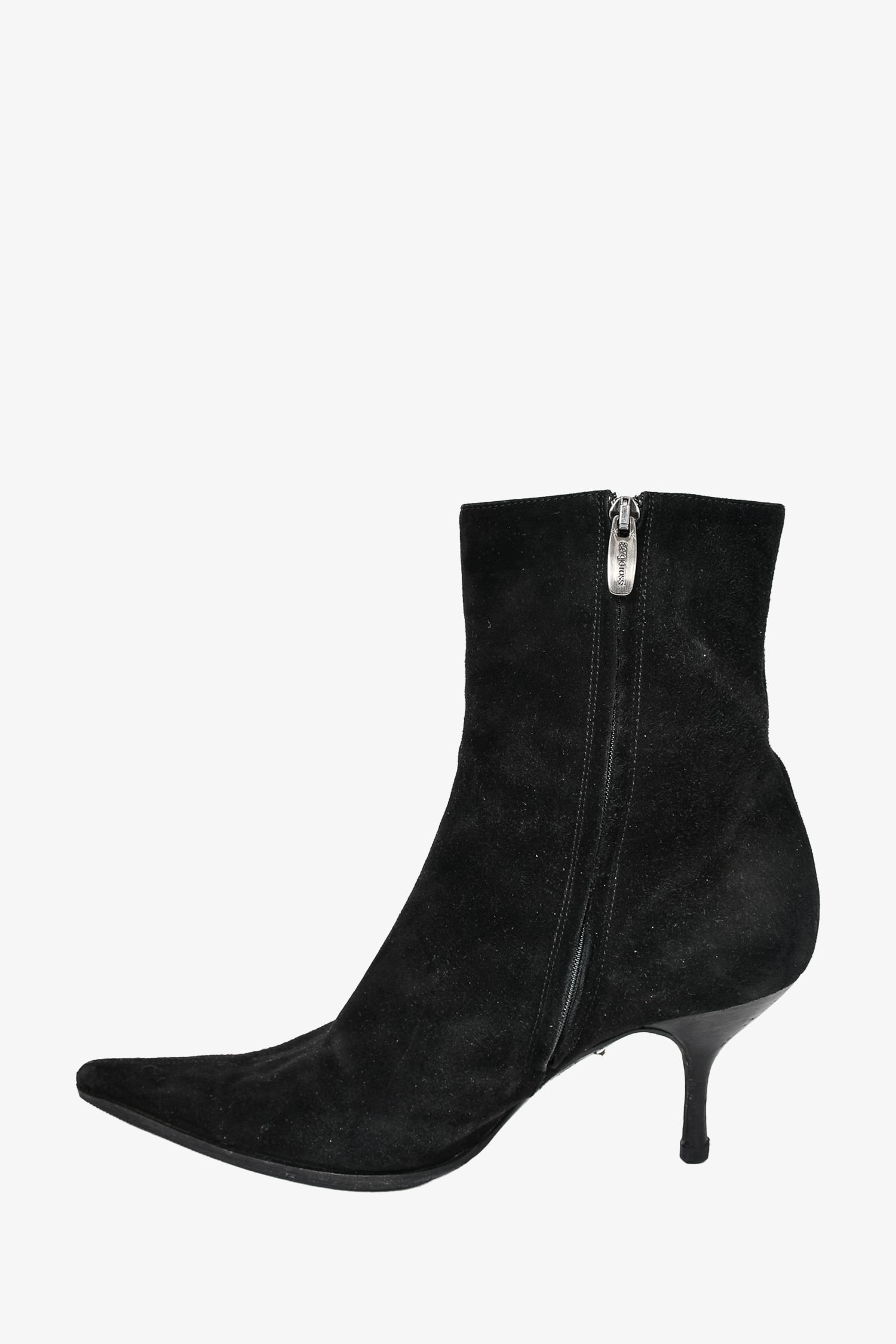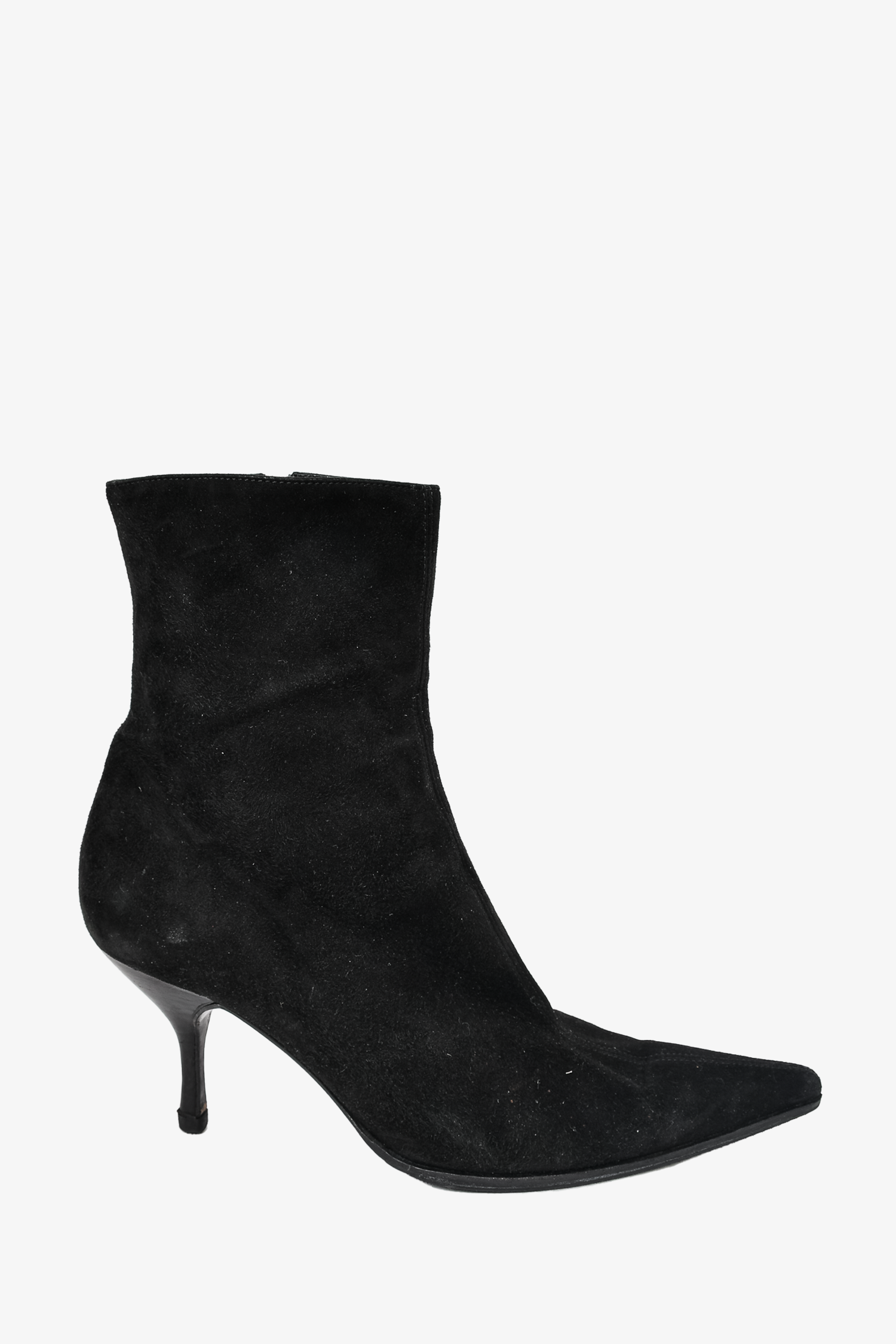 Refresh availabilitySergio Rossi Black Suede Kitten Heel Ankle Boot. Side zip closure. Pointed toe. Tonal stitching.