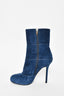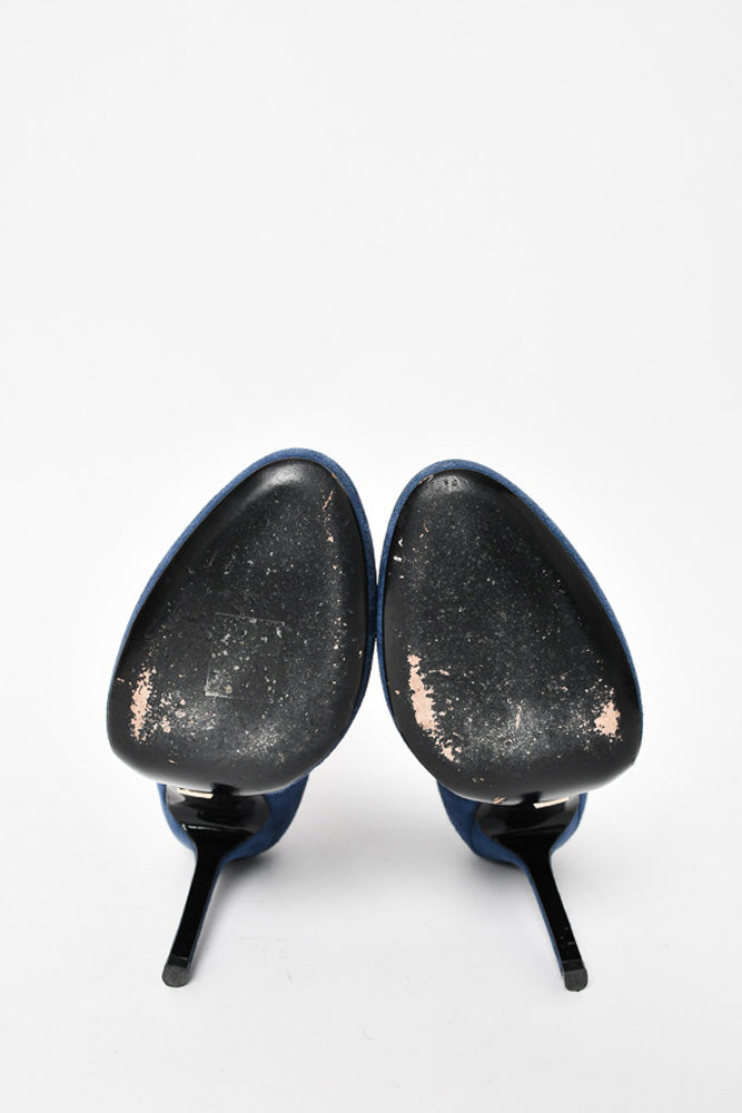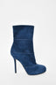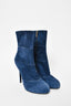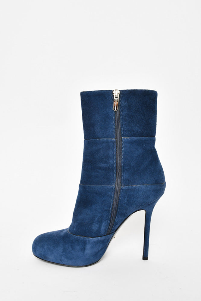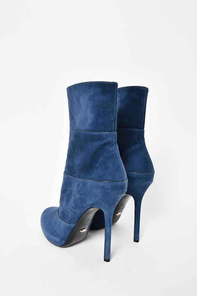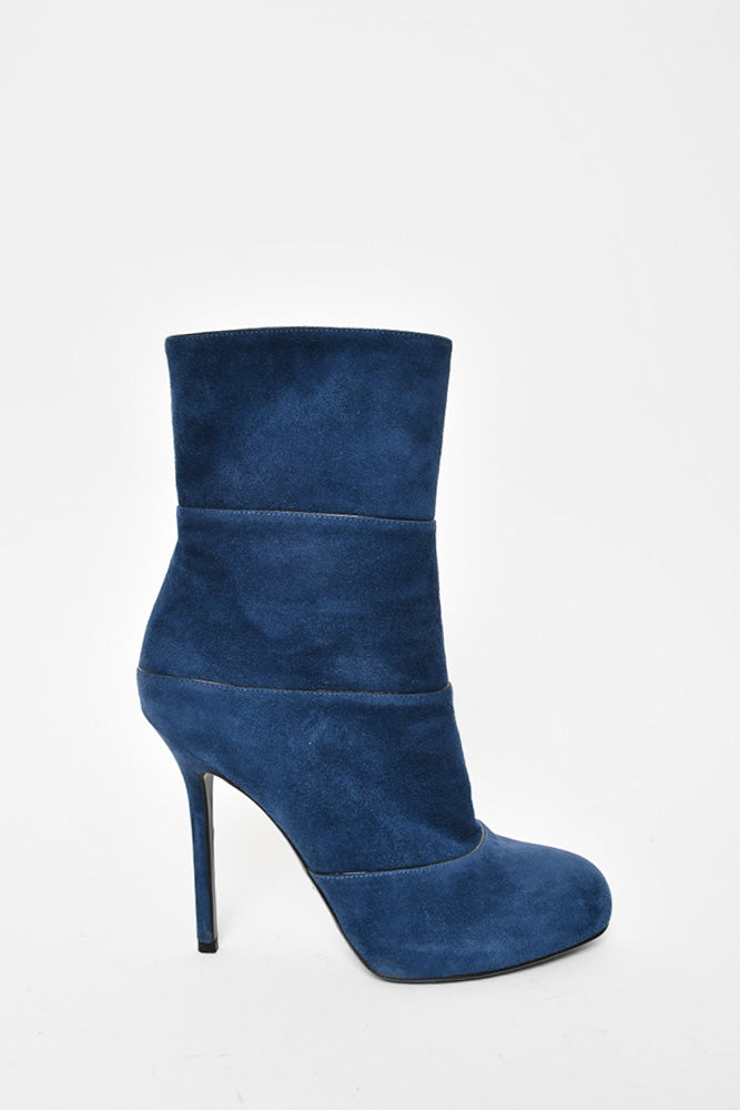 Refresh availabilitySergio Rossi Blue Suede Boots. Almond toe. Inner side zip closure. Silver-tone hardware. Skinny heel. Tonal stitching.