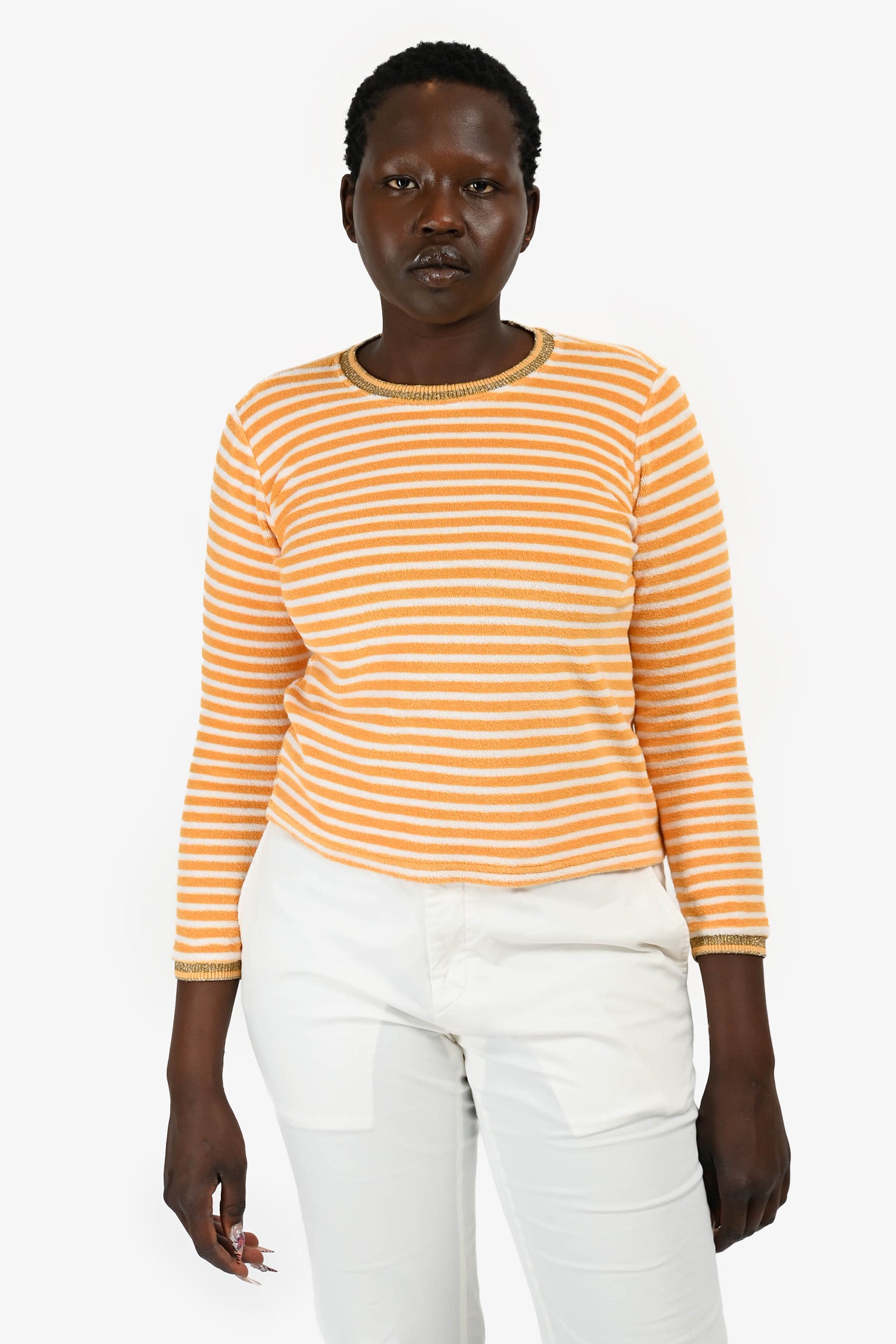 Shrimps Yellow/White Striped Terry Cloth Long Sleeve Top Size M