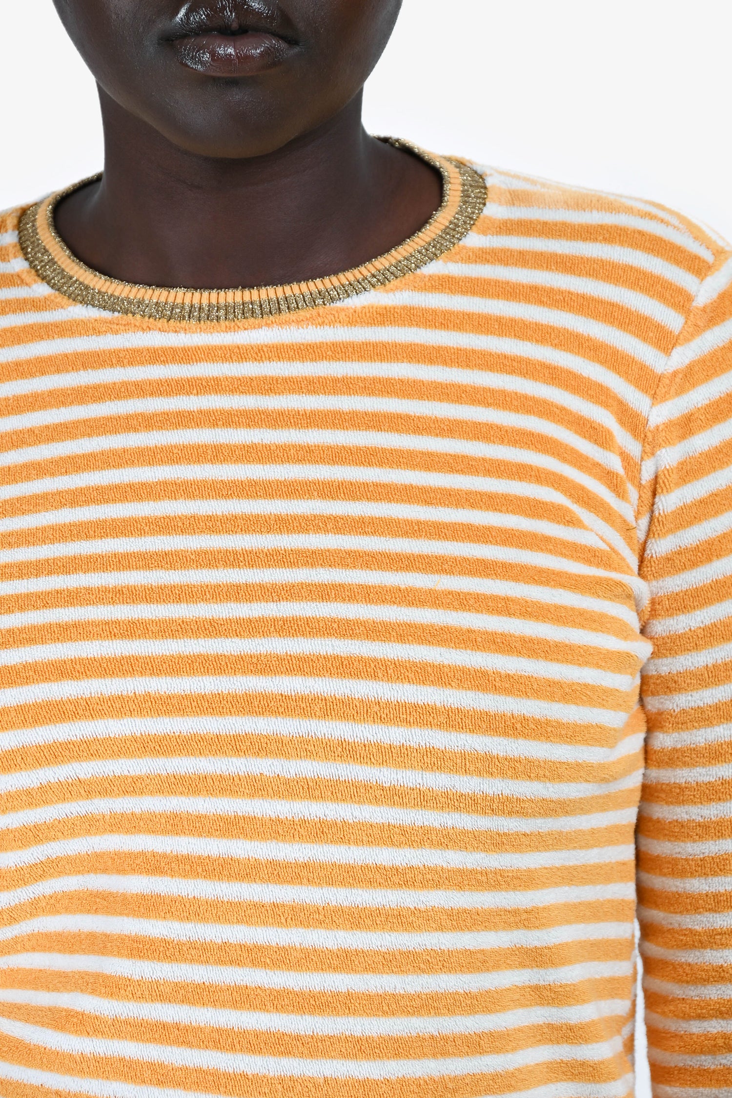 Refresh availabilityShrimps Yellow/White Striped Terry Cloth Long Sleeve Top. Crew neckline. Long sleeves. Pull-on style. Tonal stitching.