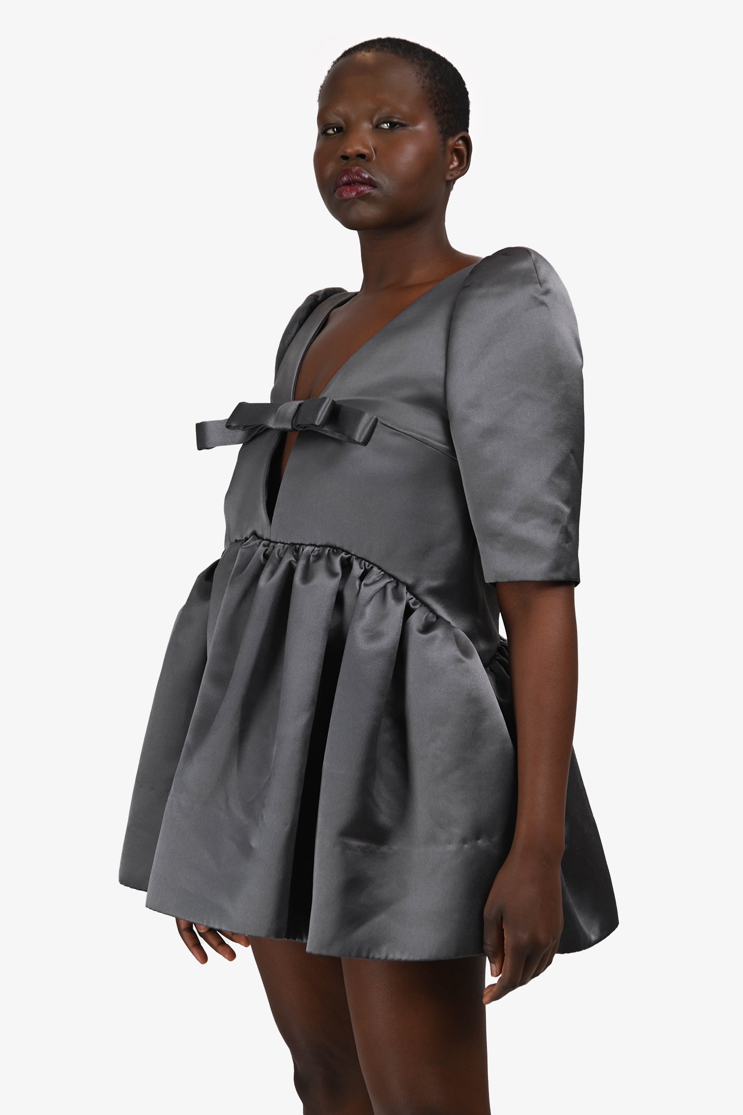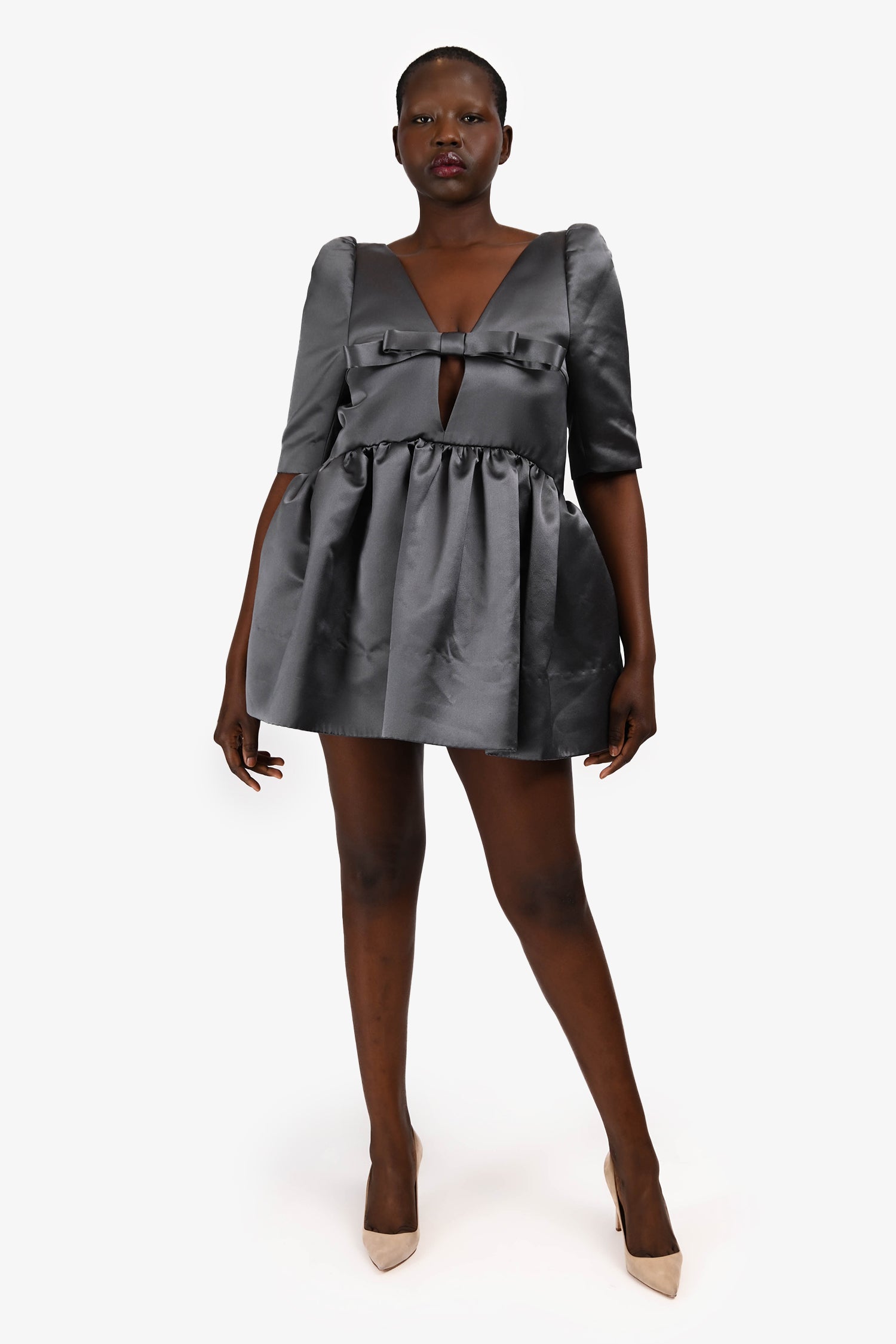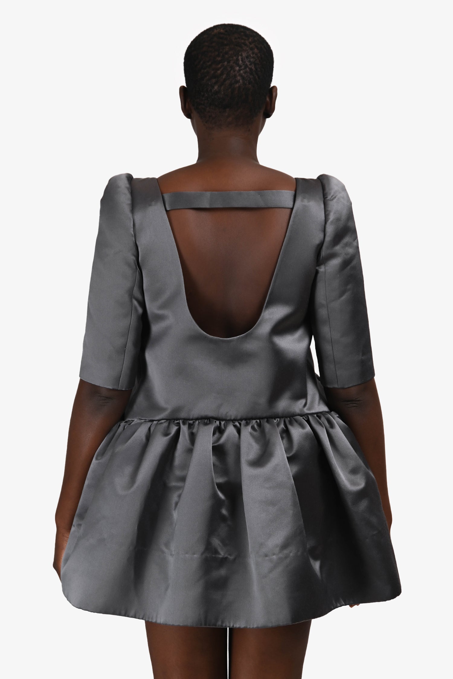 Shushu/Tong Dark Grey Satin Puff Sleeve Mini Dress Size 12