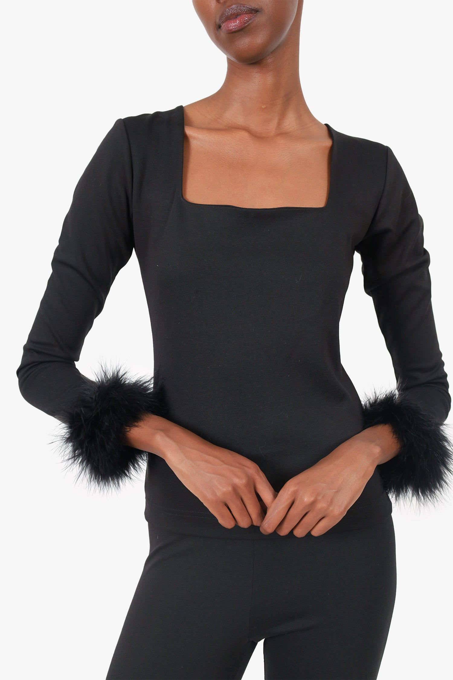 Refresh availabilitySleeper Black Removable Feather Trim Long Sleeve Top + Leggings.