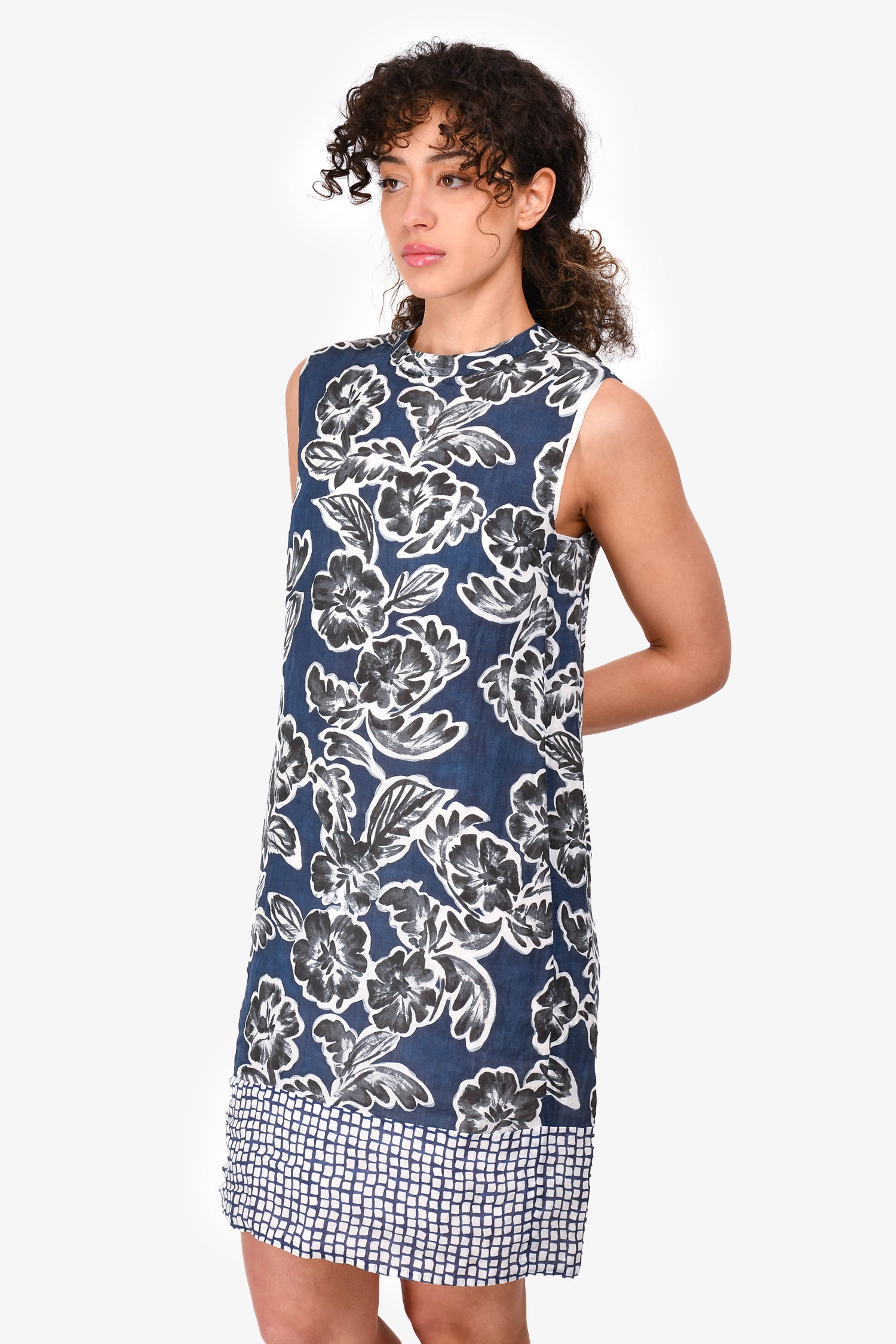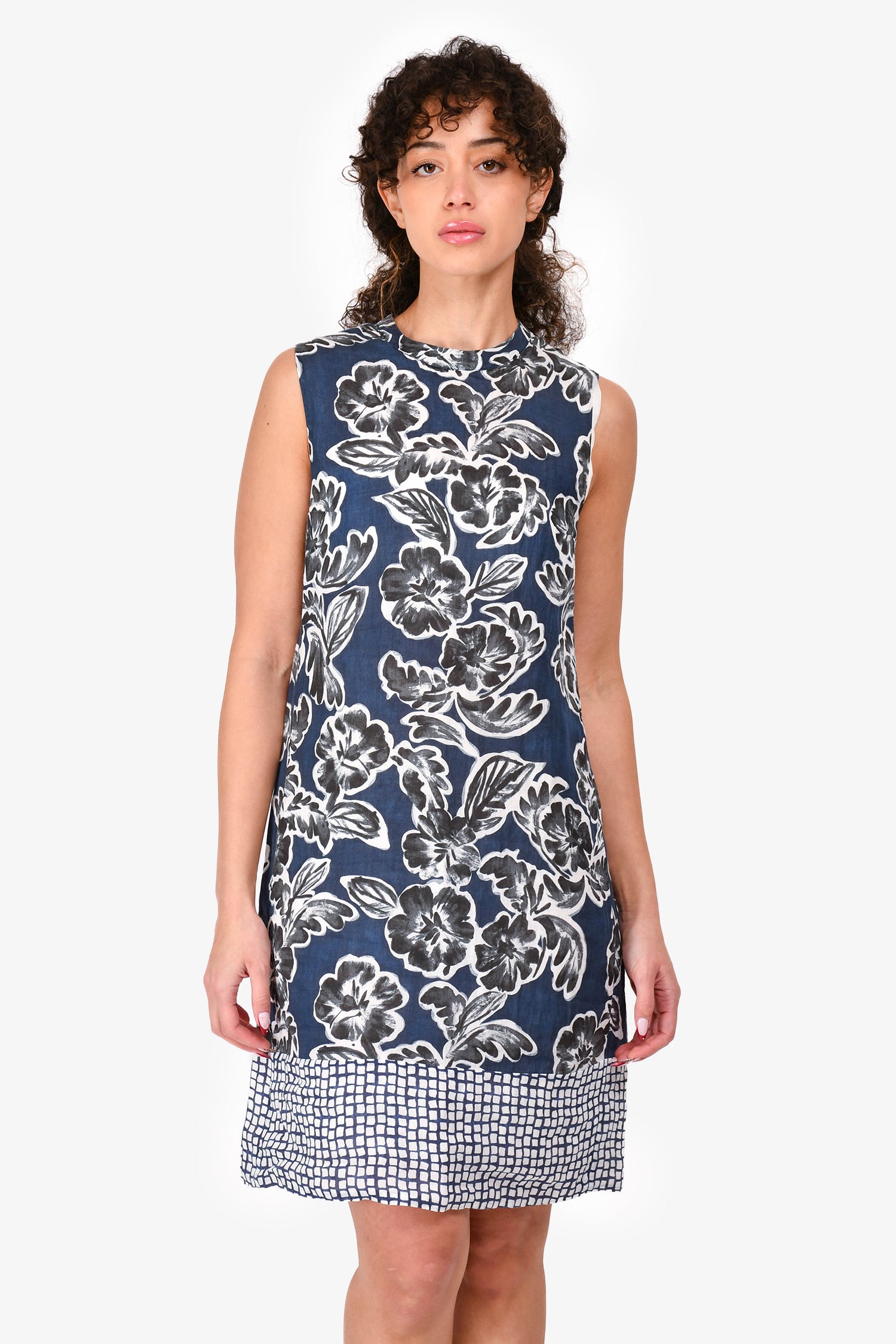 Refresh availabilityS'Max Mara Blue/White Floral Sleeveless Dress. Back zipper closure. Round neckline. A-line. Tonal stitching.