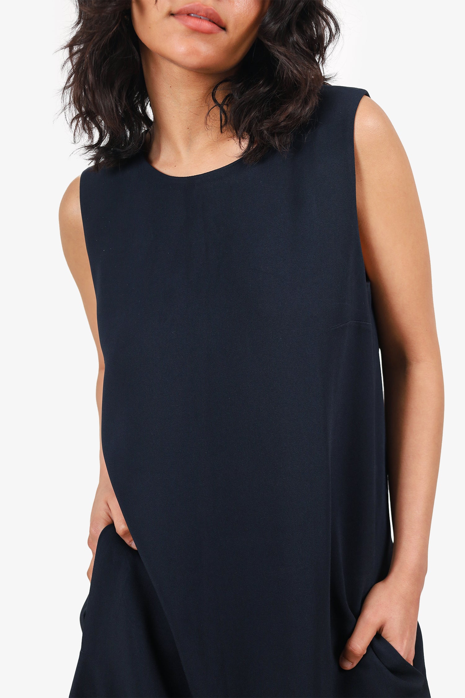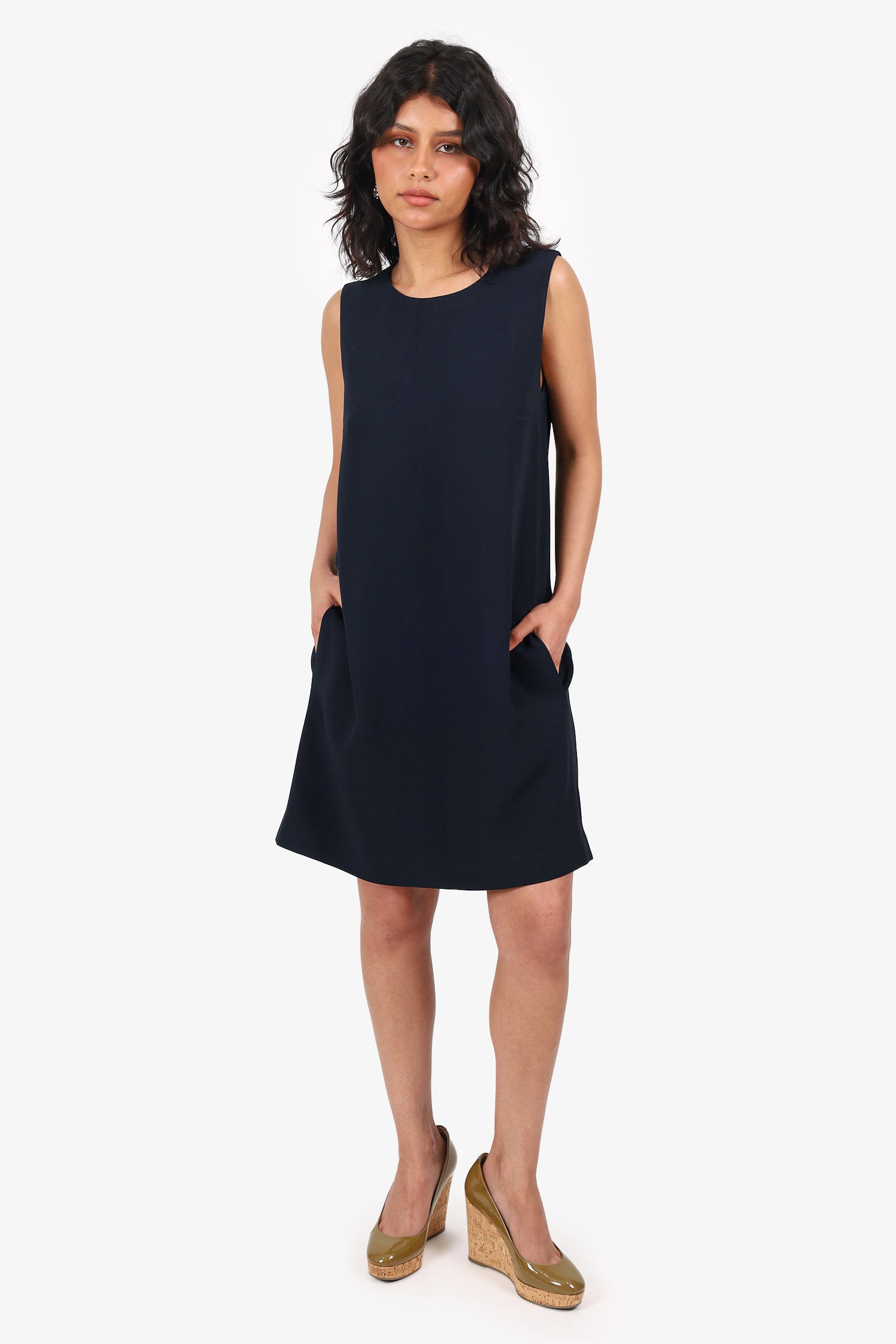 Refresh availability'SMaxmara Black Shift Dress. Slip-on. Round neckline. Rear zip closure. 2 front exterior side slip pockets. Lined interior. Tonal stitching.