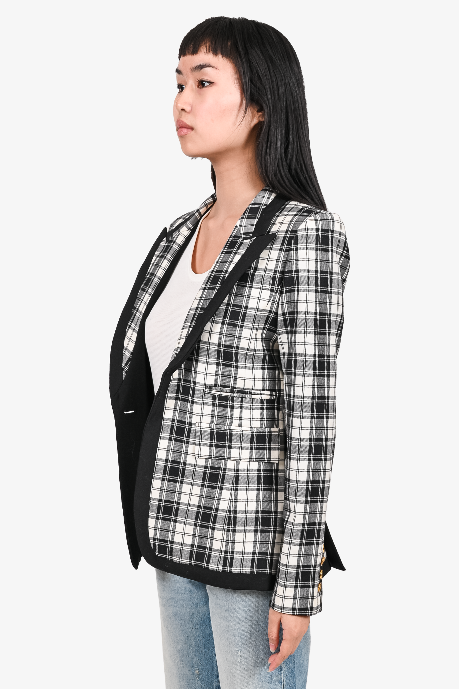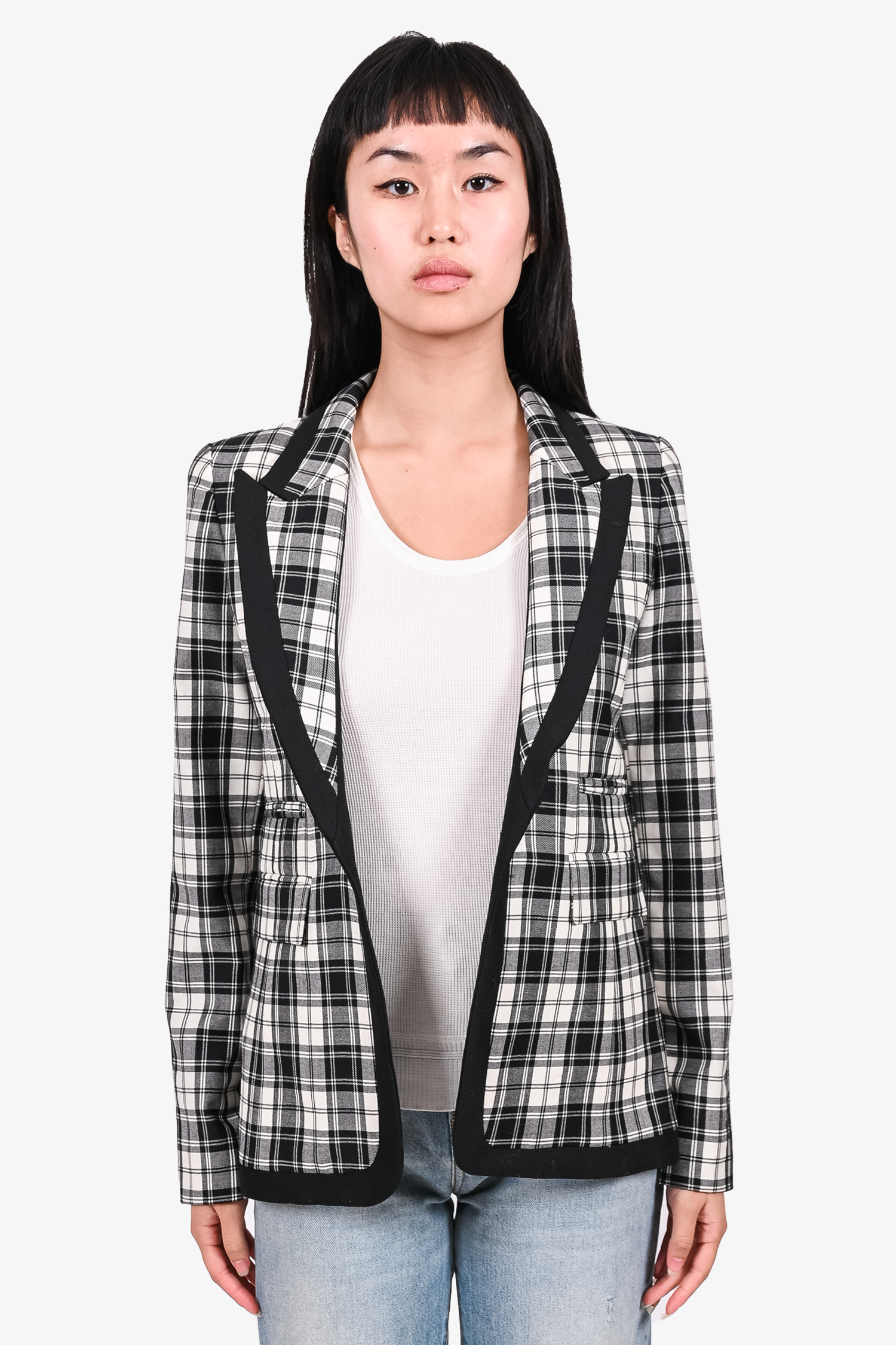 Smythe Black/White Check Single Breasted Blazer Size 4