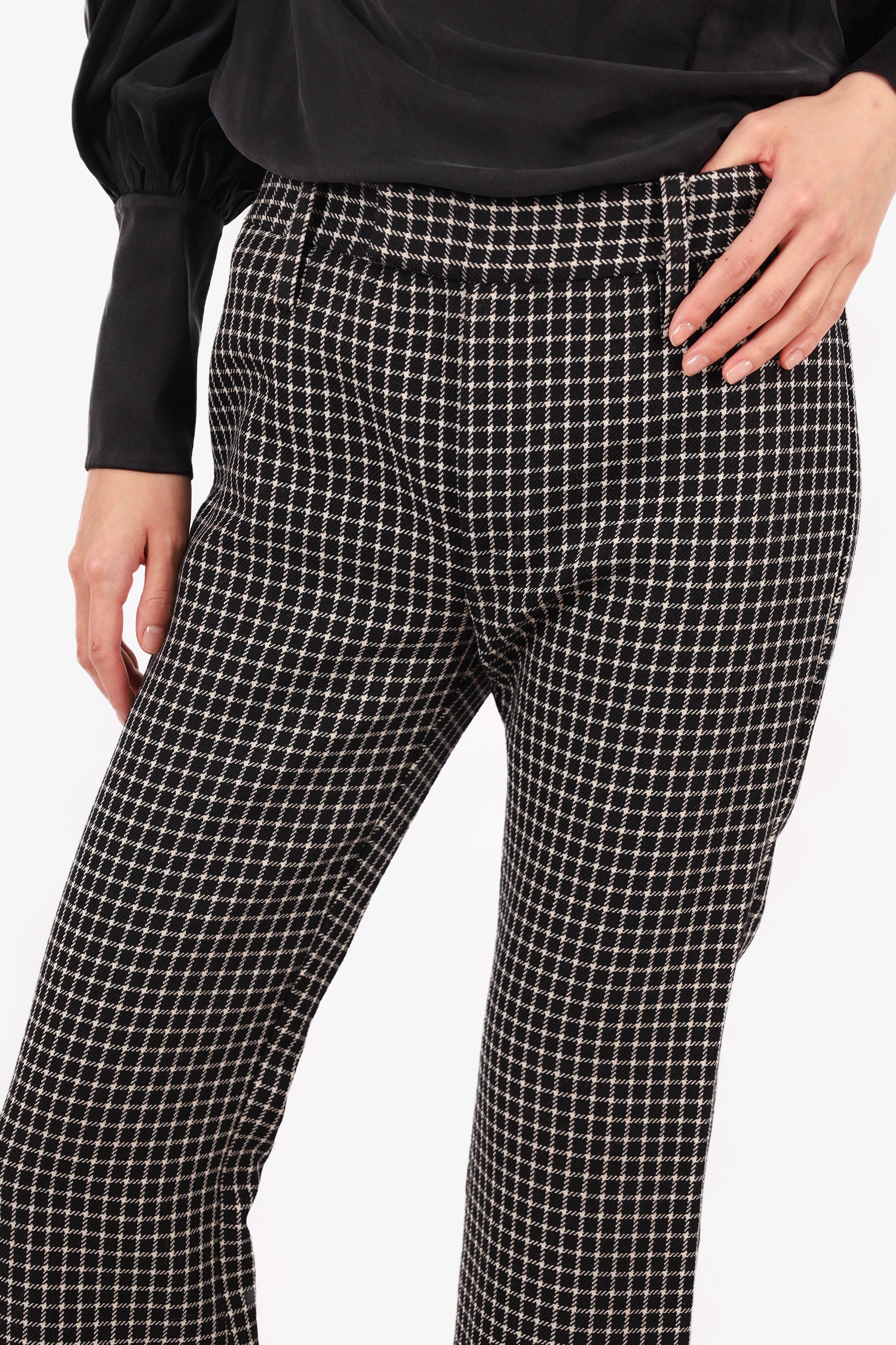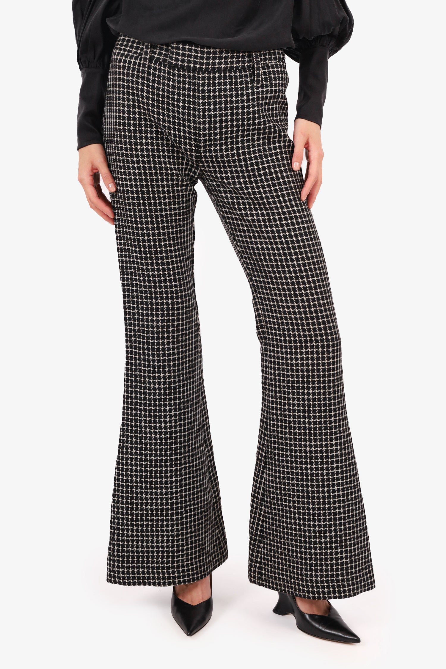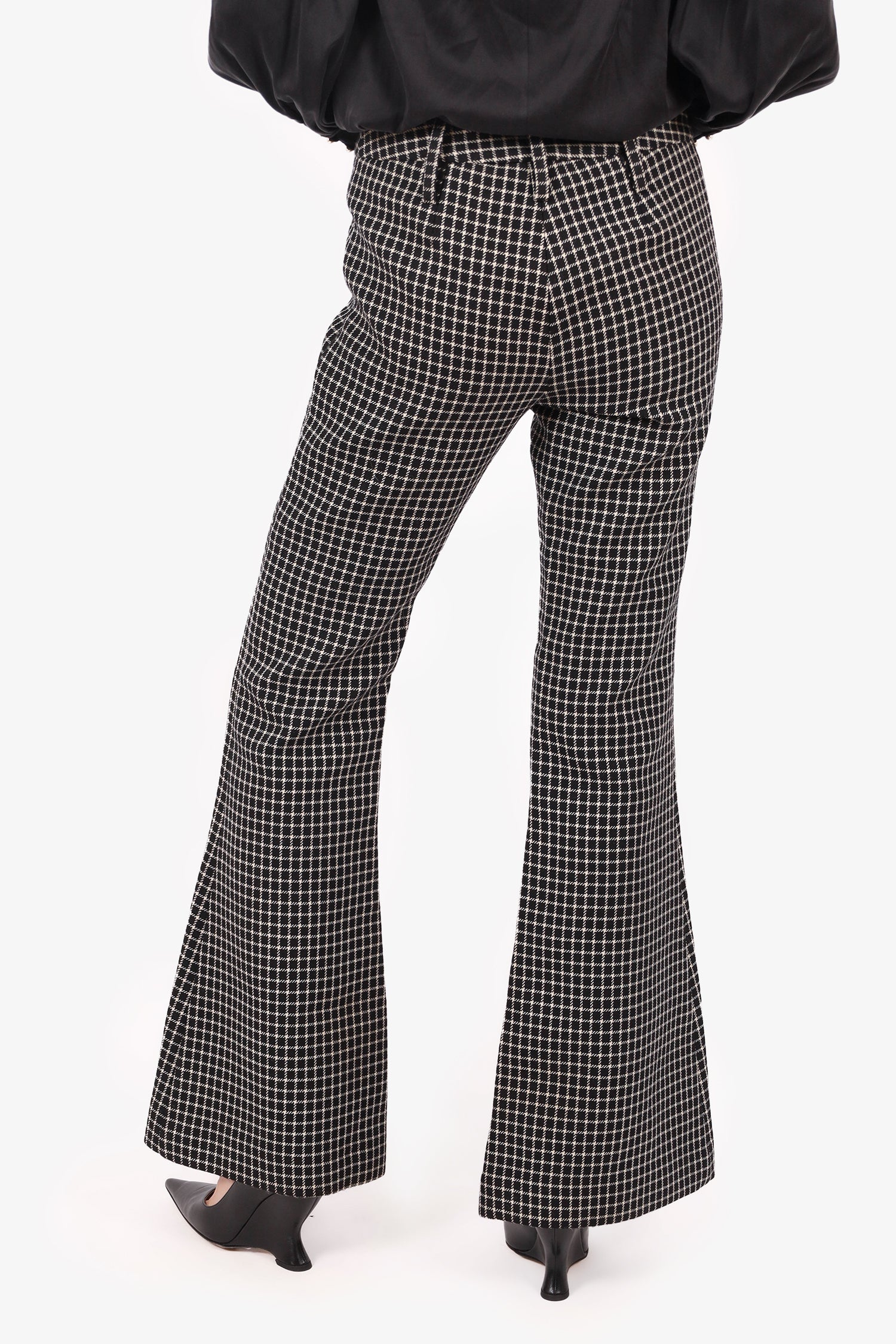 Refresh availabilitySmythe Black/White Wool Flare Trousers. Front button closure. Waist belt loops. Tonal stitching.