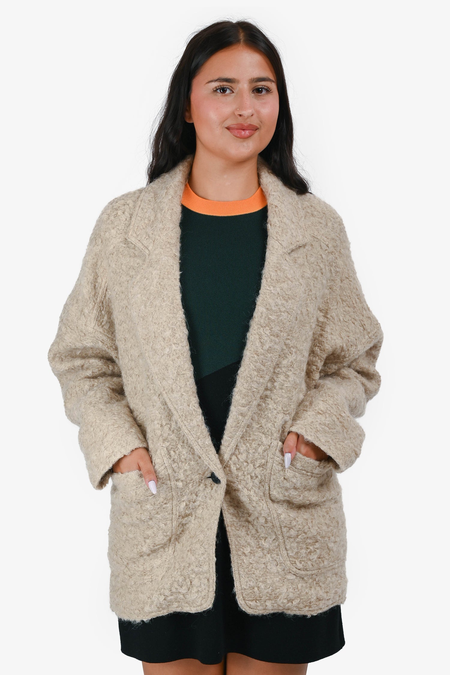 Smythe Cream Wool Blend Fuzzy Oversized Jacket Size S