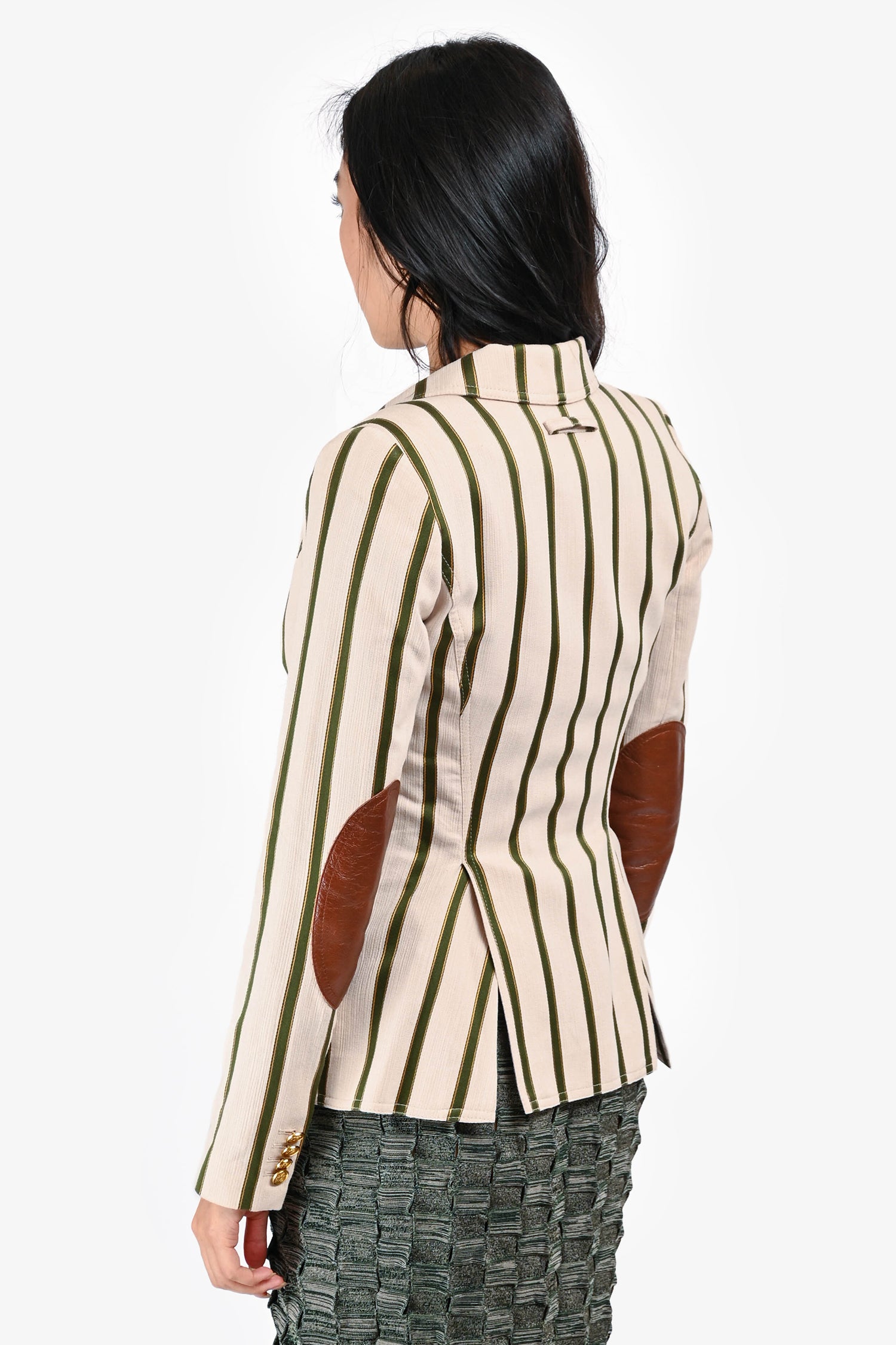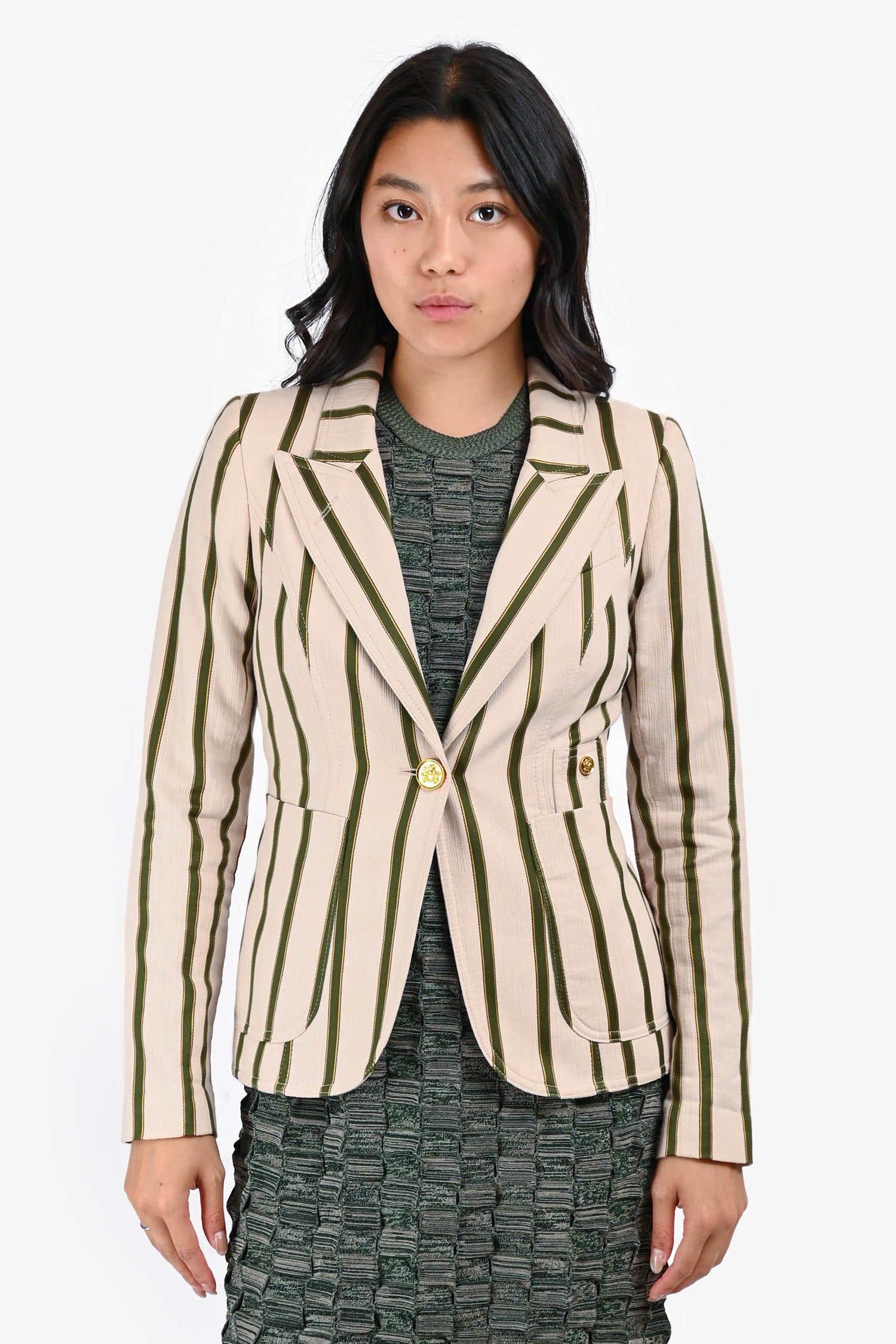 Smythe Green/Beige Cotton Striped Single Breasted Blazer Size 4